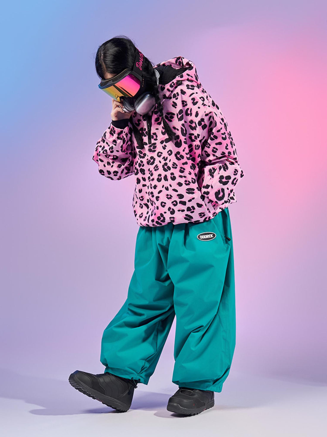 Doorek Pink Leopard Baggy Ski Suits for Men Women
