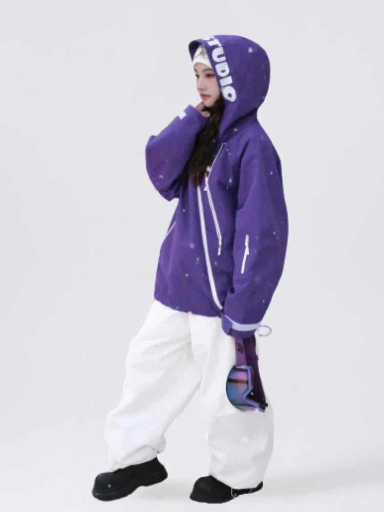 Hellystudio Diagonal Zipper Chic Shell Ski Jacket for Unisex
