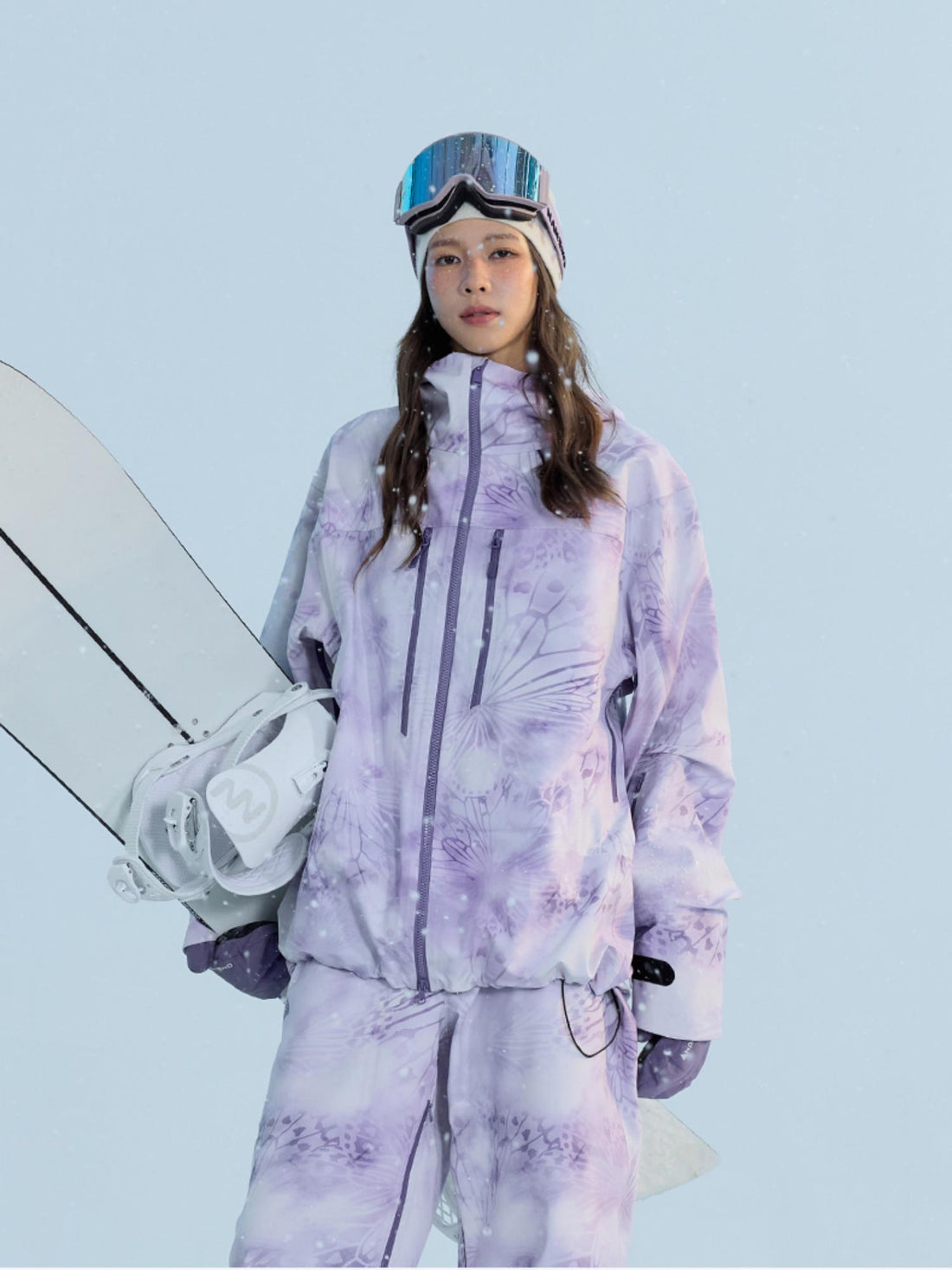NANEND Purple Butterfly Print Shell Snow Suits for Women