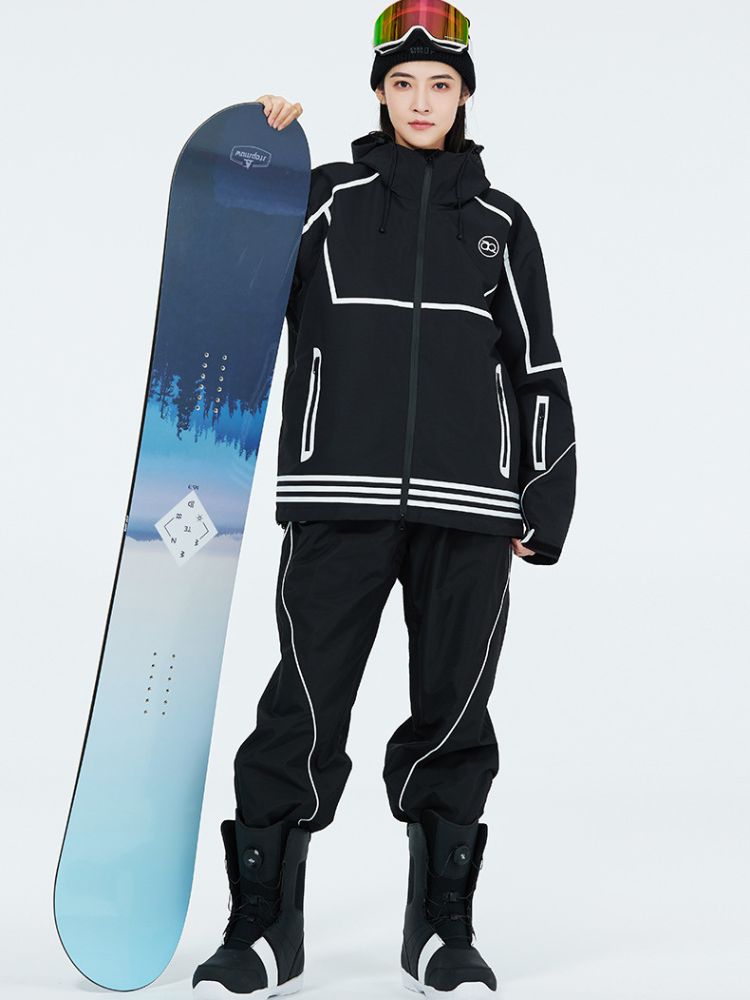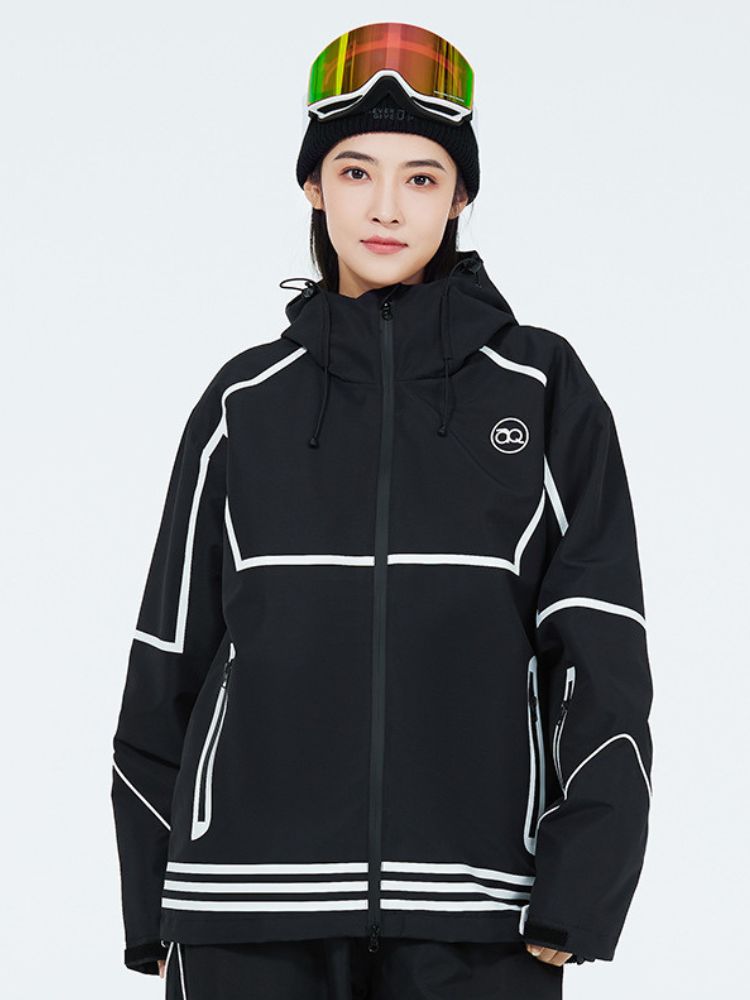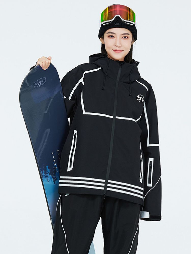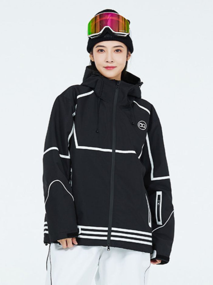 XwXwSeui Men Women Lines Hooded Snow Jacket