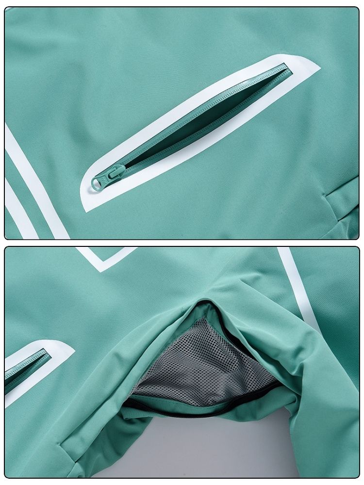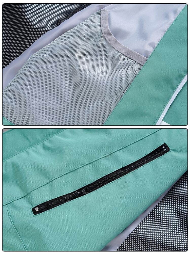 - 2 Front Pockets, Sleeve Pocket, Interior Mesh Goggle Pocket, Interior Zipper Pocket
