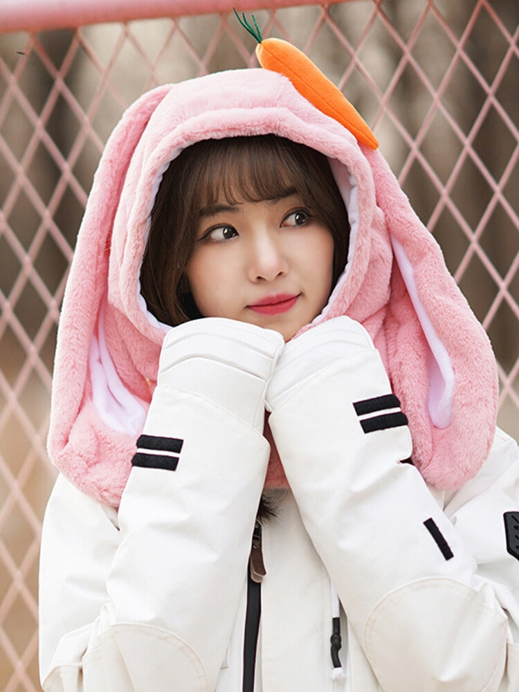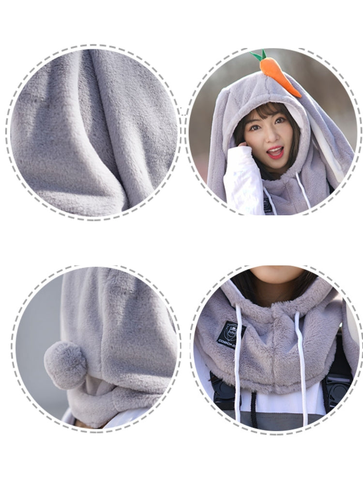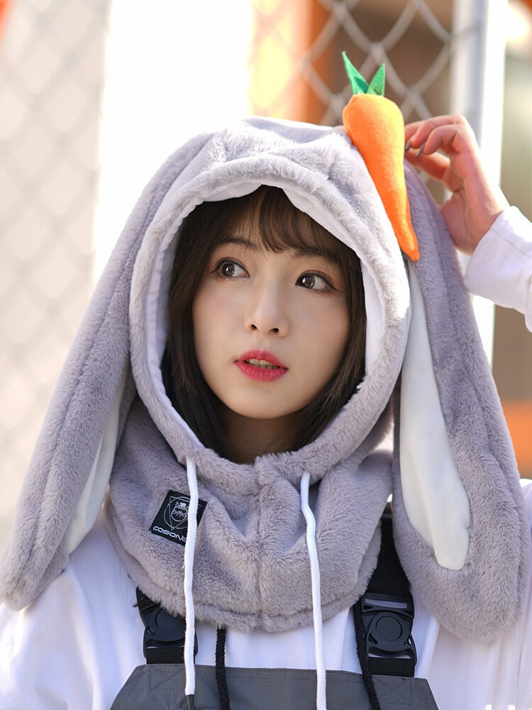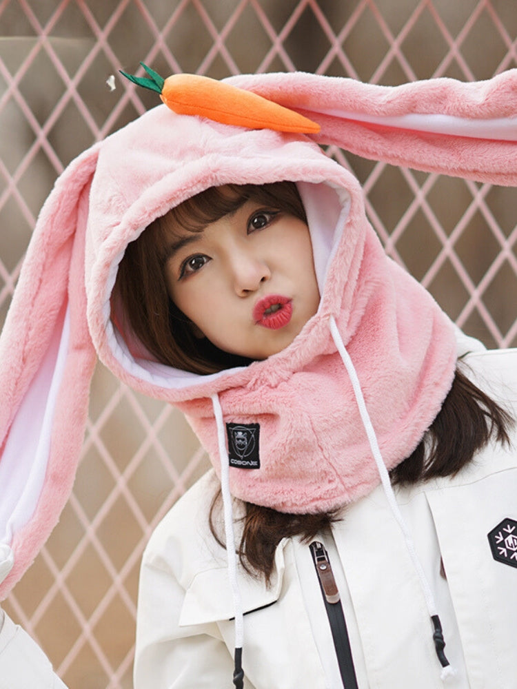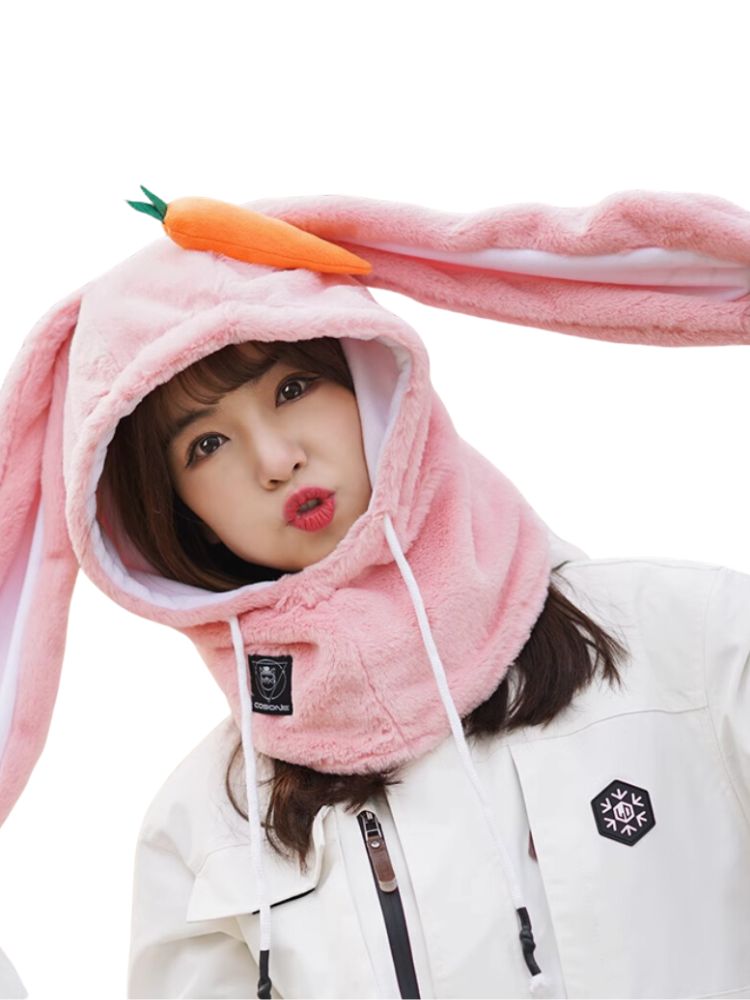 XwXwSeui Men Women Catoon Rabbit Snow Helmet Hood