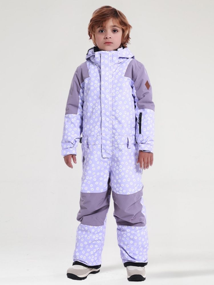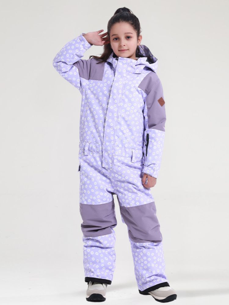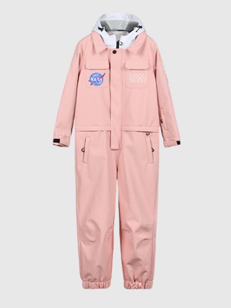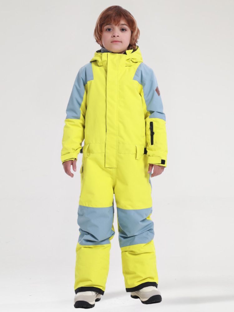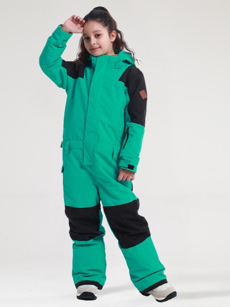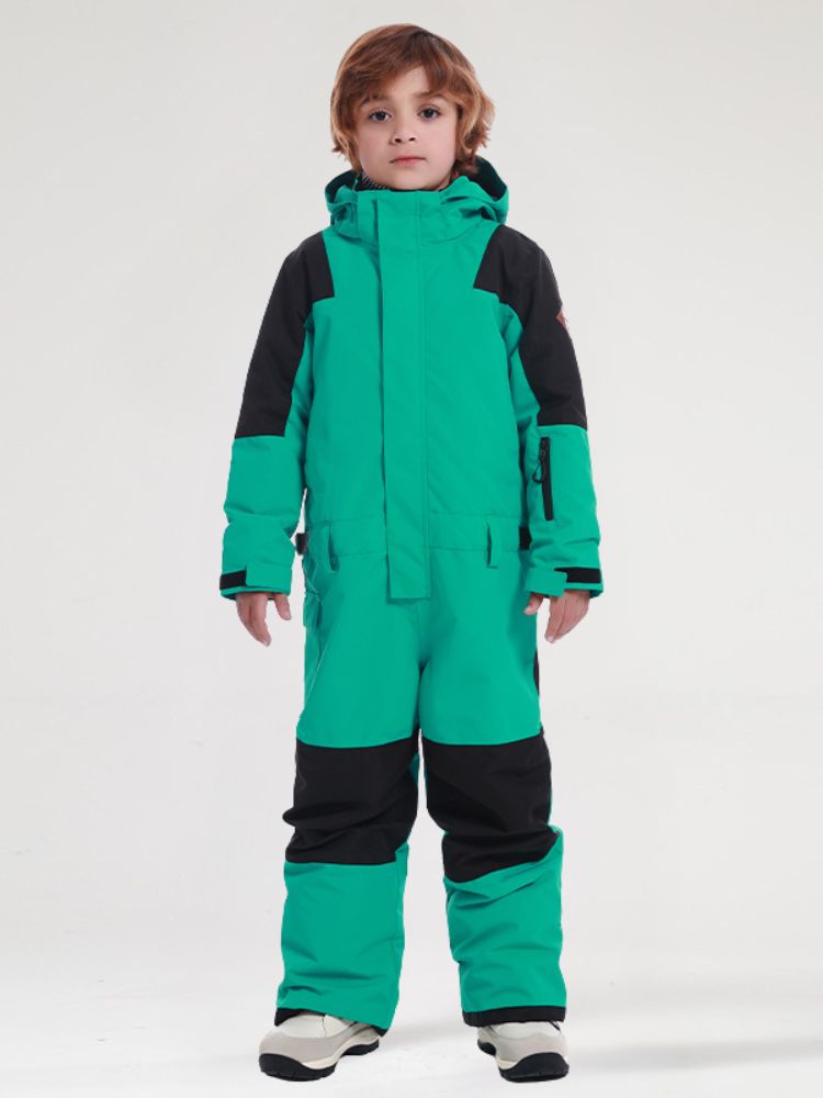 XwXwSeui Kids Colorblock Insulated Printing Waterproof Hooded Cargo Snow Jumpsuit
