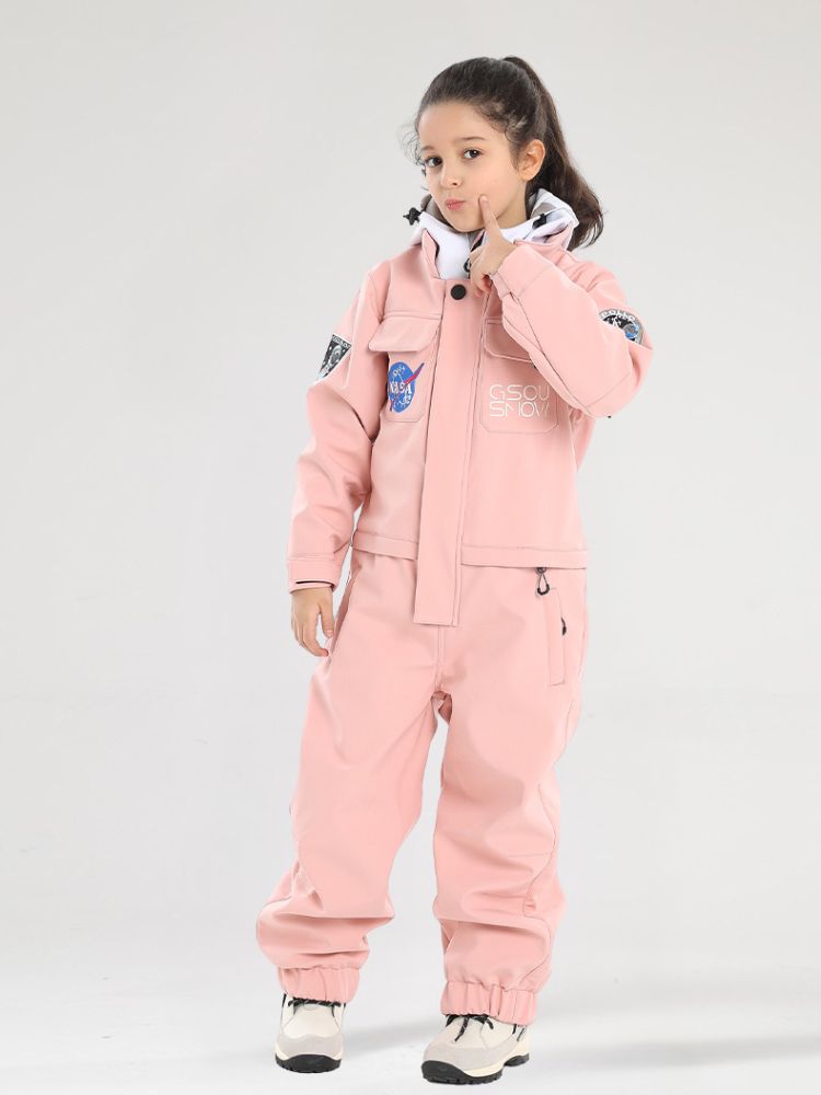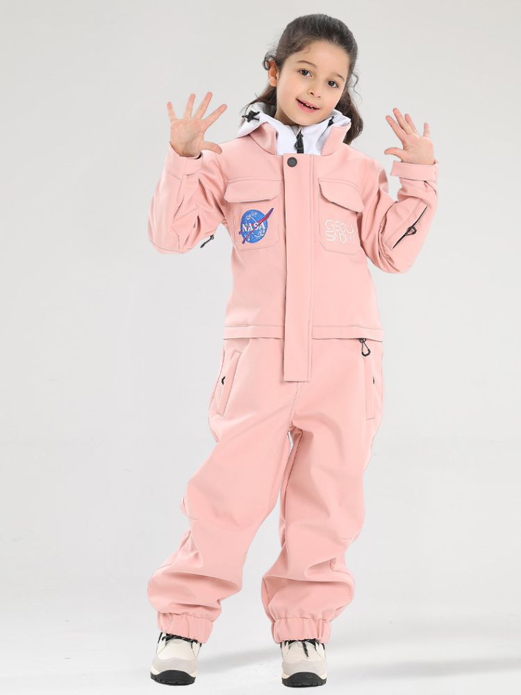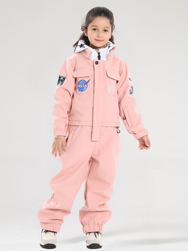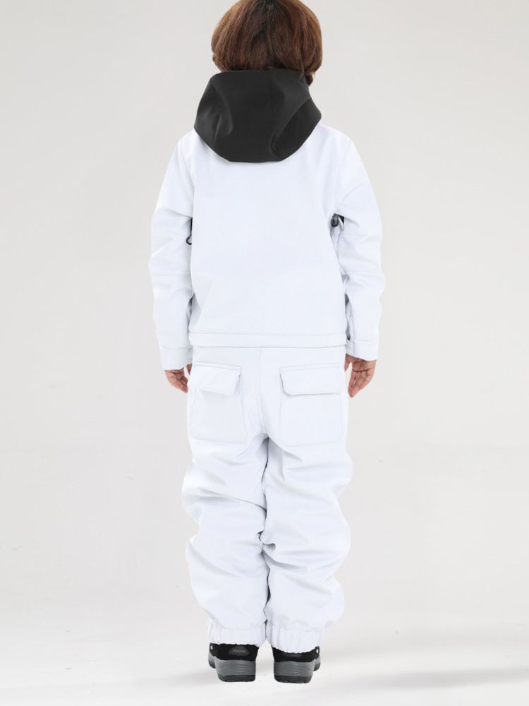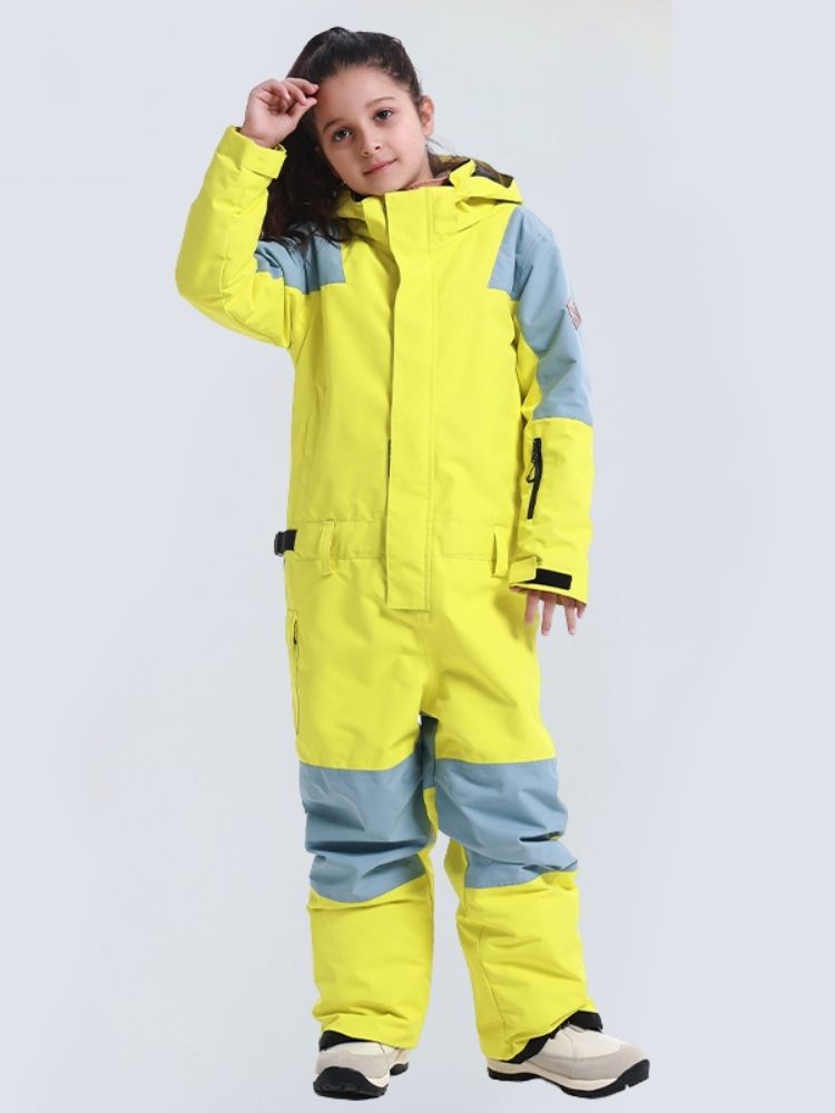 XwXwSeui Kids Colorblock Insulated Printing Waterproof Hooded Cargo Snow Jumpsuit