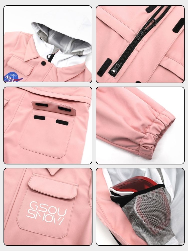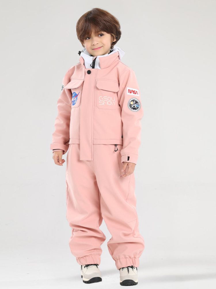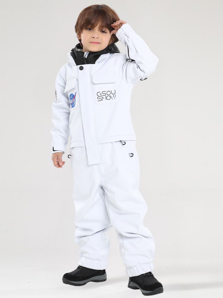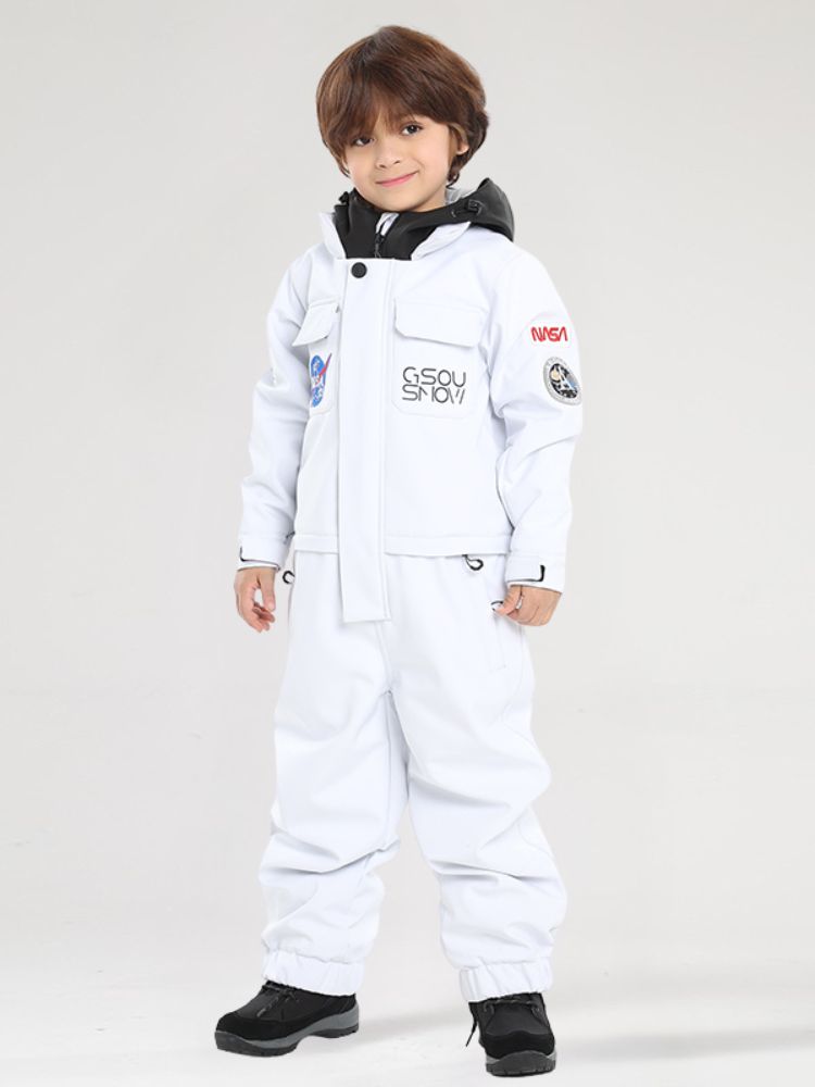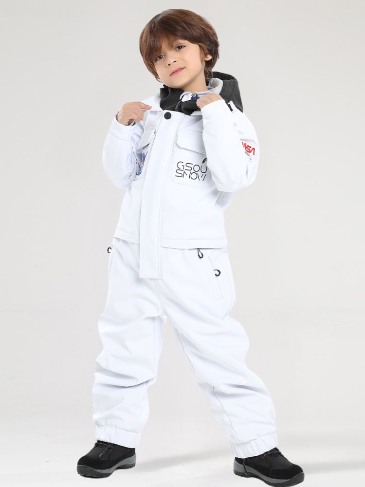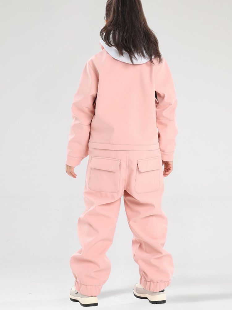 XwXwSeui Kids Colorblock Insulated Printing Waterproof Hooded Cargo Snow Jumpsuit