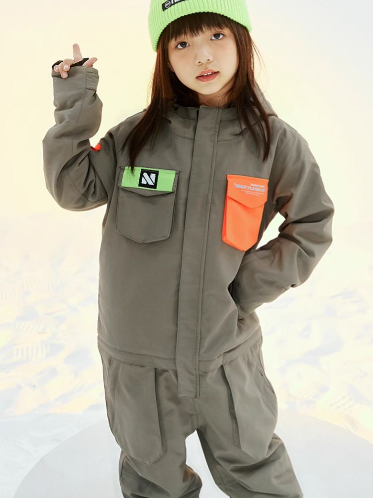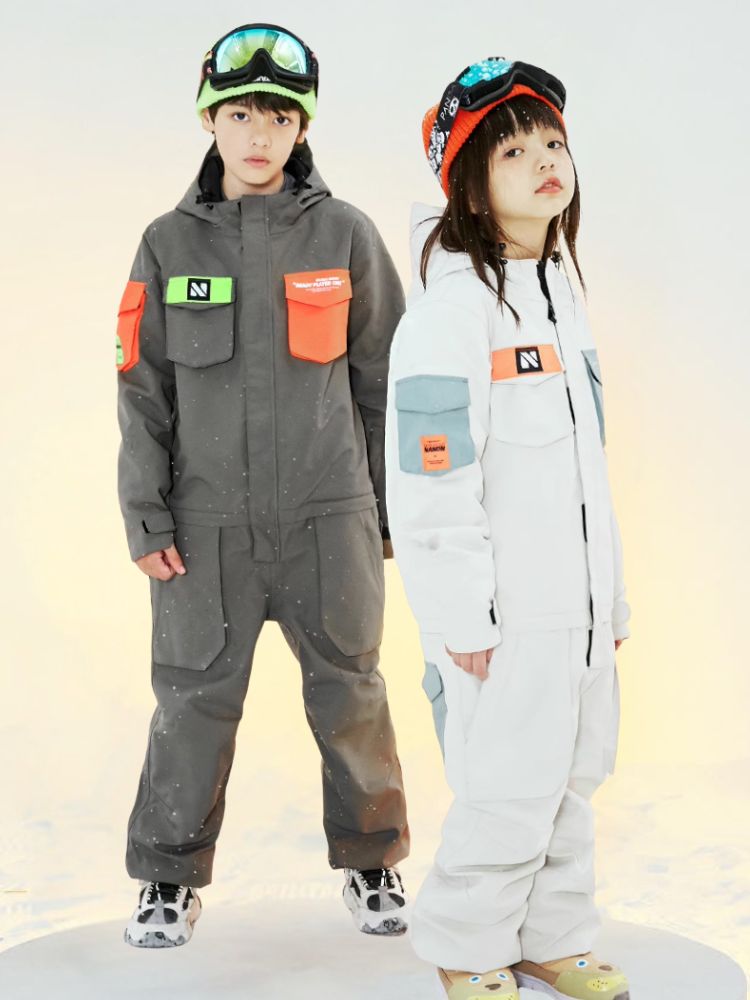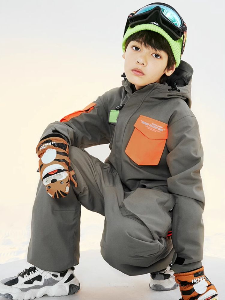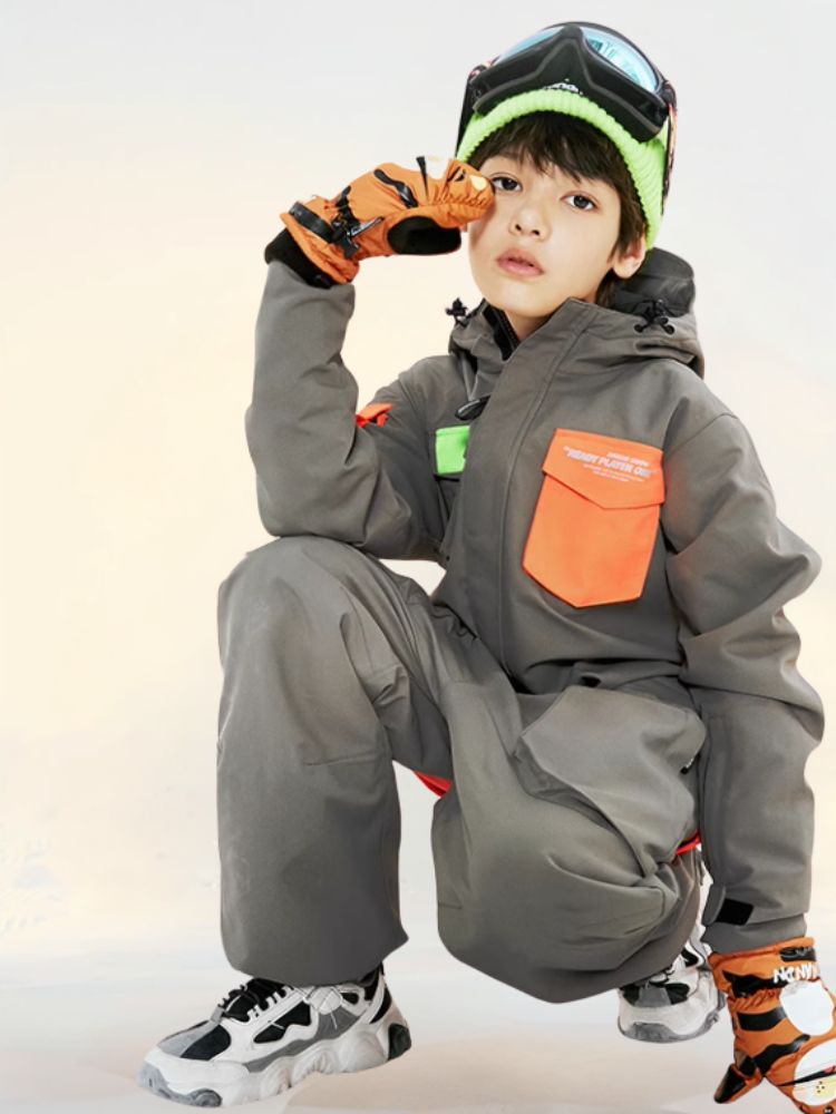 XwXwSeui Kids Insulated Waterproof Hooded Ski Jumpsuit