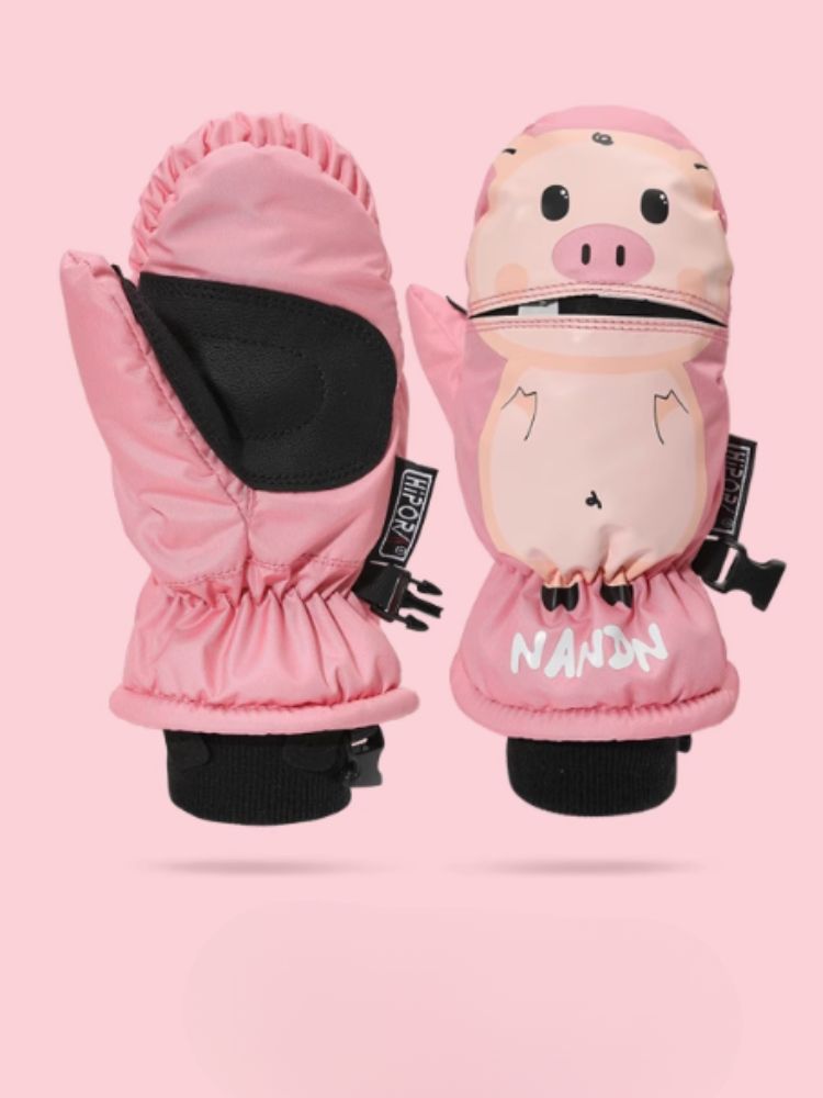 XwXwSeui Kids Waterproof Cartoon Insulated Snow Mittens