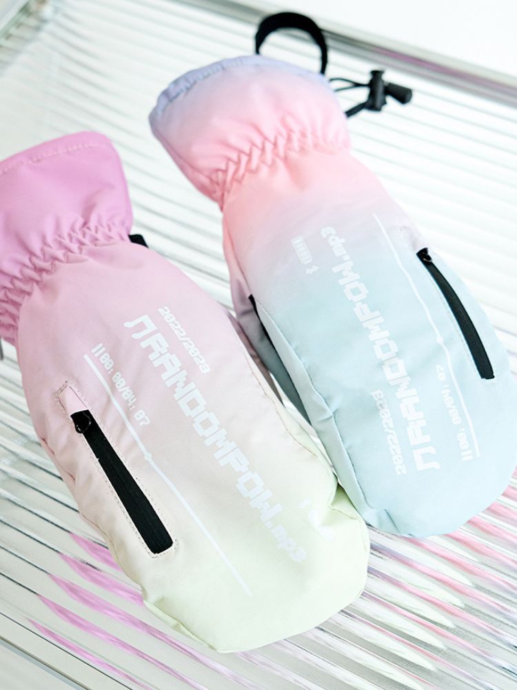 XwXwSeui Men Women Gradient Color Insulated Snow Mittens