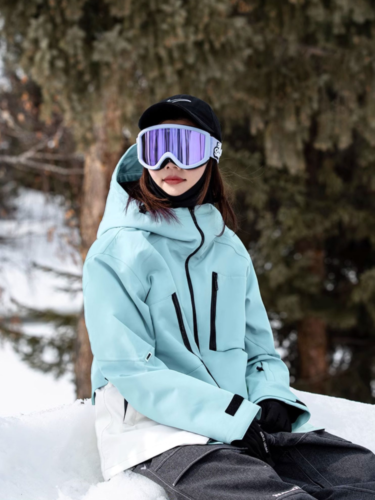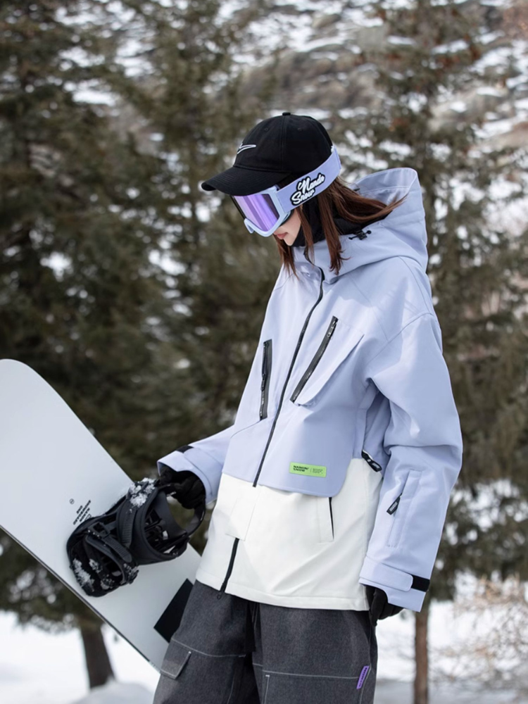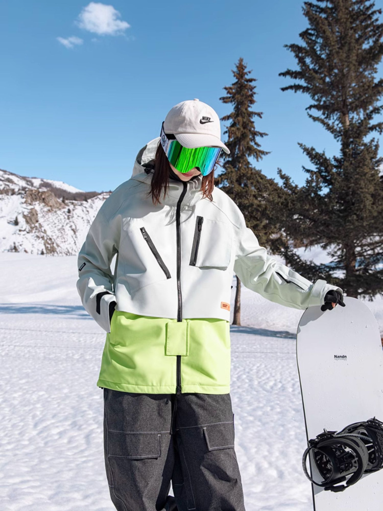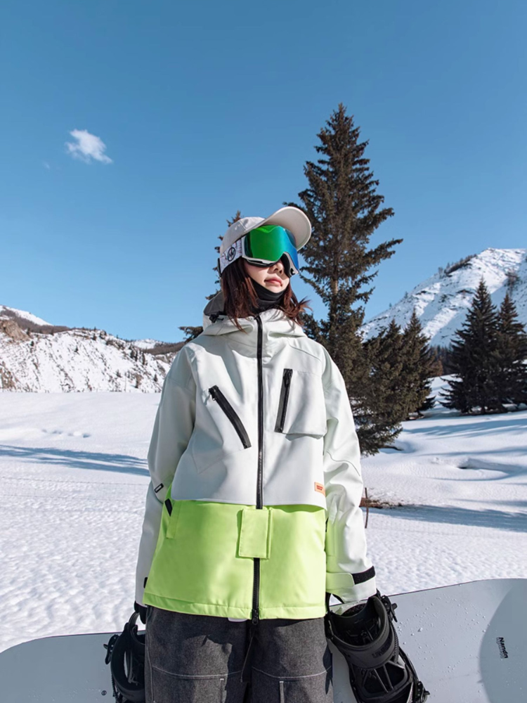 XwXwSeui Men and Women Colorblock Hood Insulated Snow Jacket