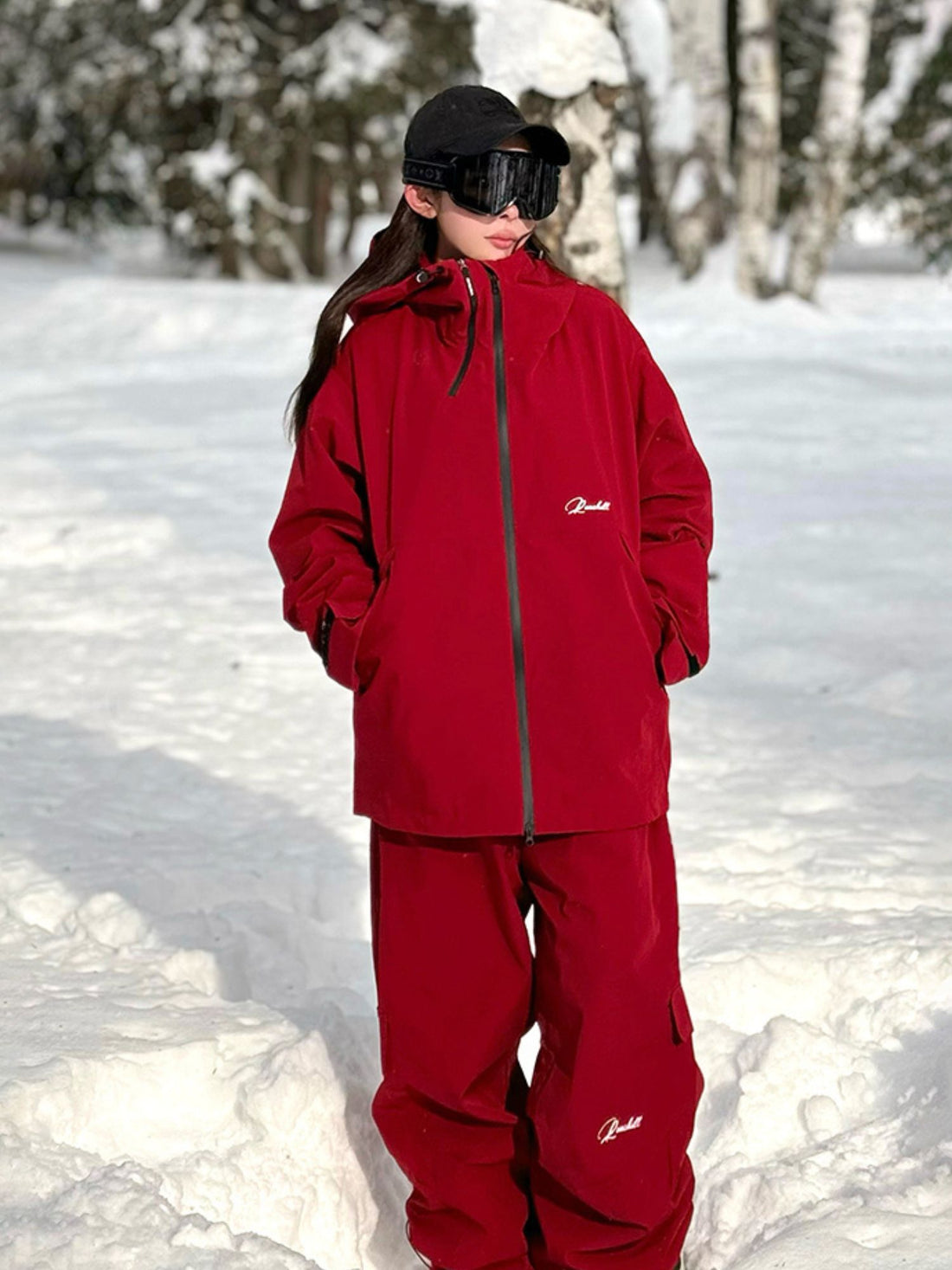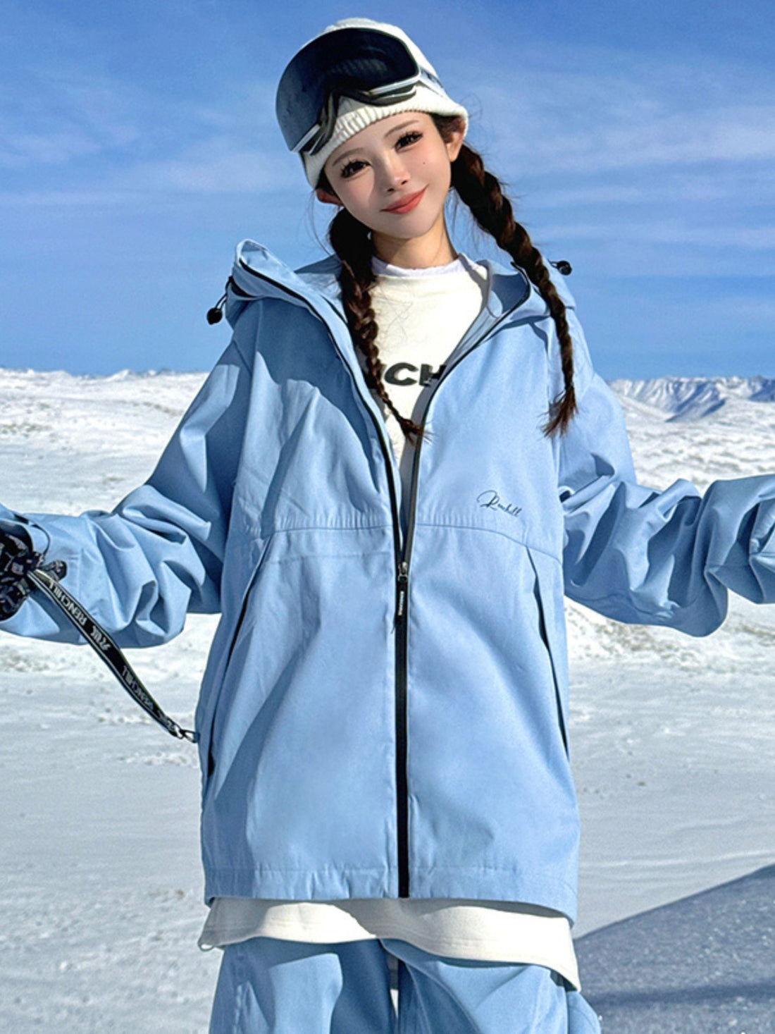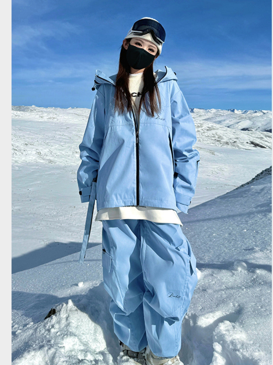 XwXwSeui Men and Women Fleeced Baggy Solid Outdoor Snowboard Suits