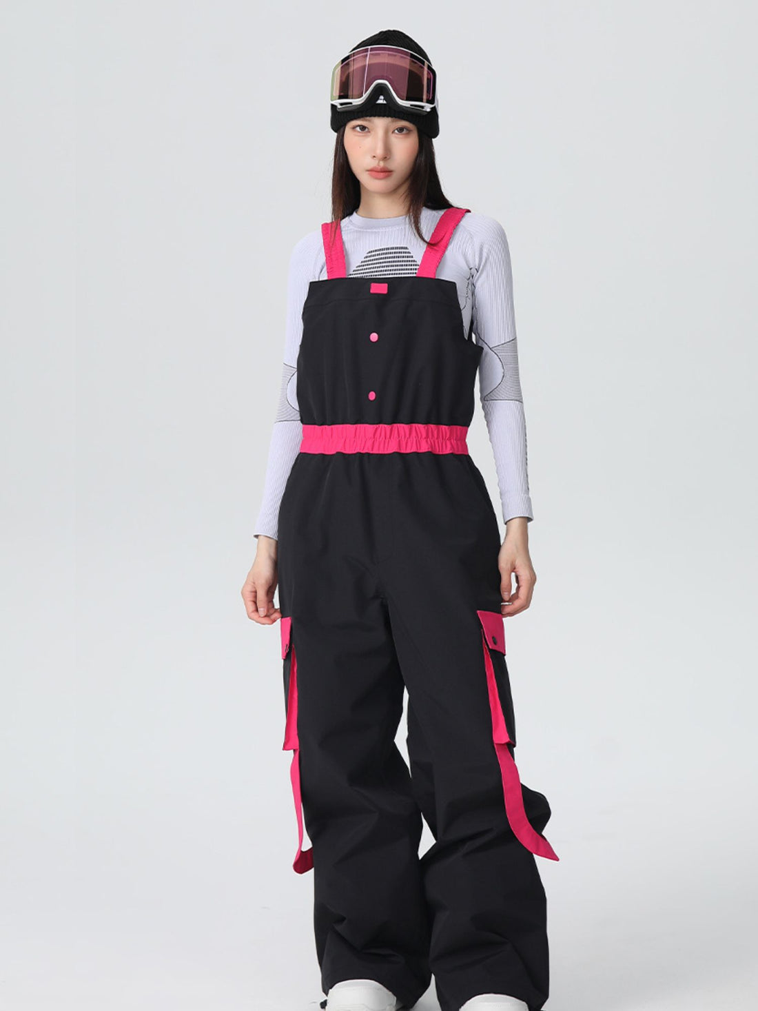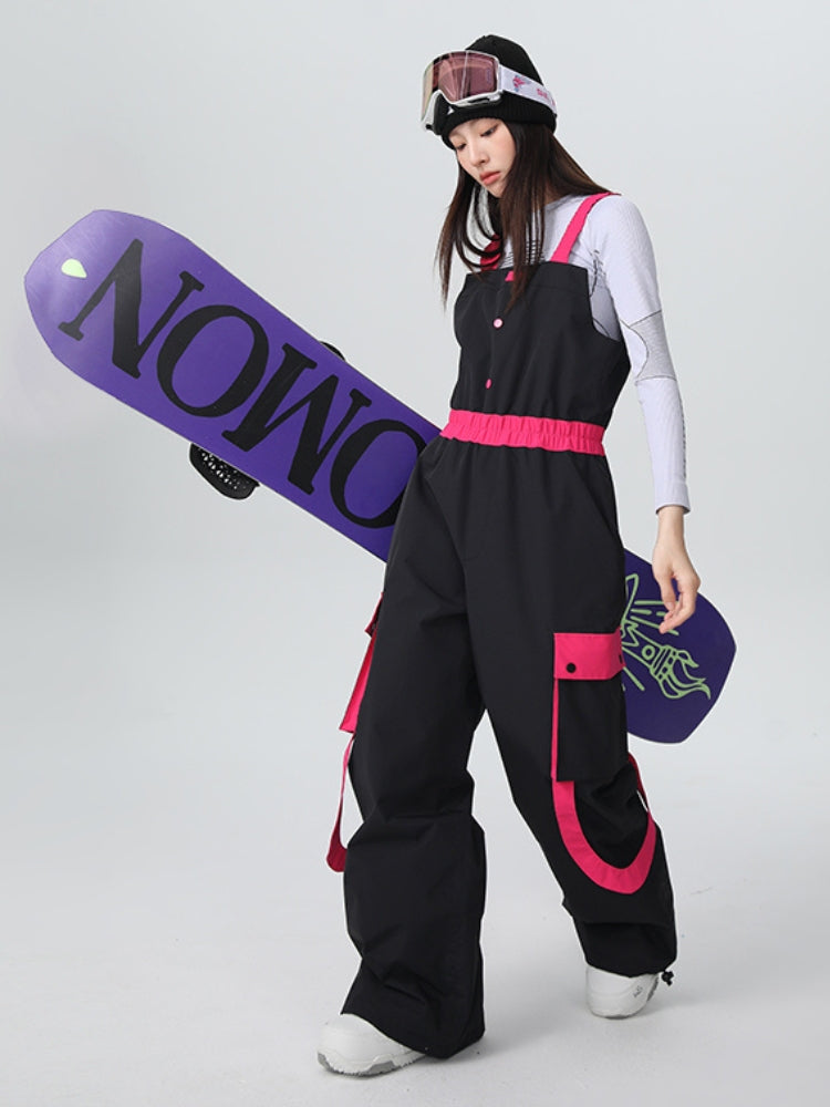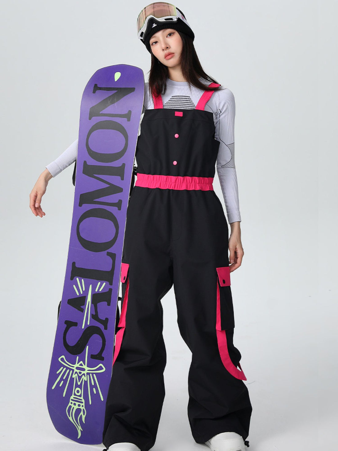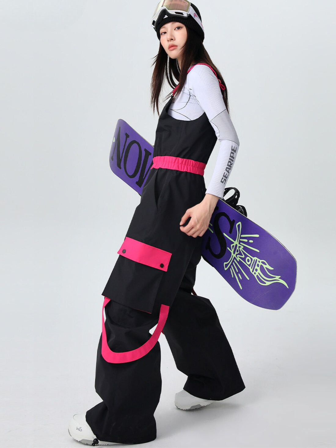 XwXwSeui Men and Women High Waist Baggy Chic Cargo Ribbon Snowboarding Bibs
