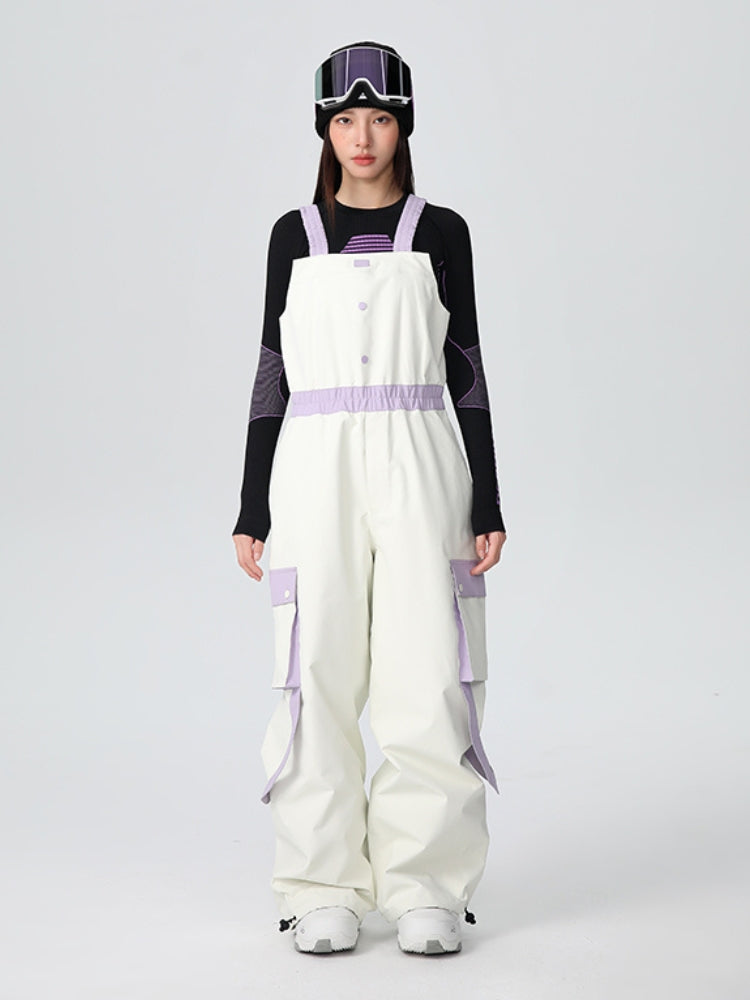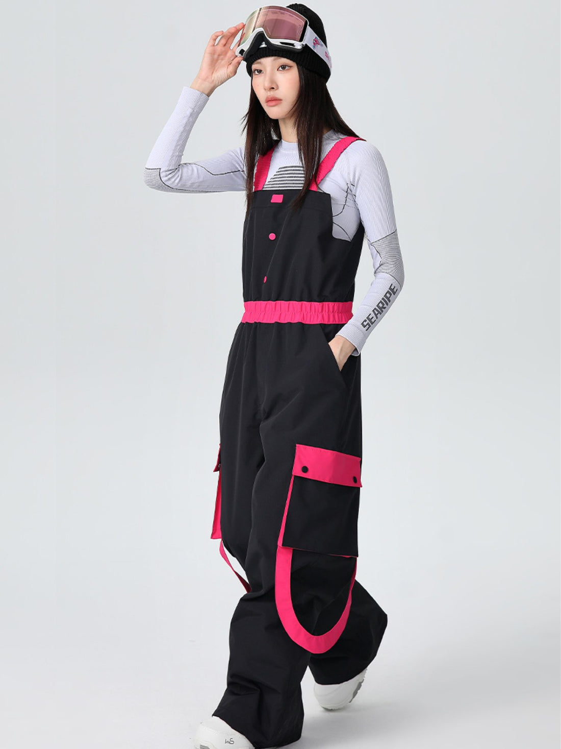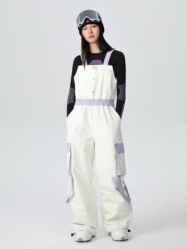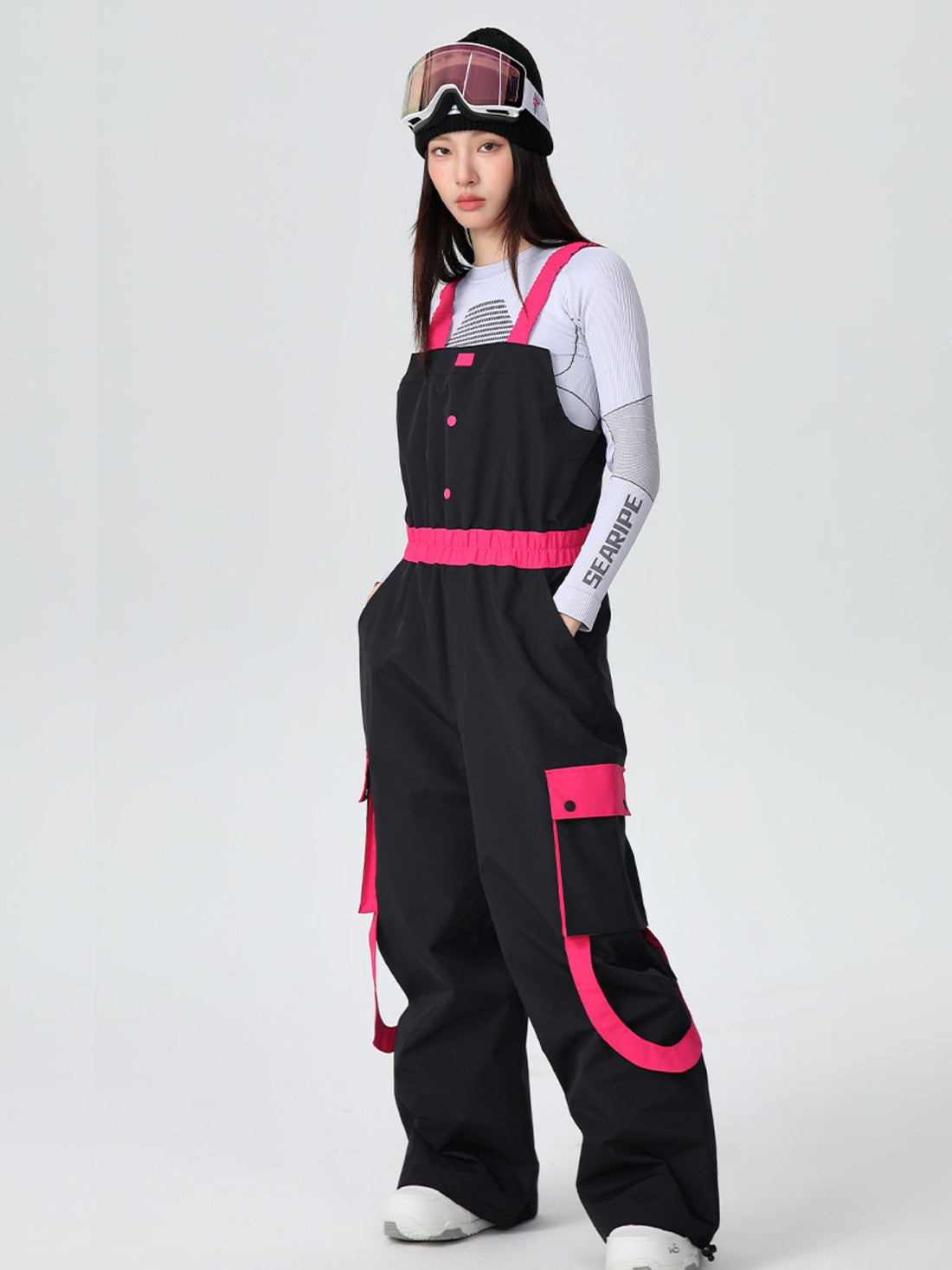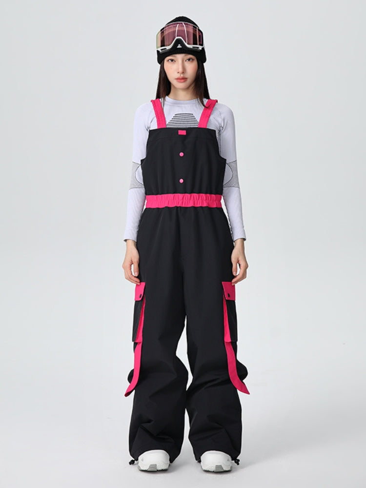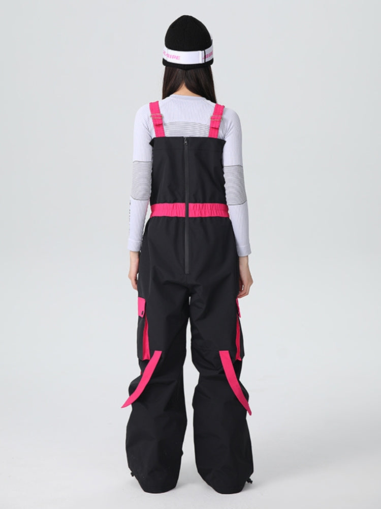 XwXwSeui Men and Women High Waist Baggy Chic Cargo Ribbon Snowboarding Bibs