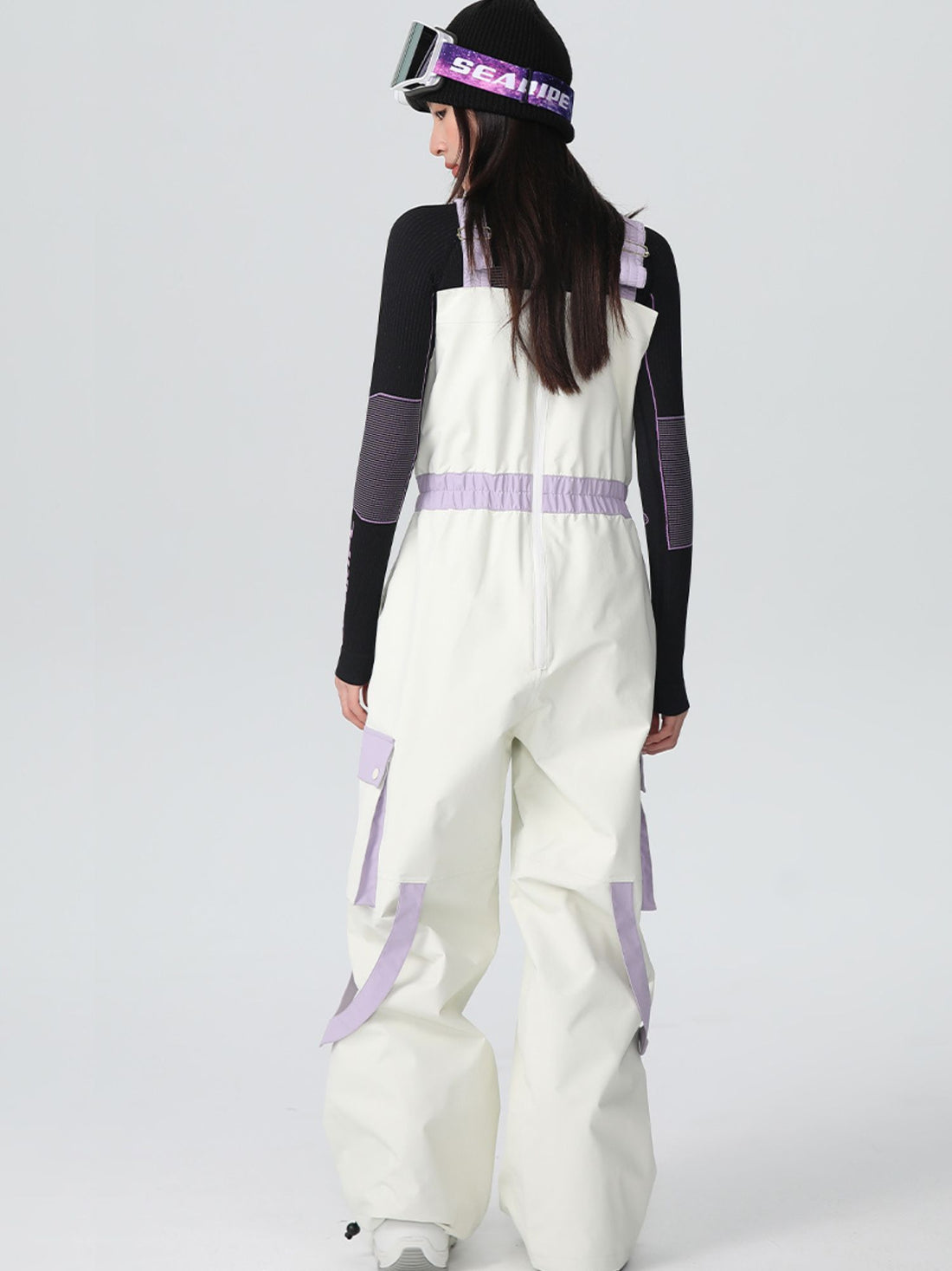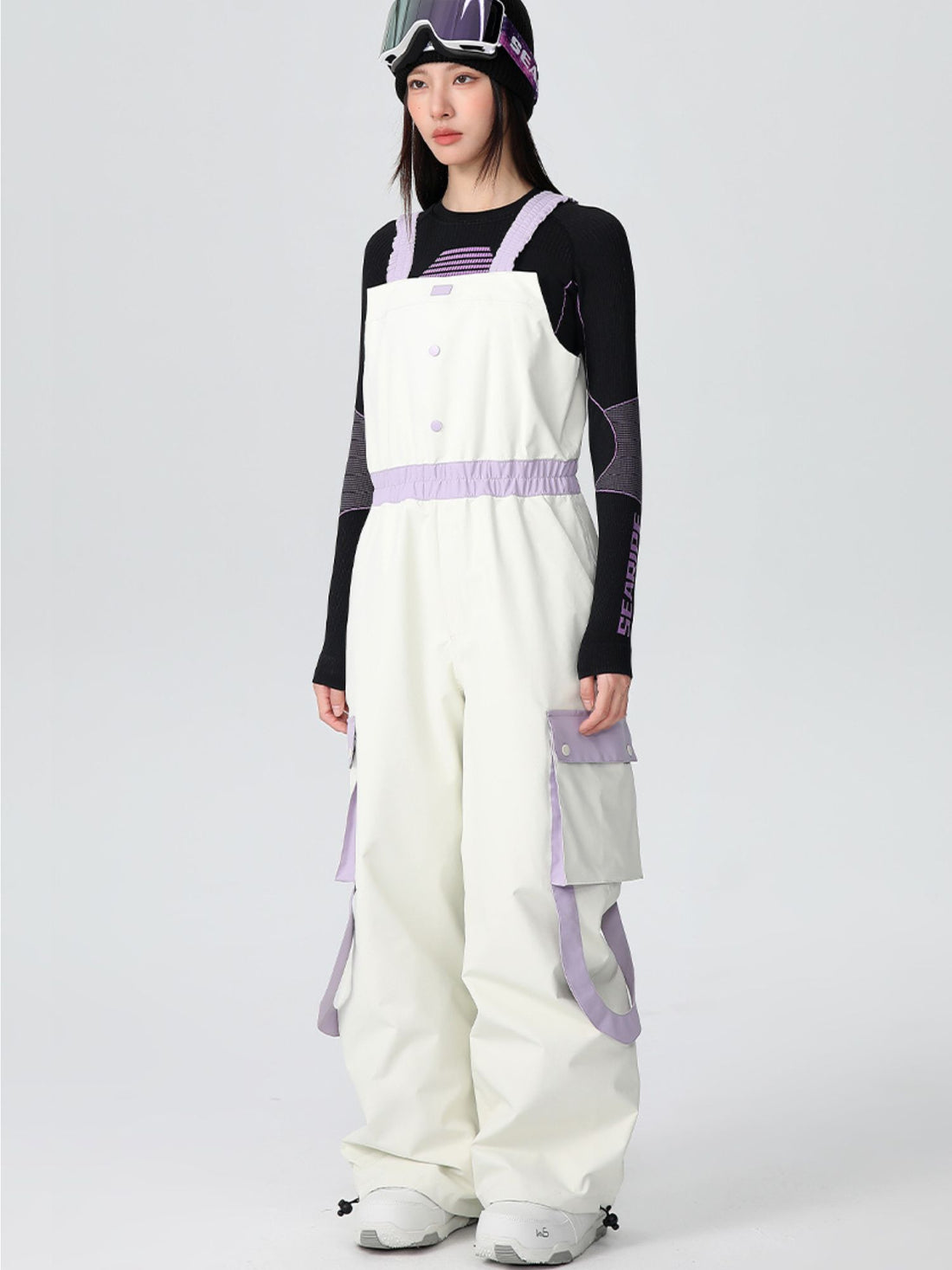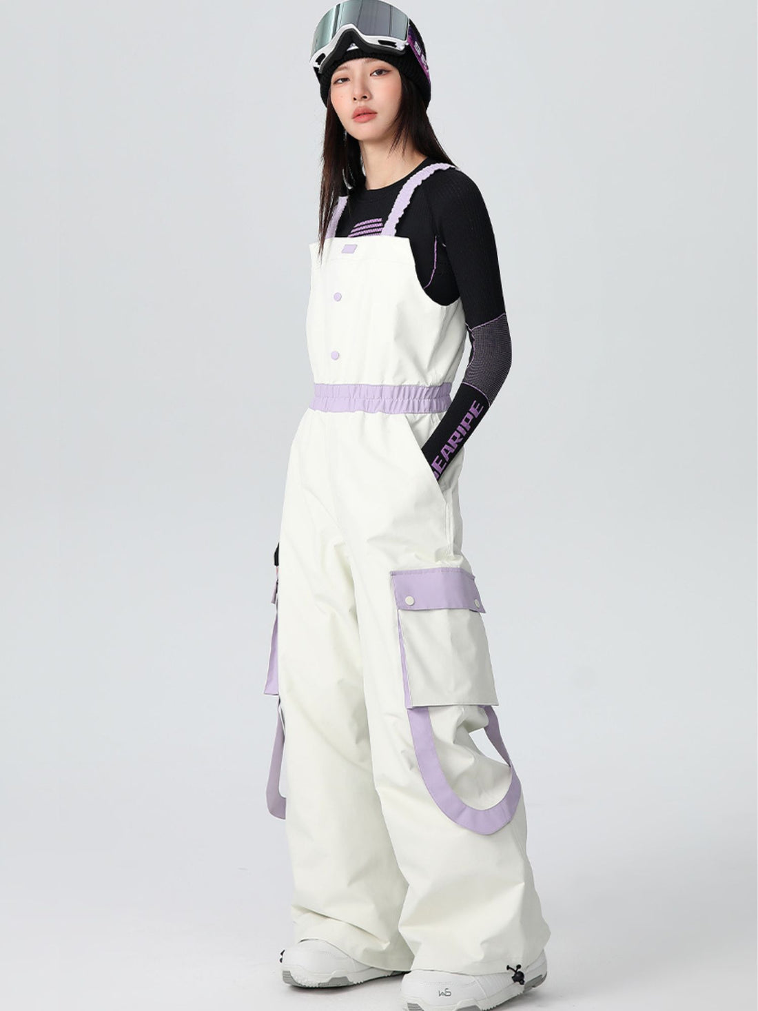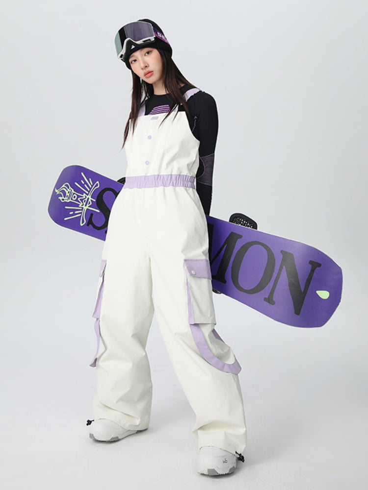 XwXwSeui Men and Women High Waist Baggy Chic Cargo Ribbon Snowboarding Bibs