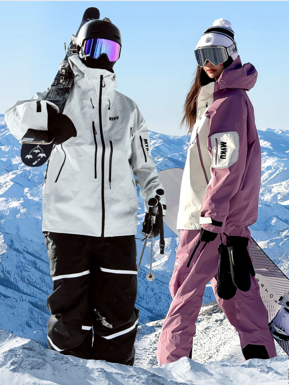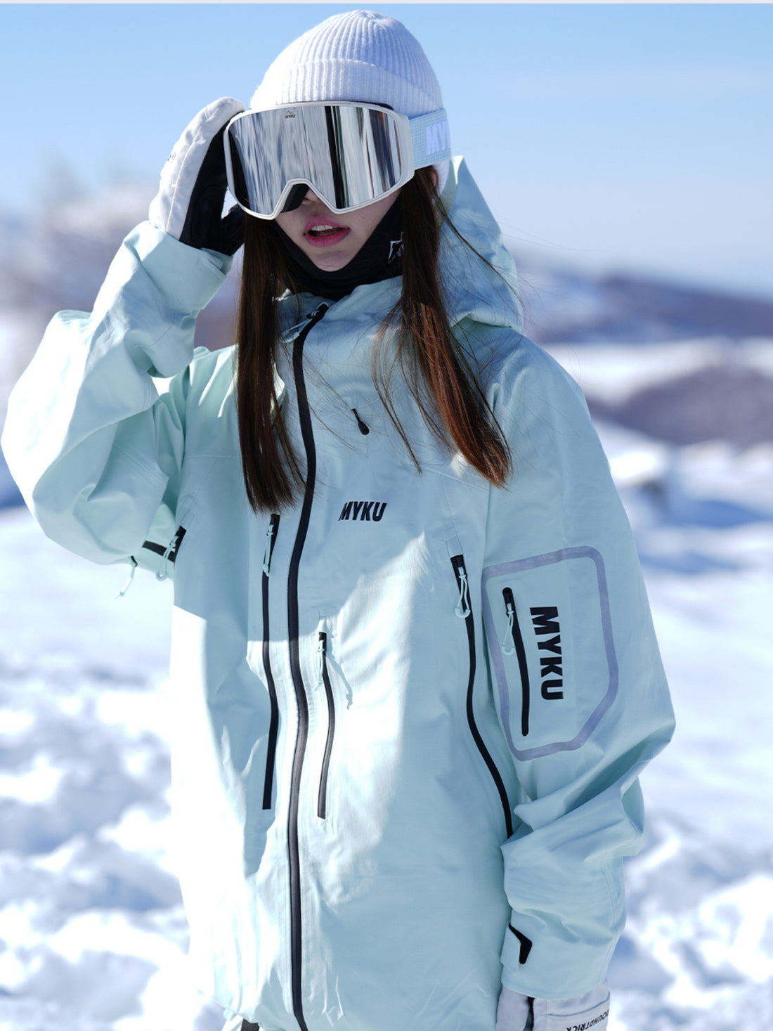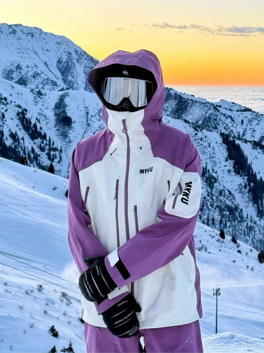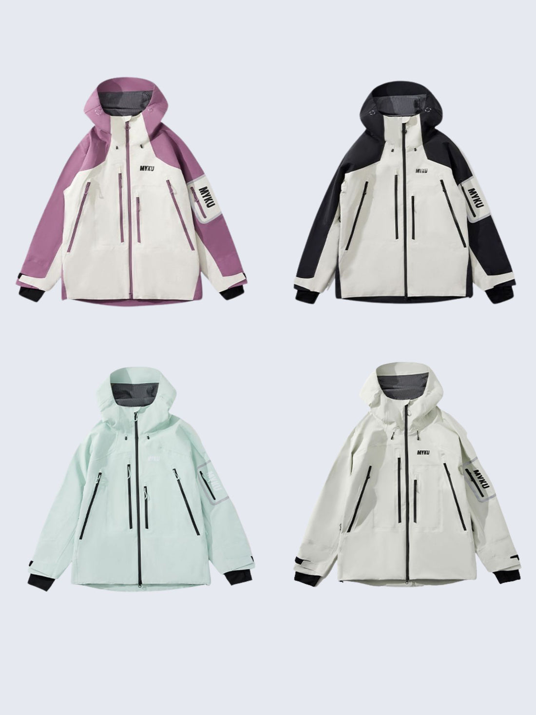 XwXwSeui Men and Women Shell 3L Hooded Loose Patchwork Breathable Zipper Snow Jackets