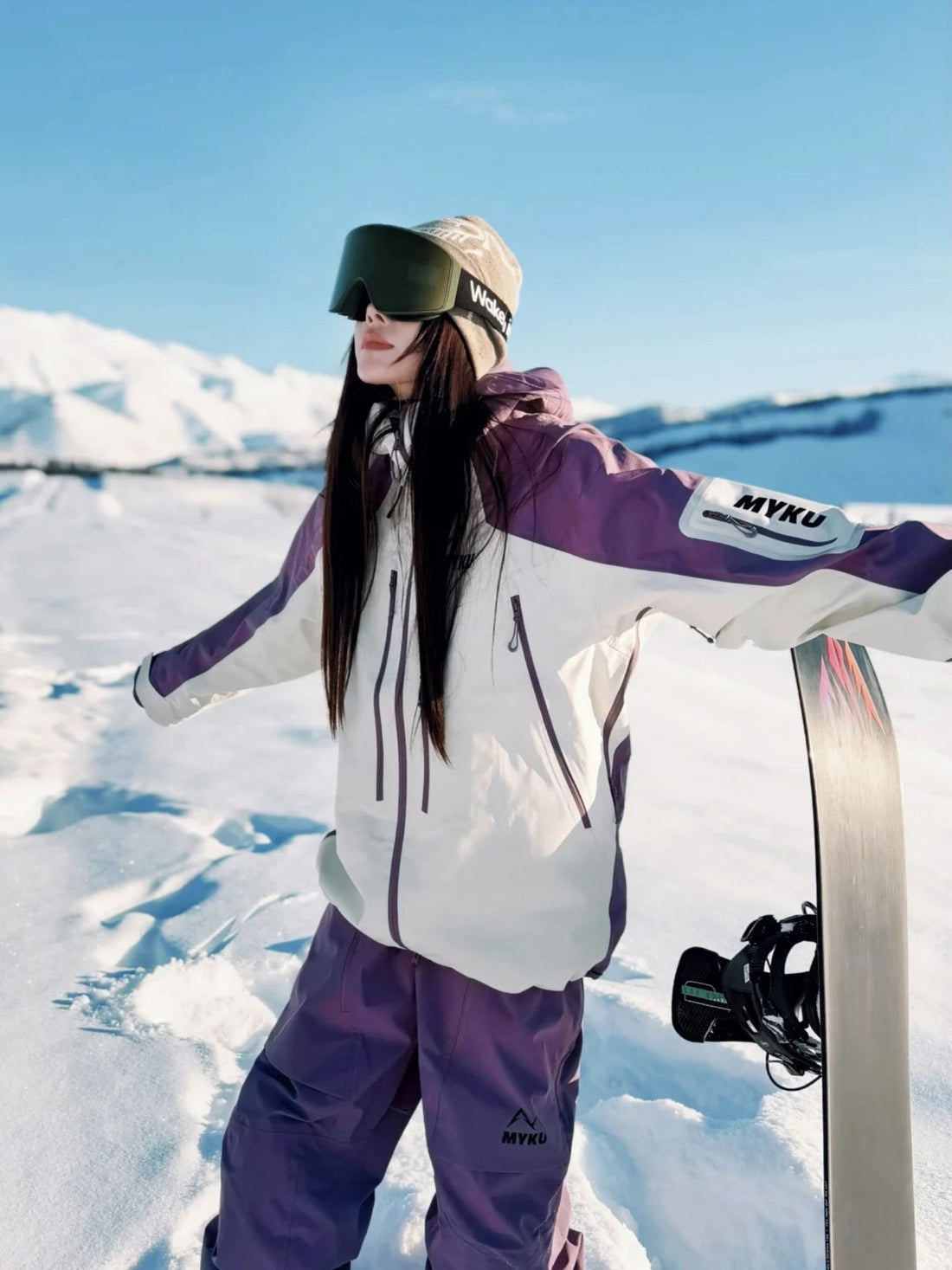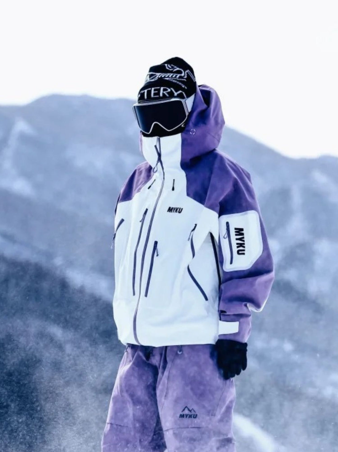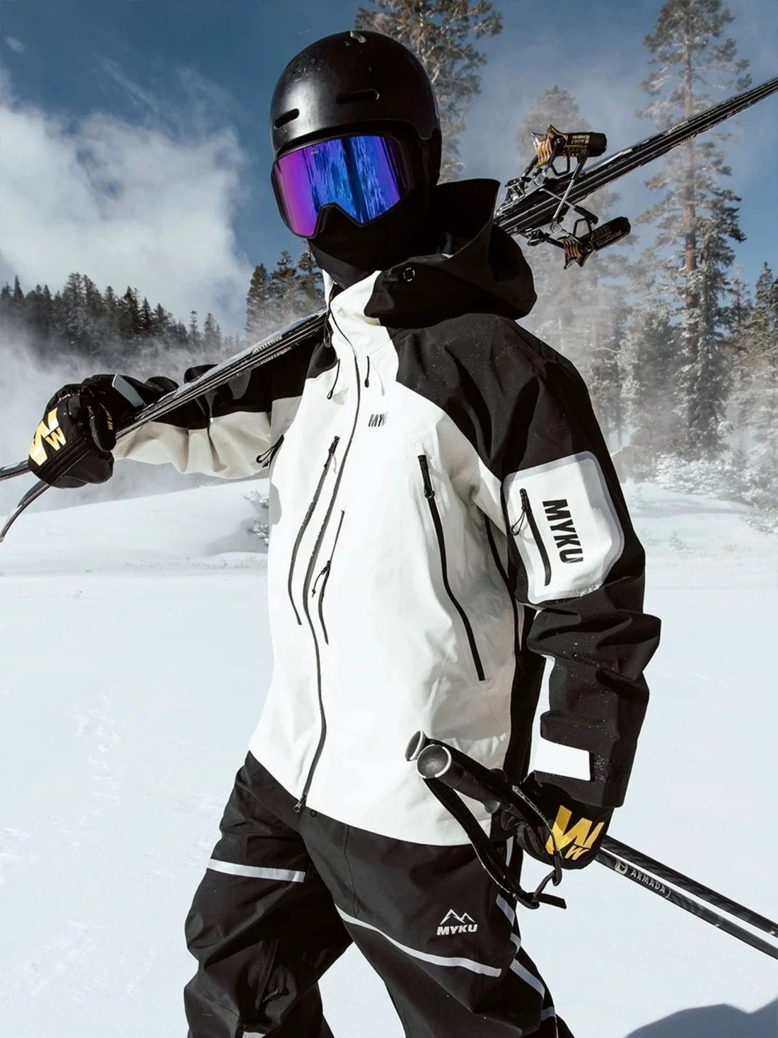 XwXwSeui Men and Women Shell 3L Hooded Loose Patchwork Breathable Zipper Snow Jackets