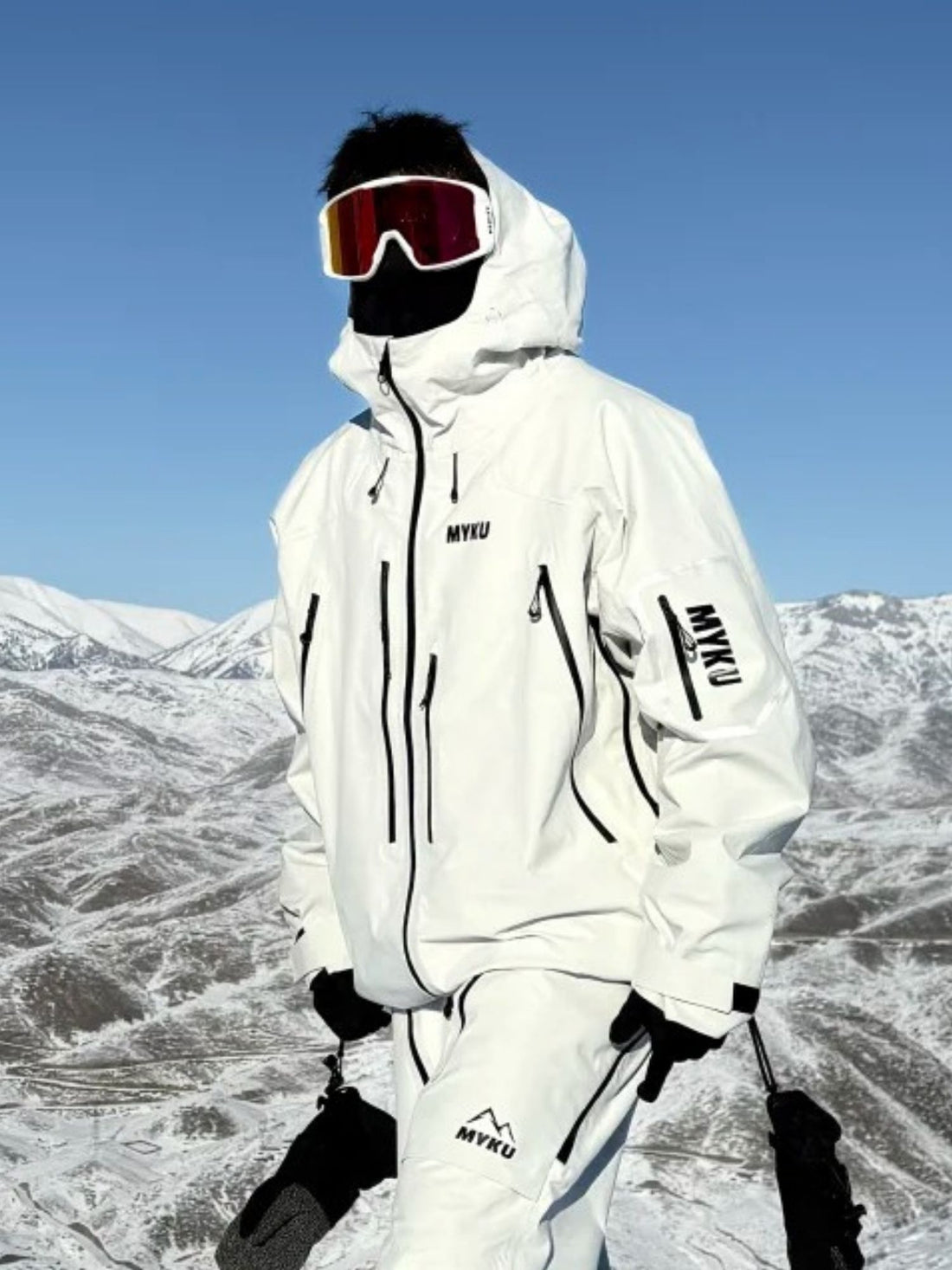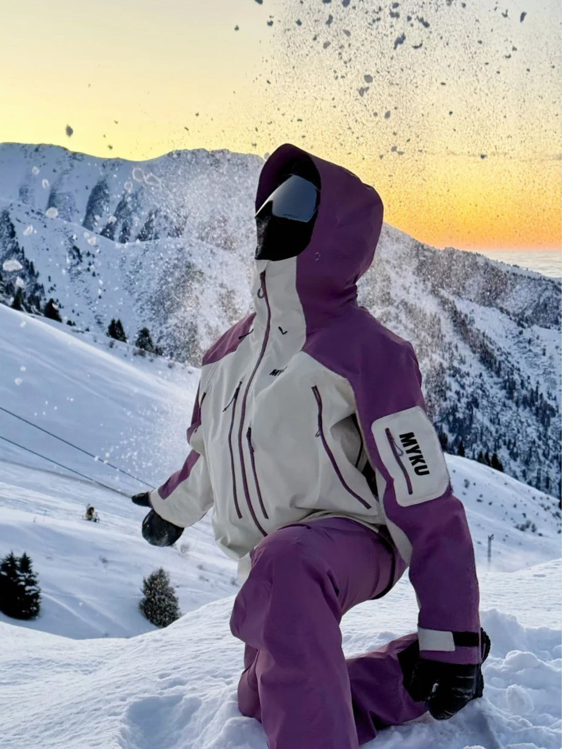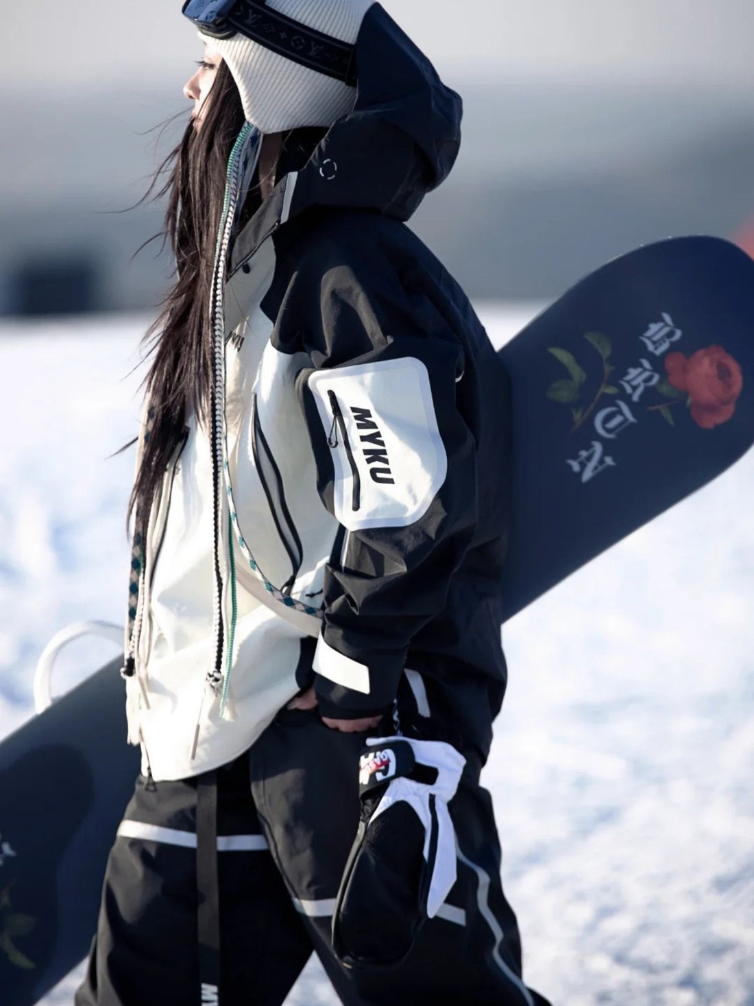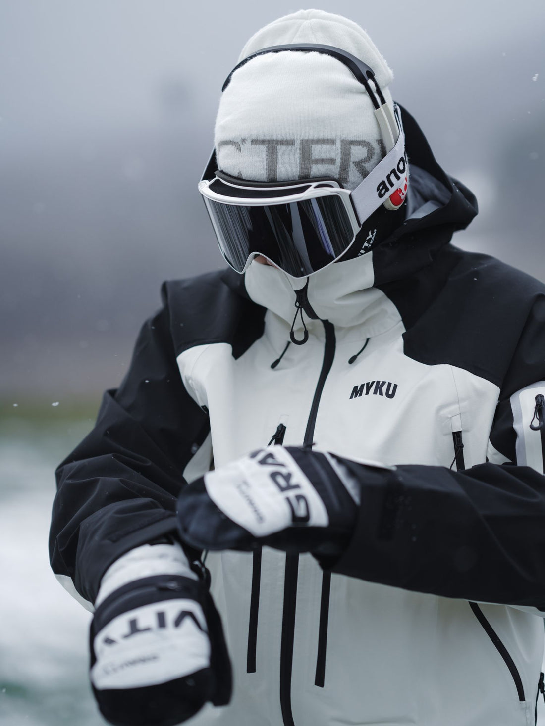 XwXwSeui Men and Women Shell 3L Hooded Loose Patchwork Breathable Zipper Snow Jackets