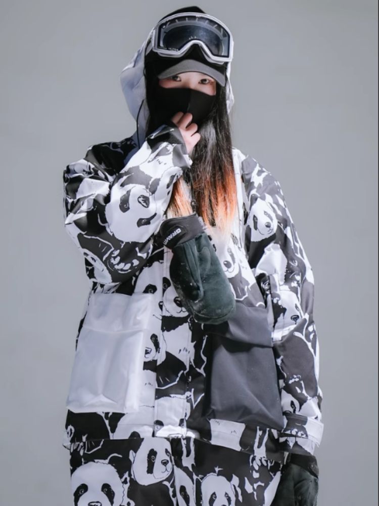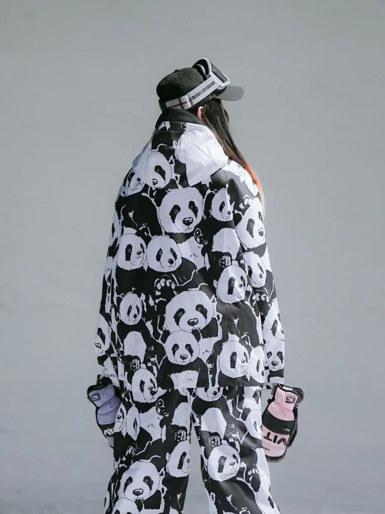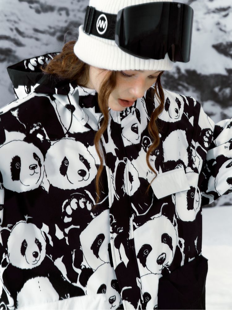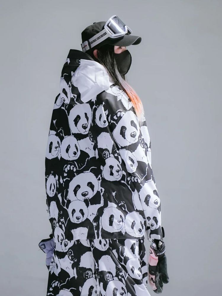 XwXwSeui Men Women Panda Printed Snow Jacket