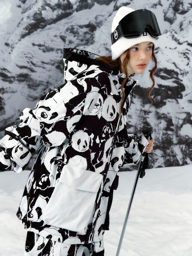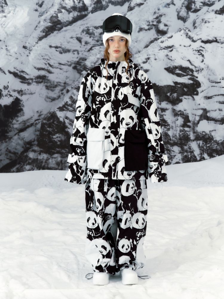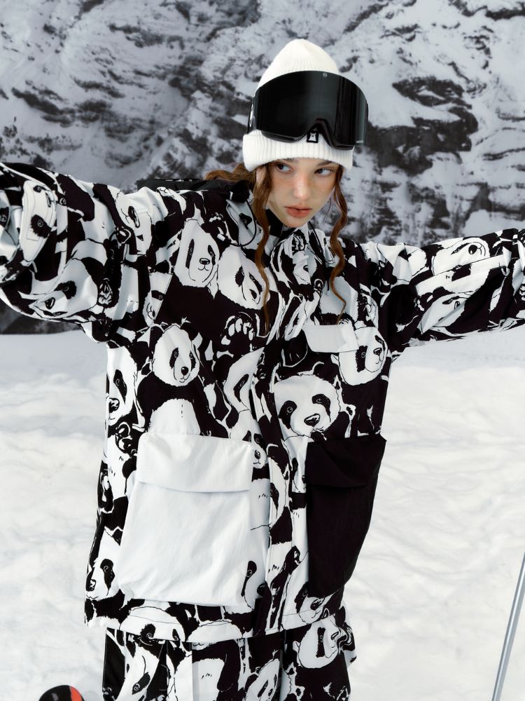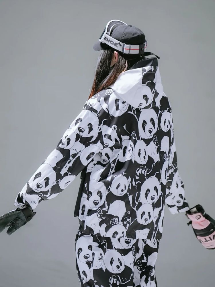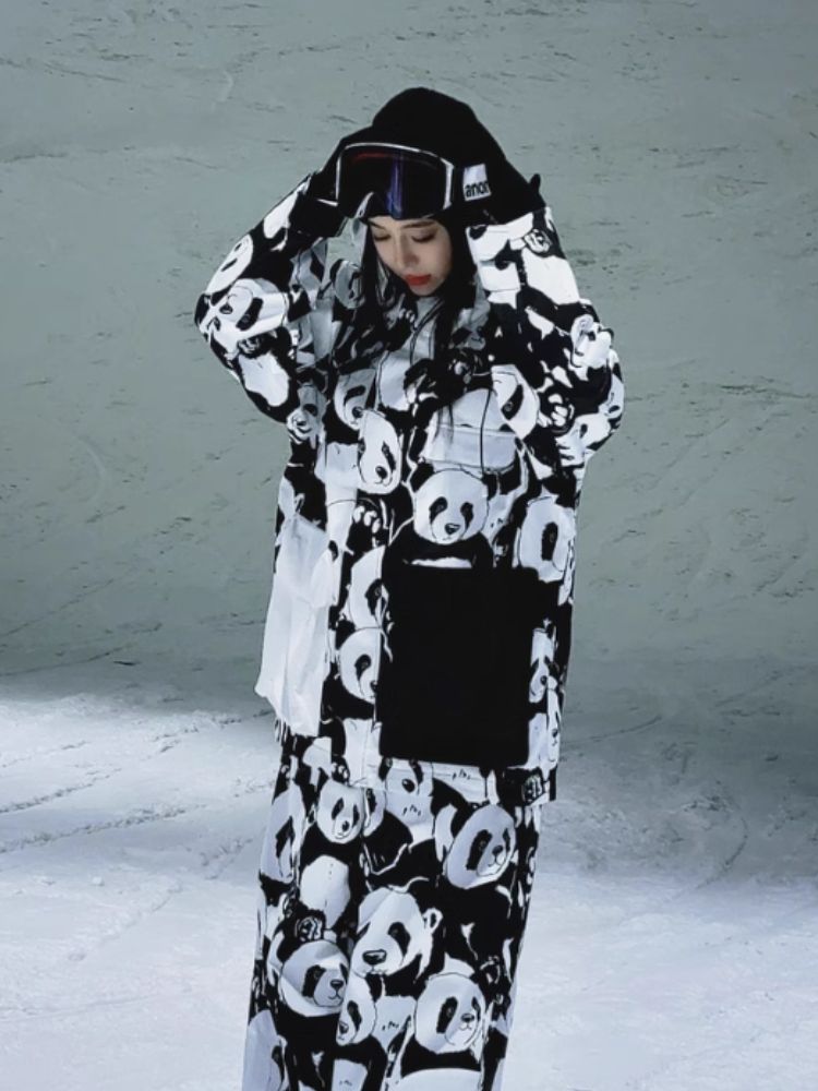 XwXwSeui Men Women Panda Printed Snow Jacket