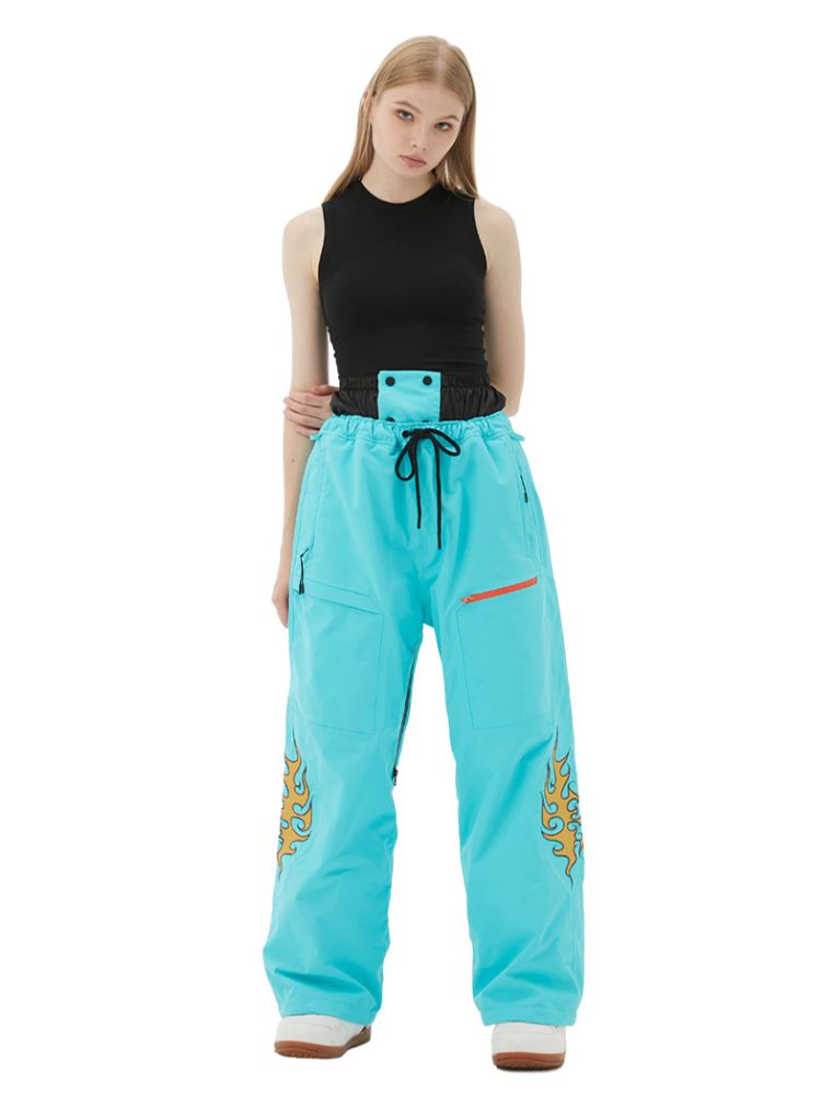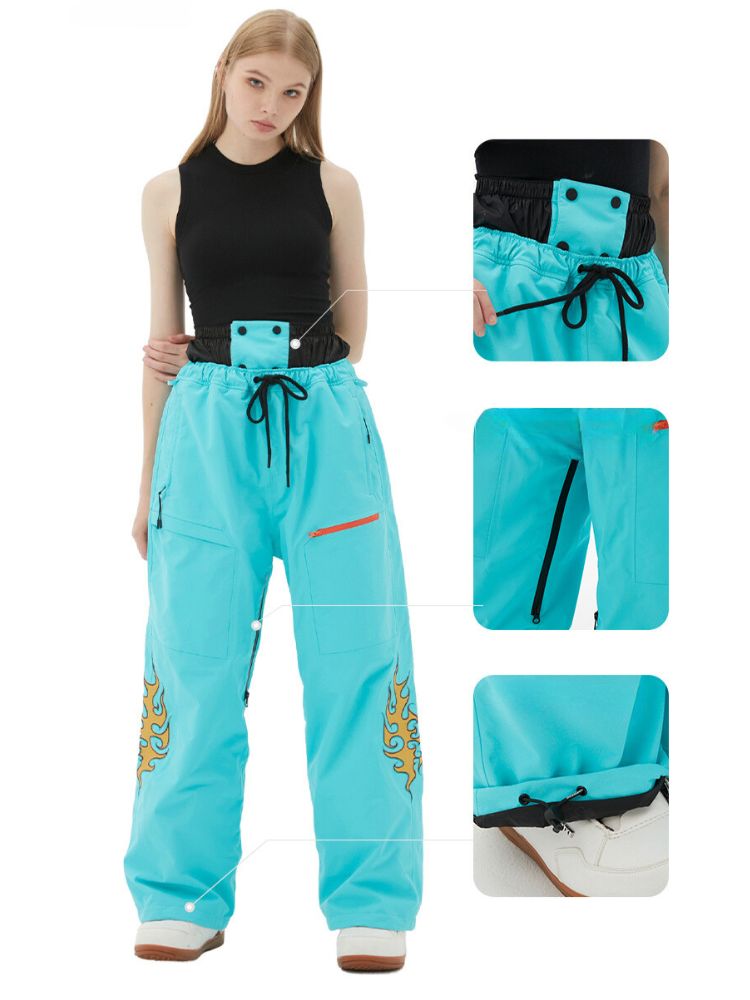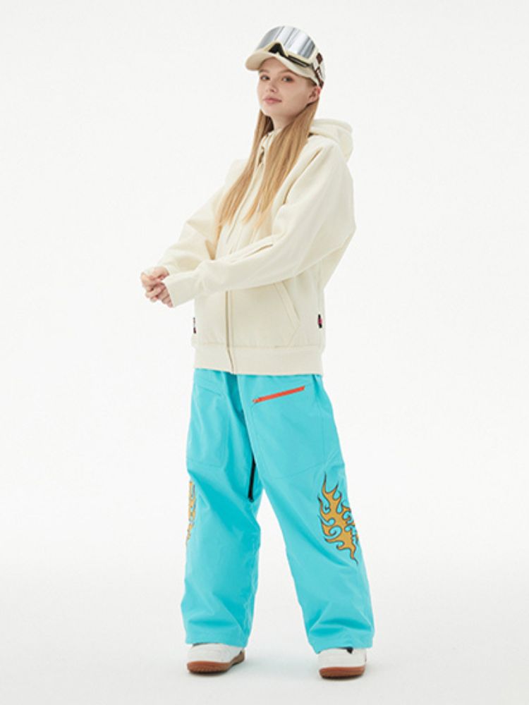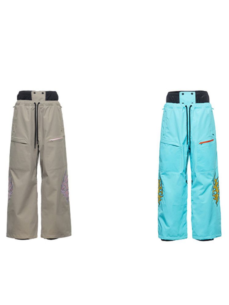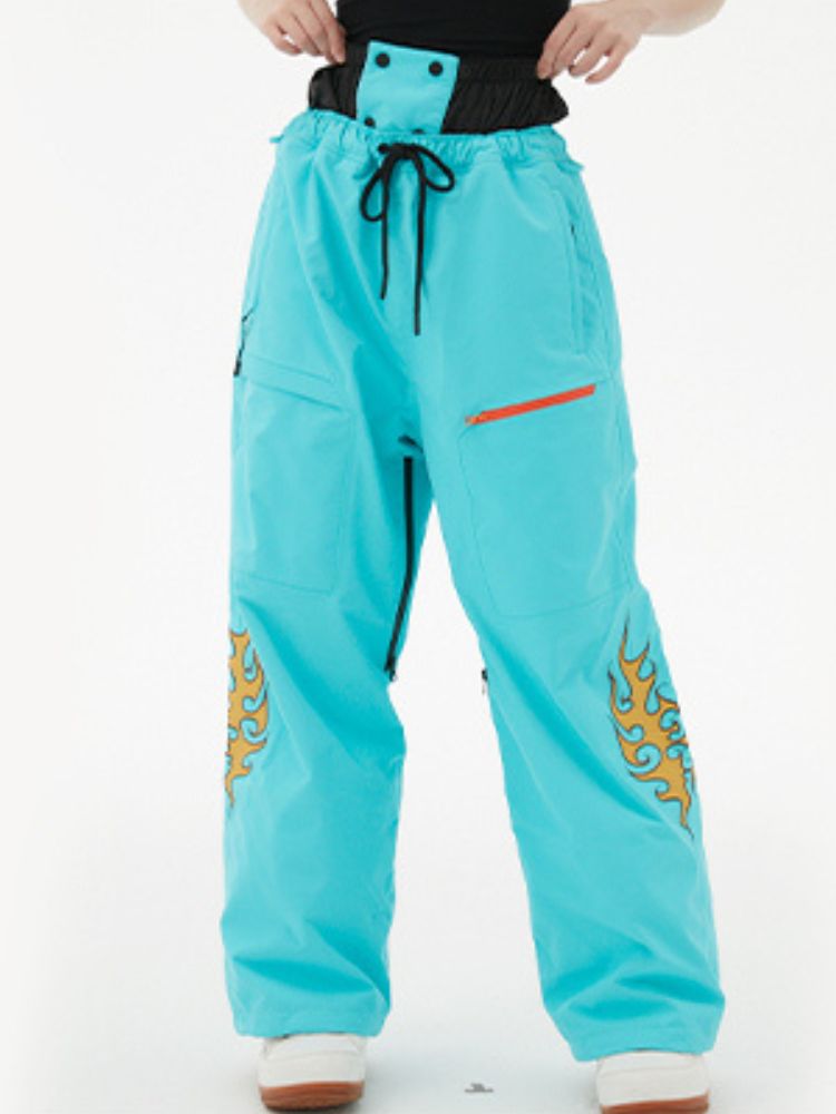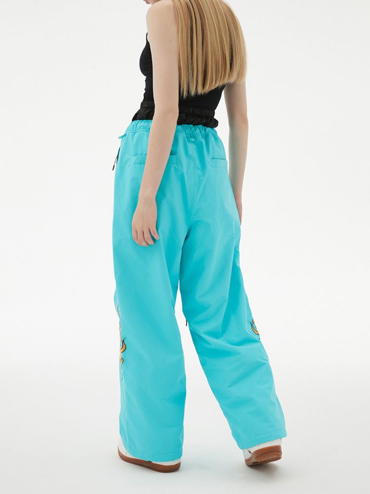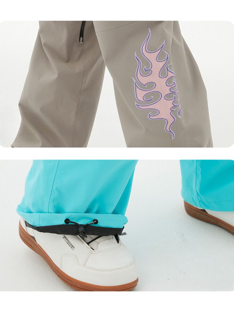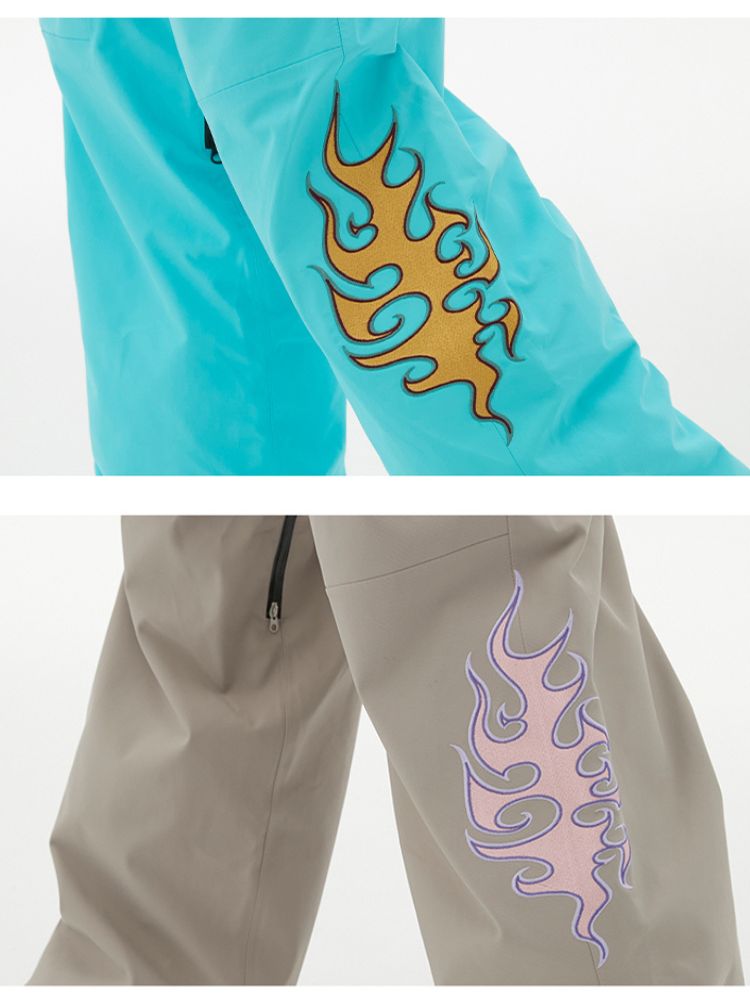 XwXwSeui Men Women Flame Embroidery Insulated Ski Pants