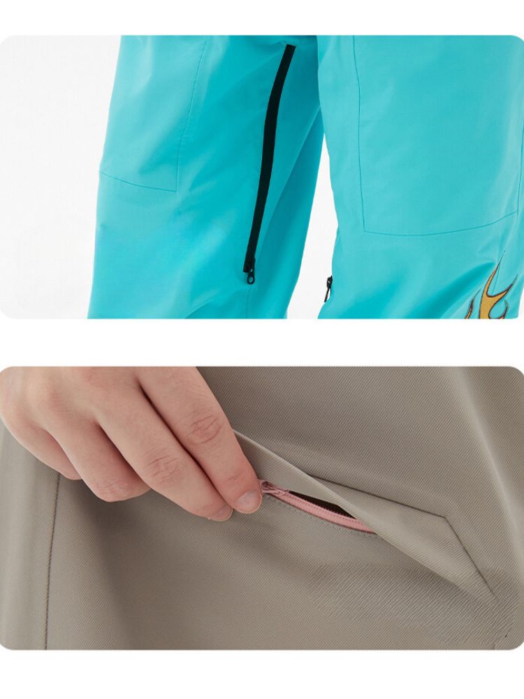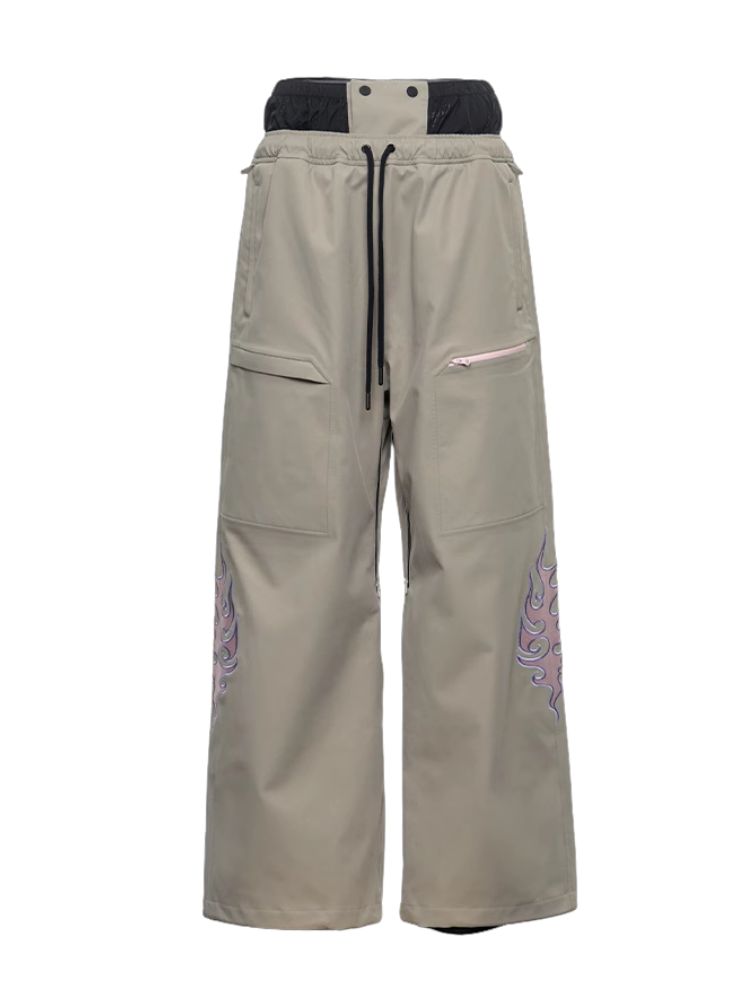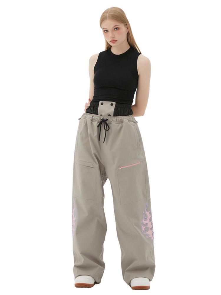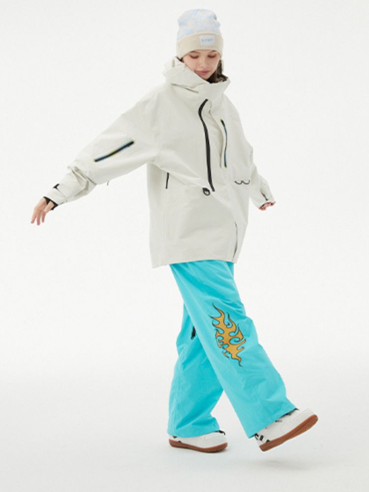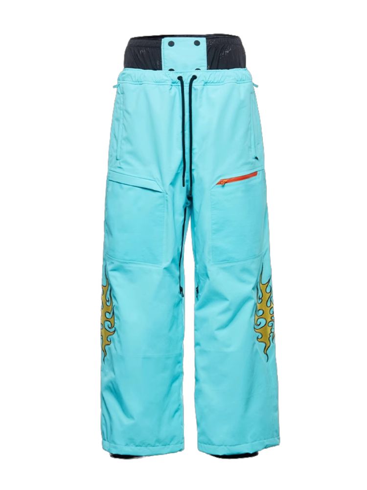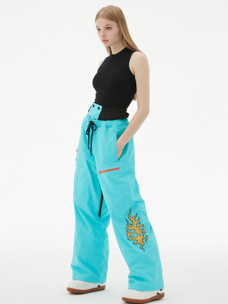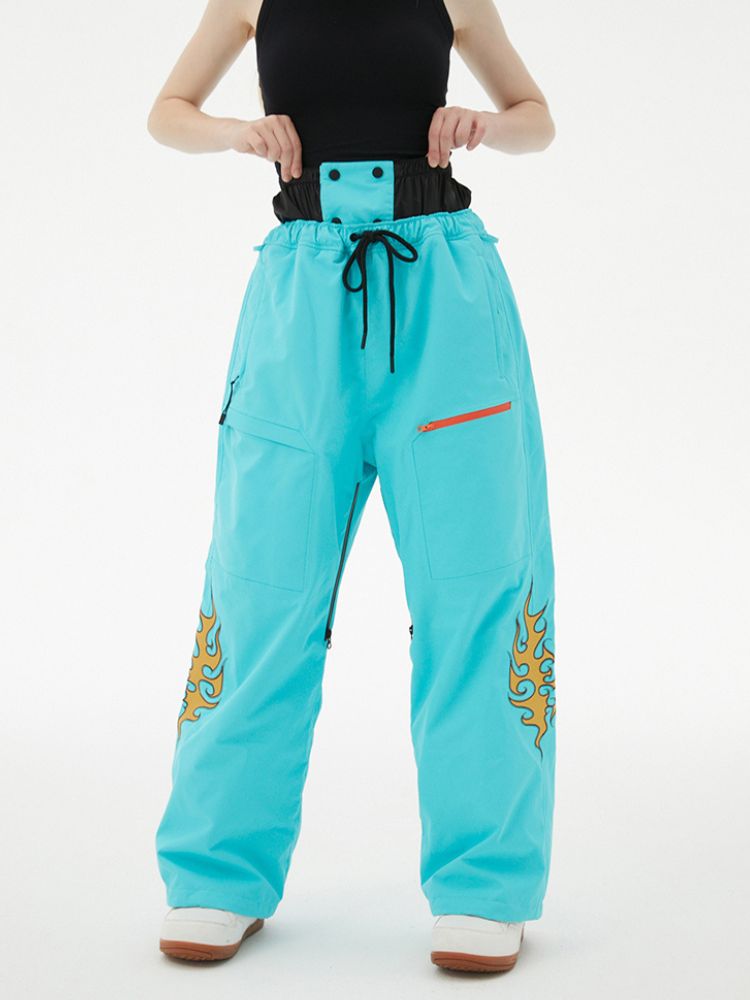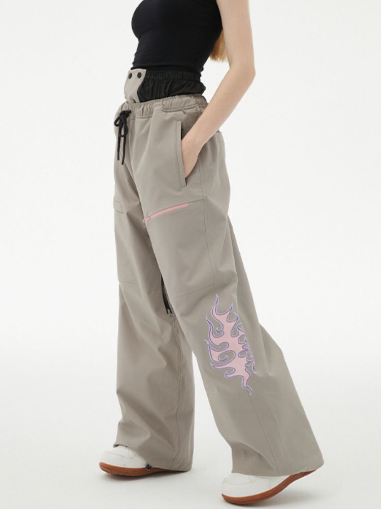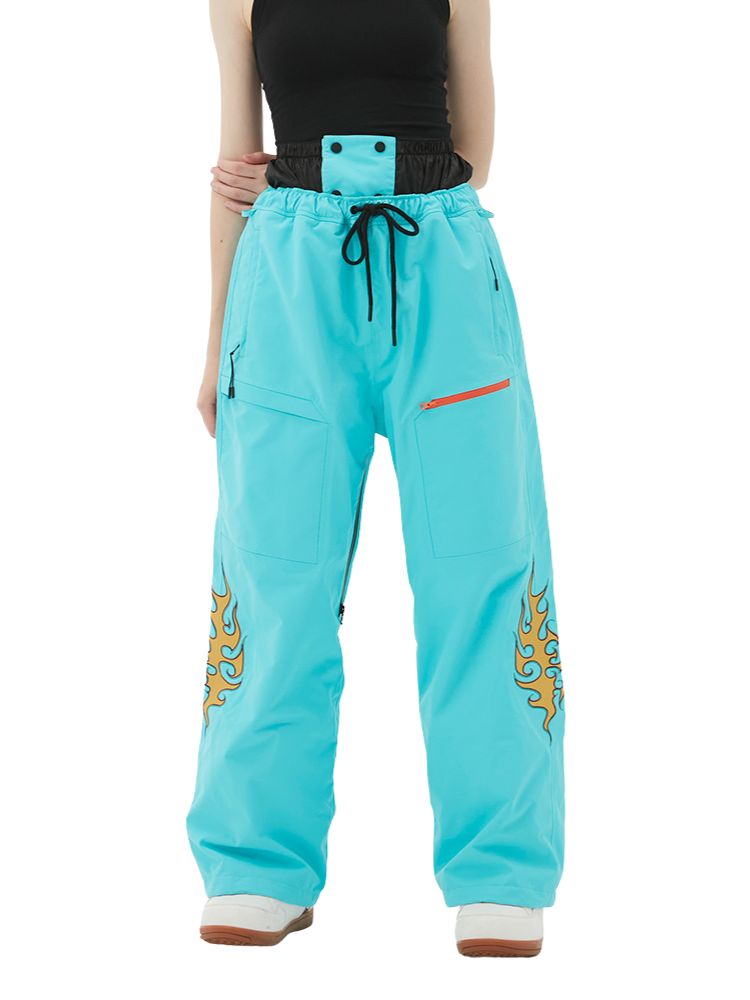 XwXwSeui Men Women Flame Embroidery Insulated Ski Pants