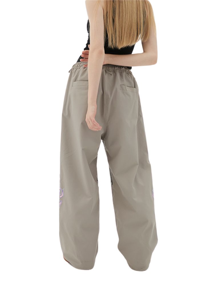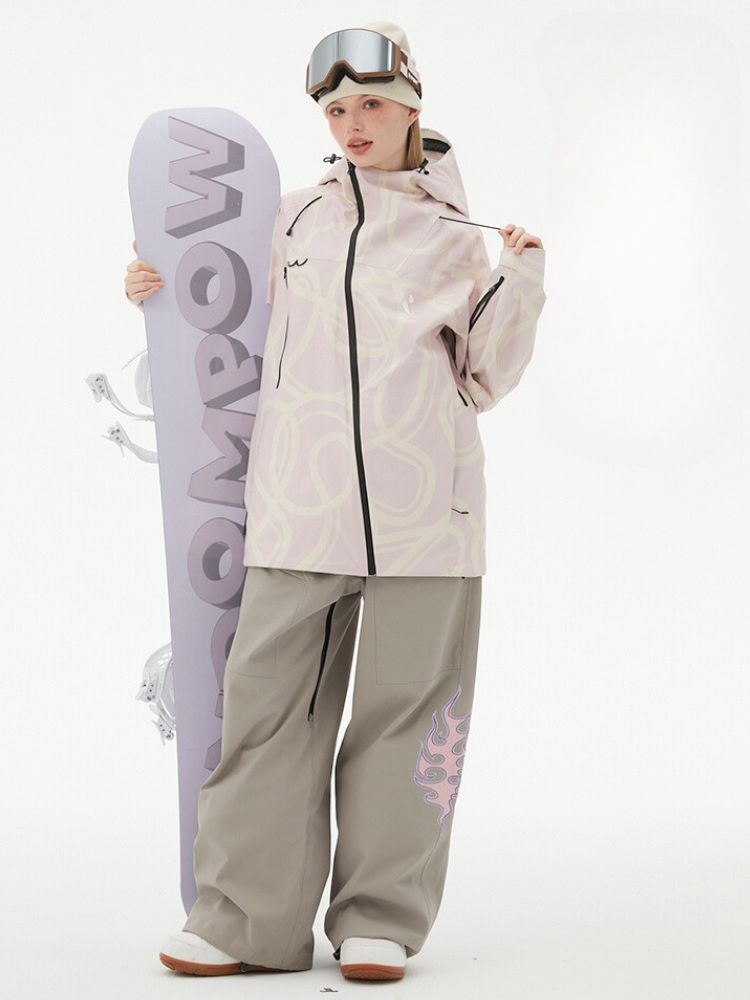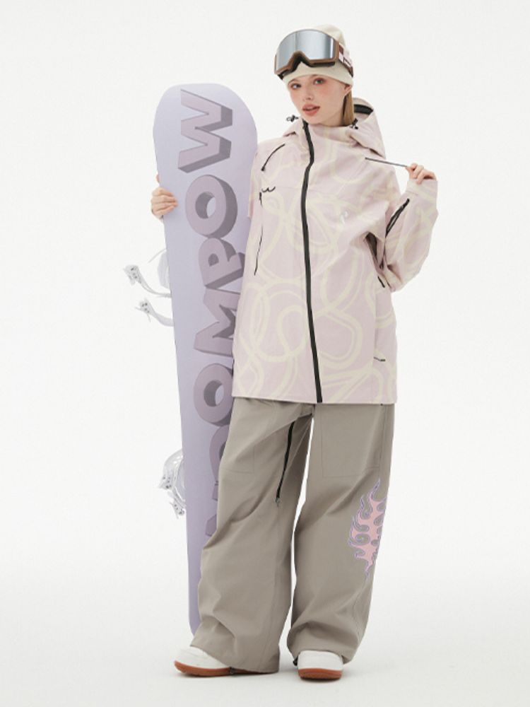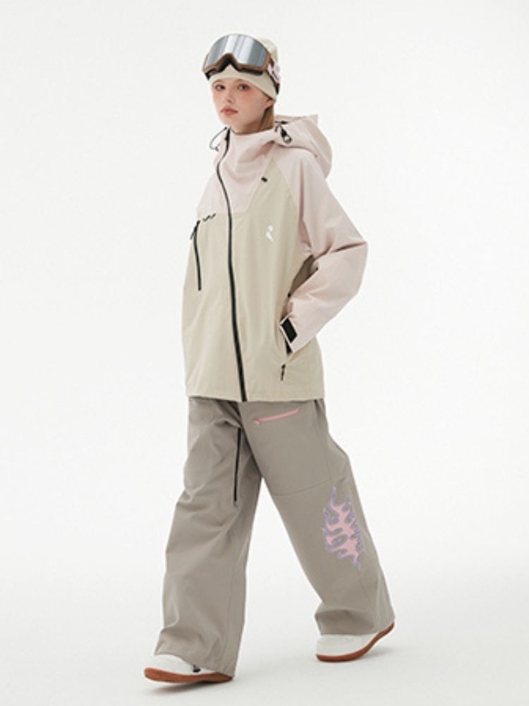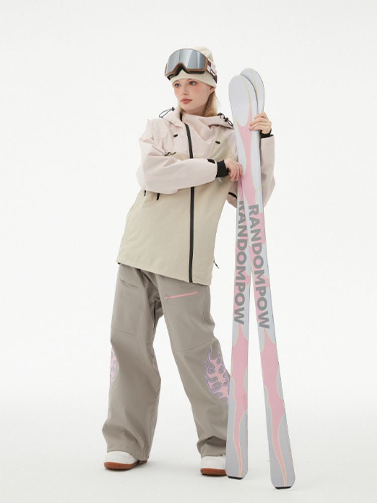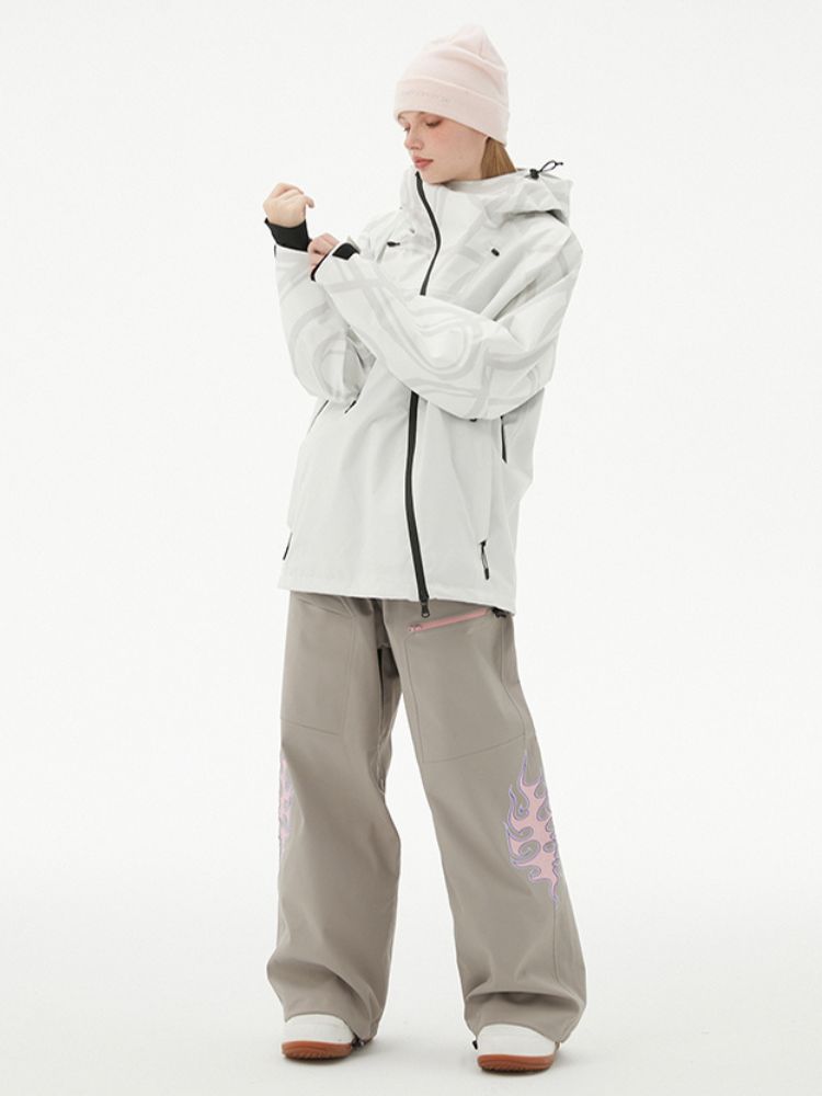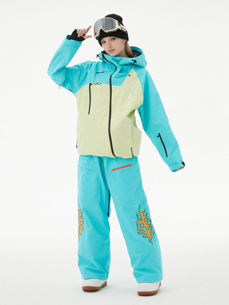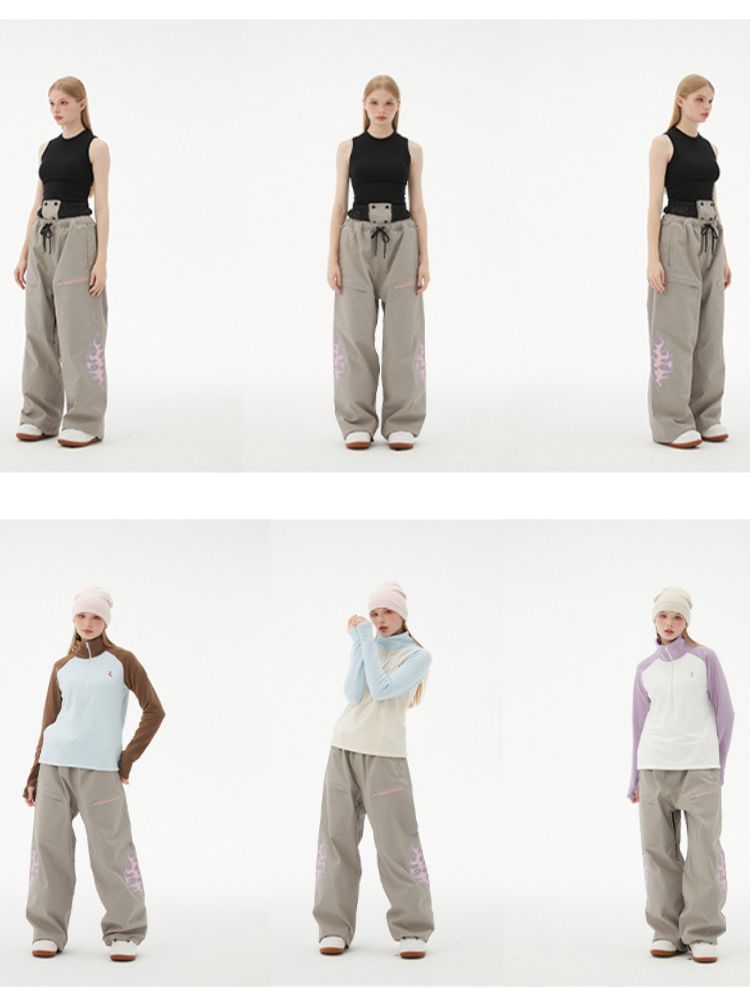 XwXwSeui Men Women Flame Embroidery Insulated Ski Pants