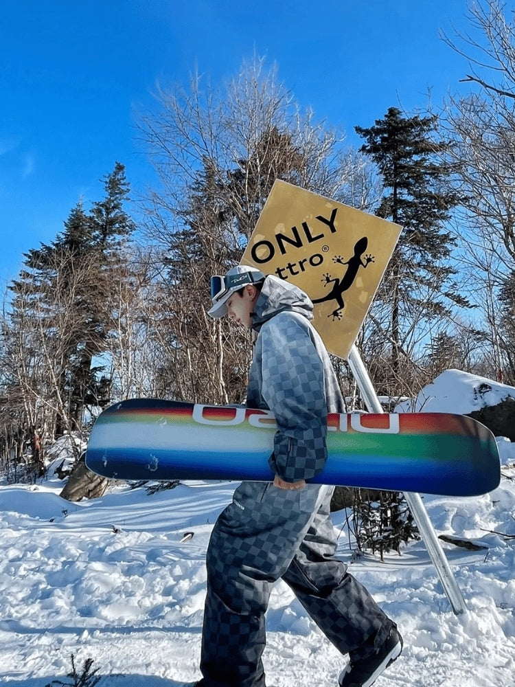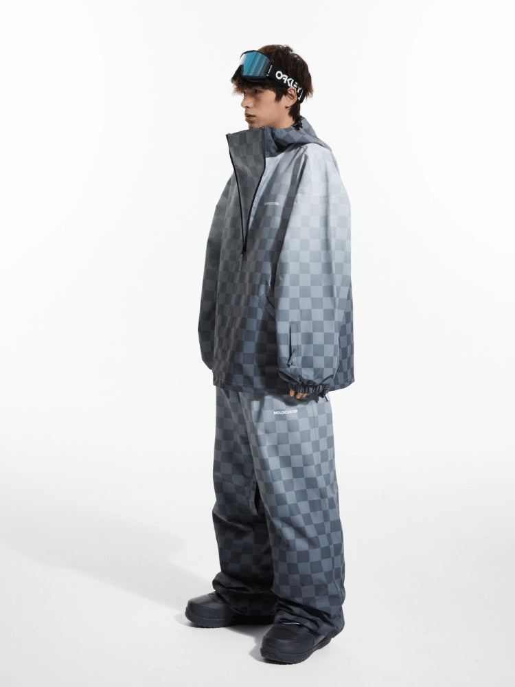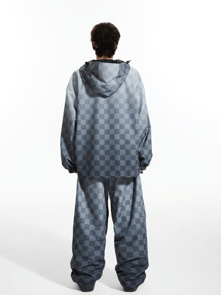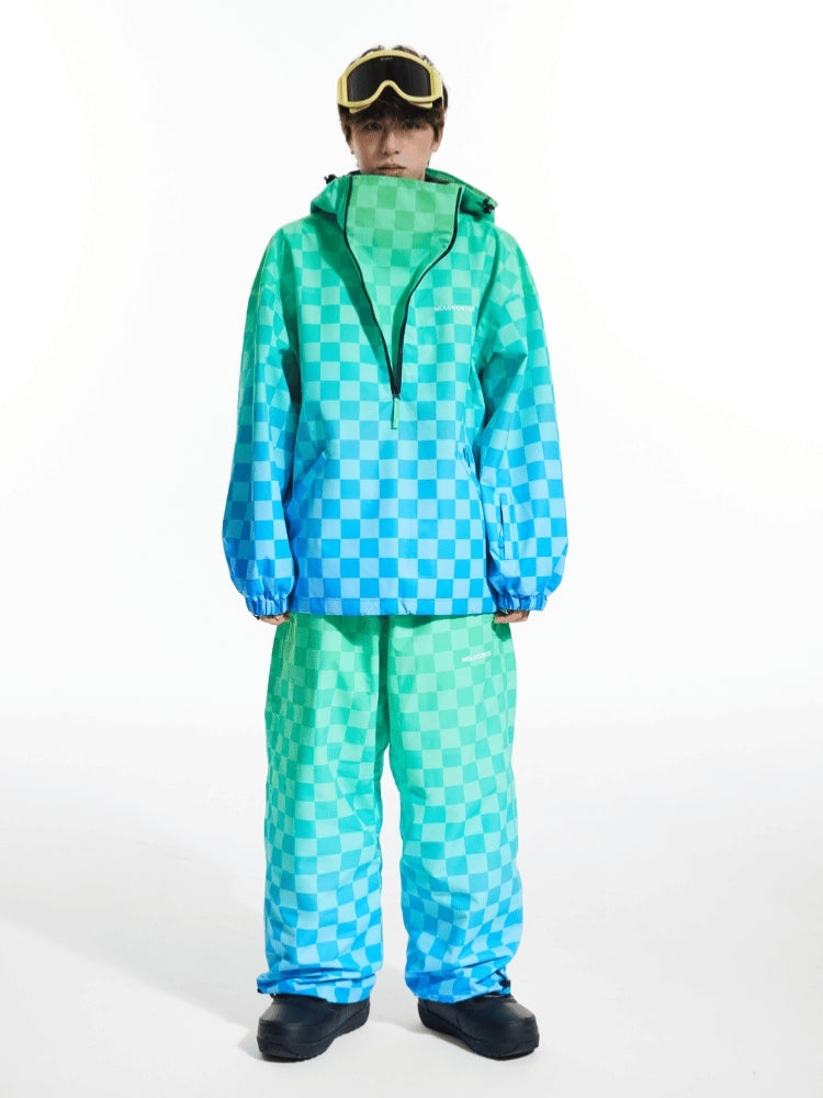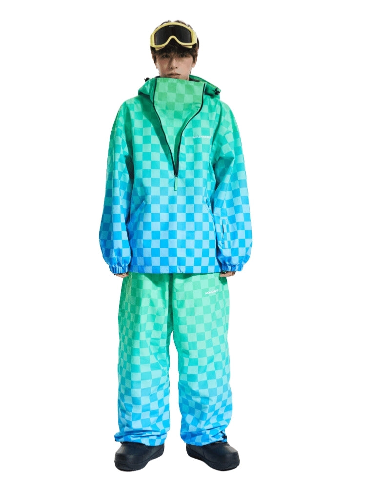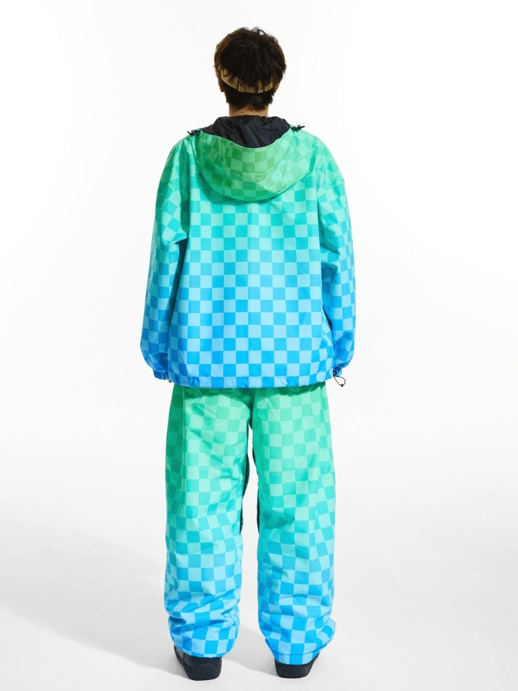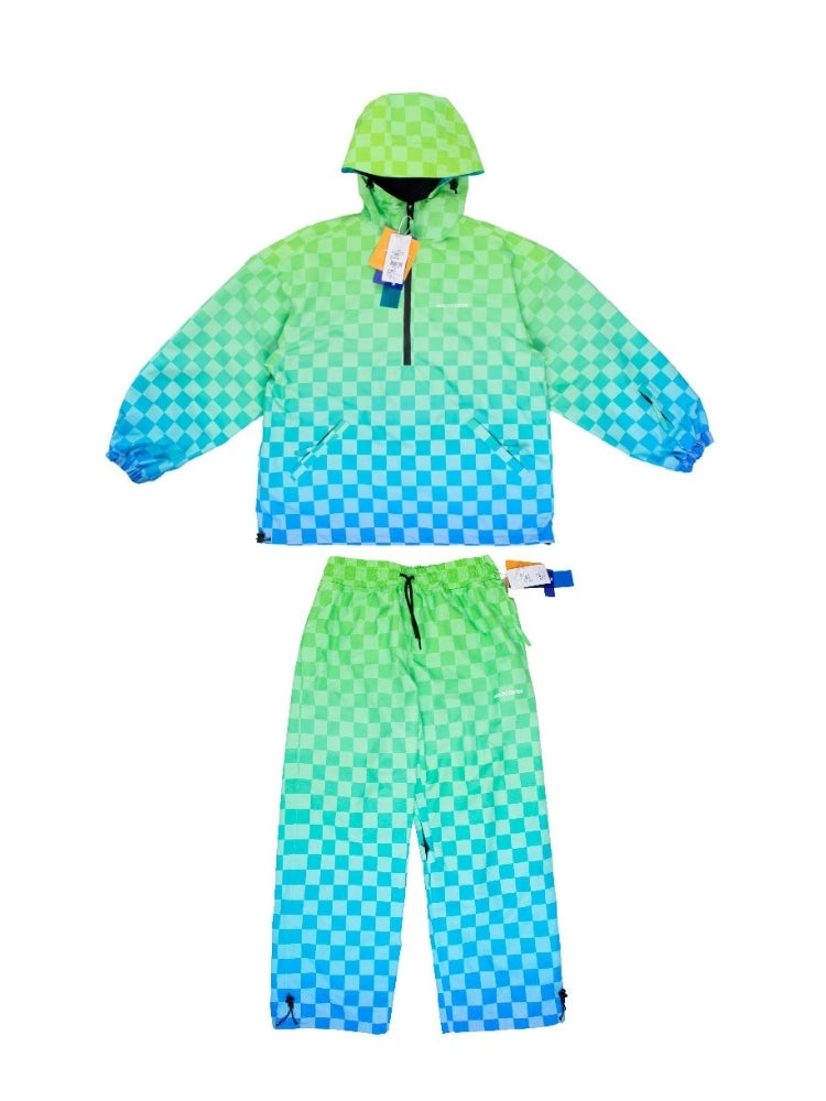 XwXwSeui Men Women 3L Gradient Grid Hooded Ski Suits