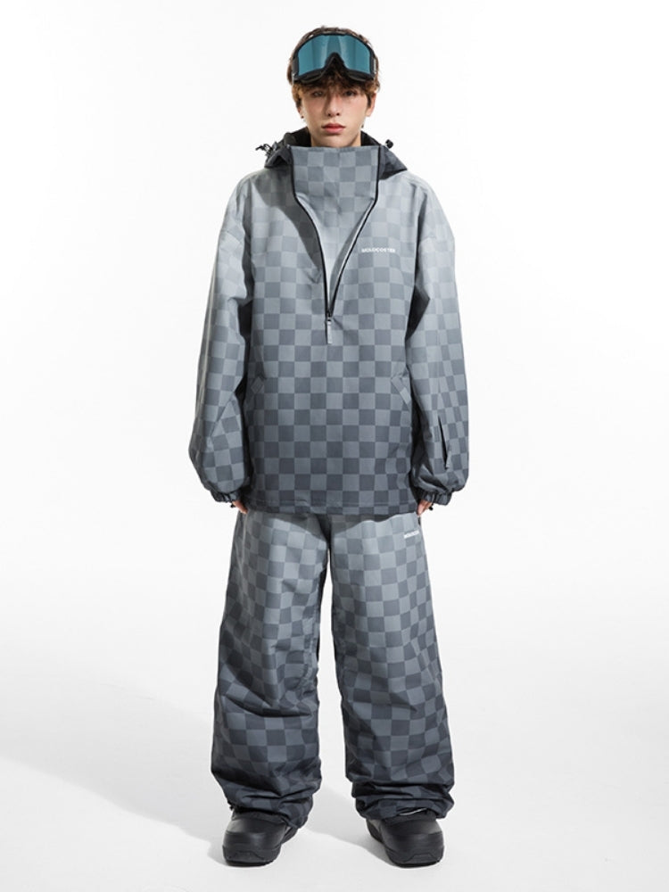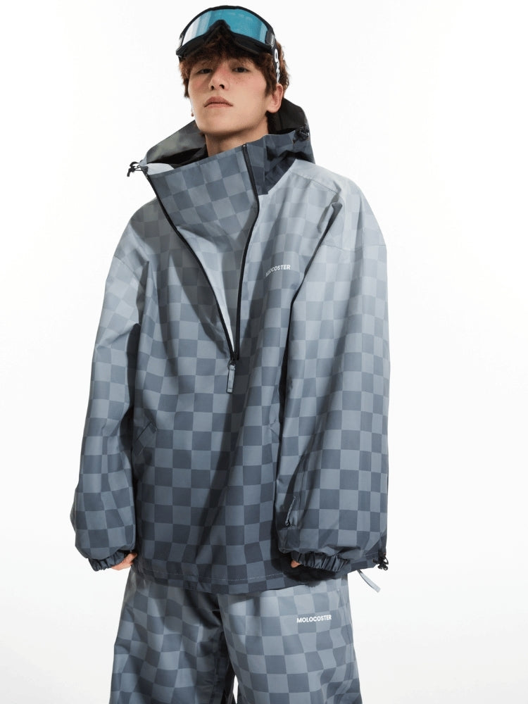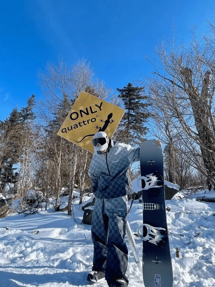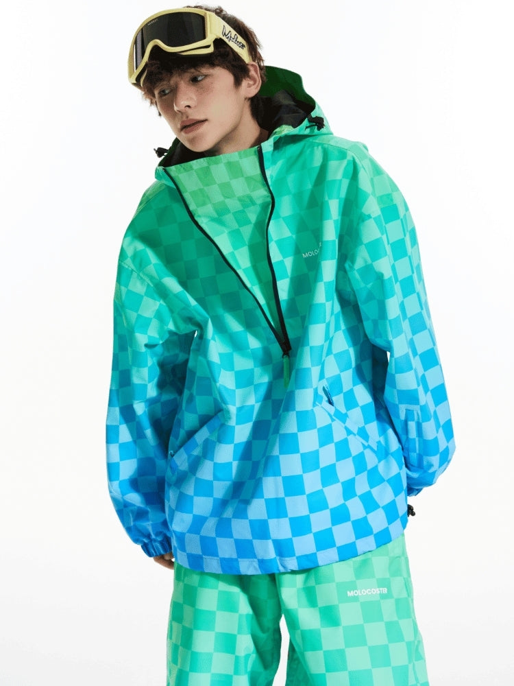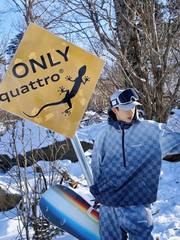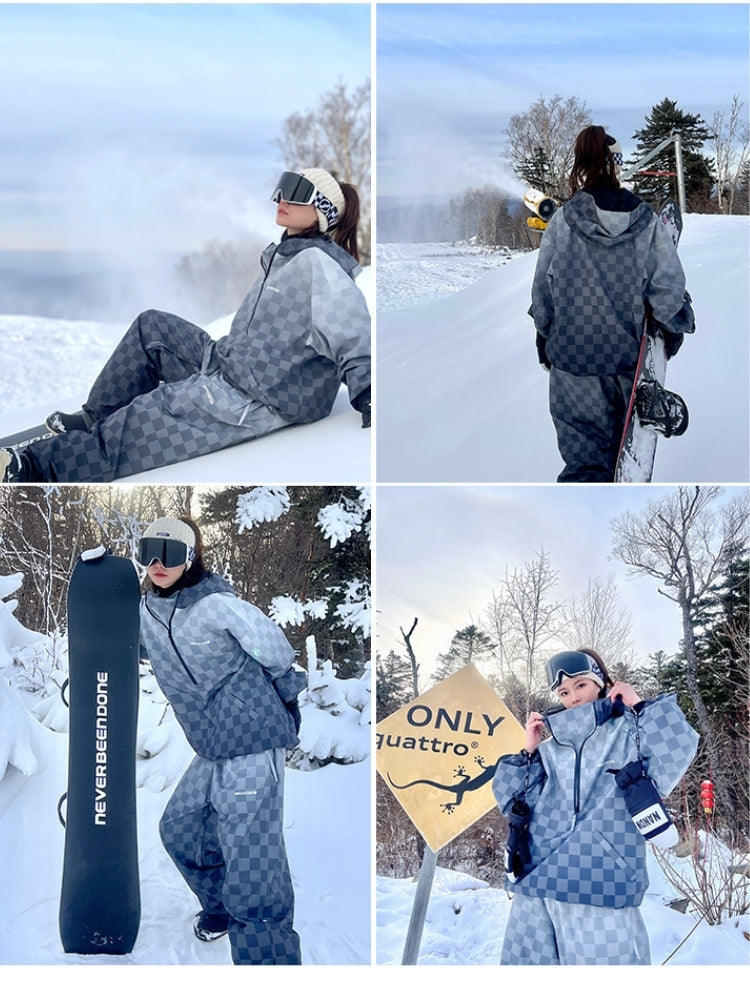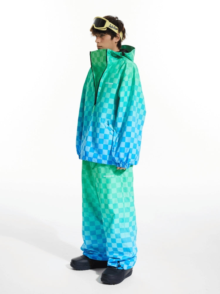XwXwSeui Men Women 3L Gradient Grid Hooded Ski Suits