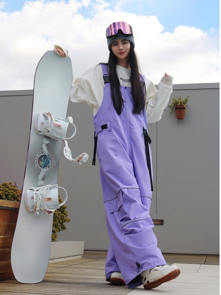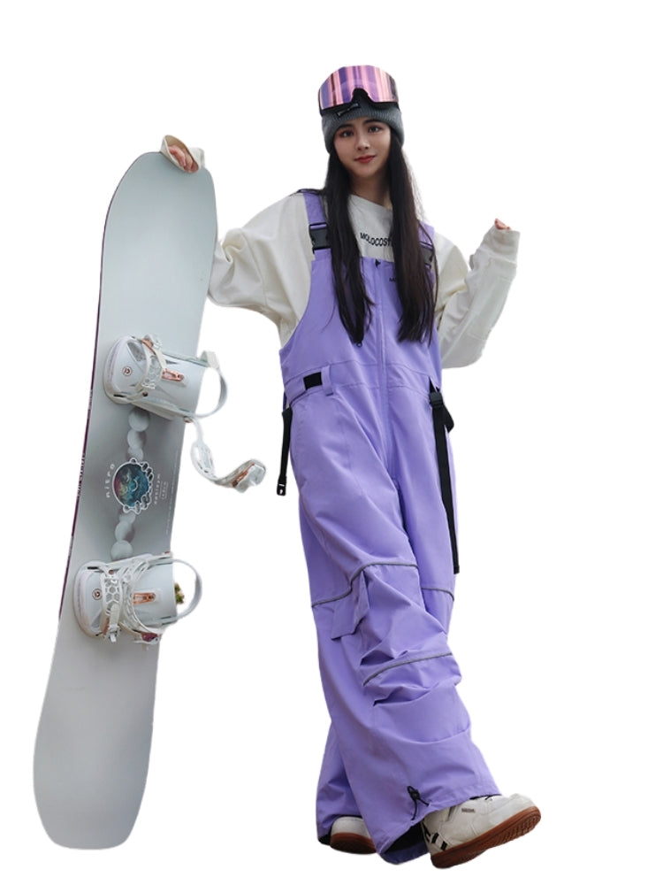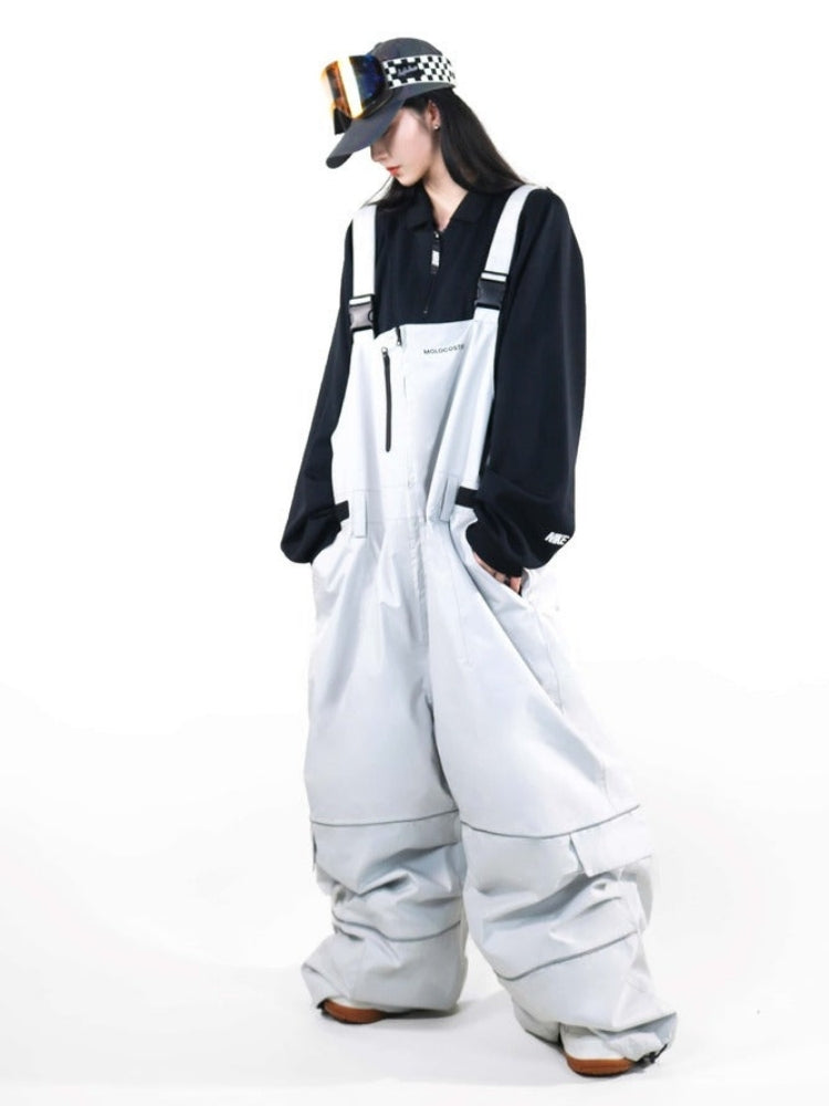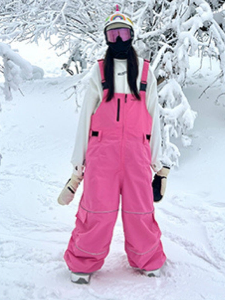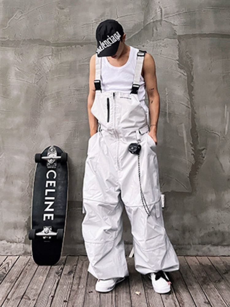 XwXwSeui Men Women Fleeced Reflective Baggy Snow Bibs