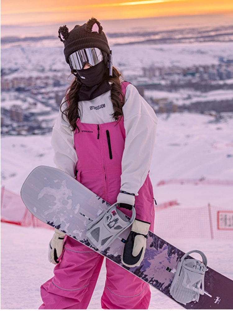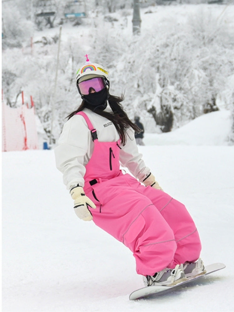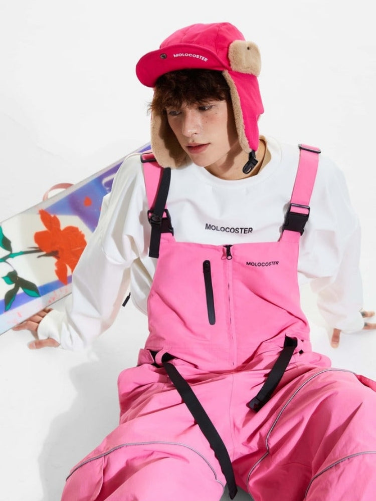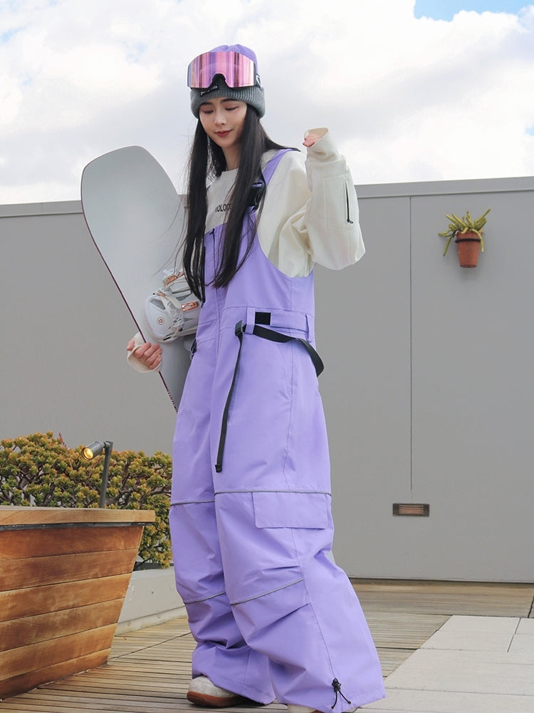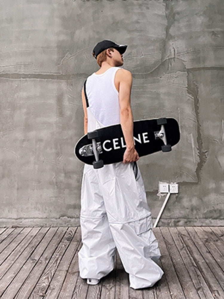XwXwSeui Men Women Fleeced Reflective Baggy Snow Bibs