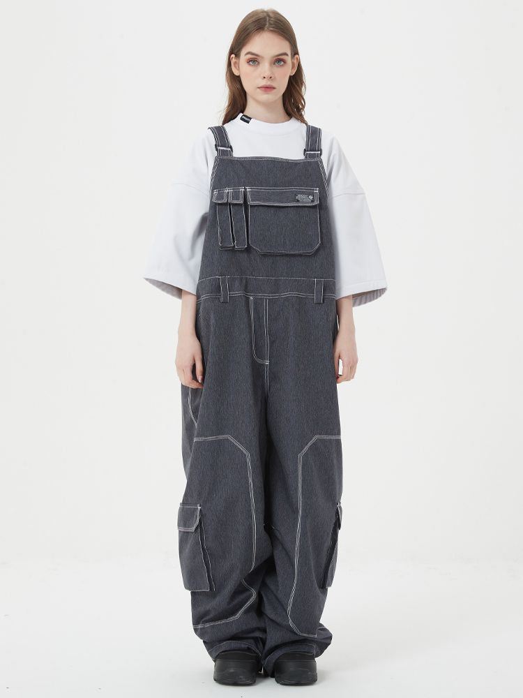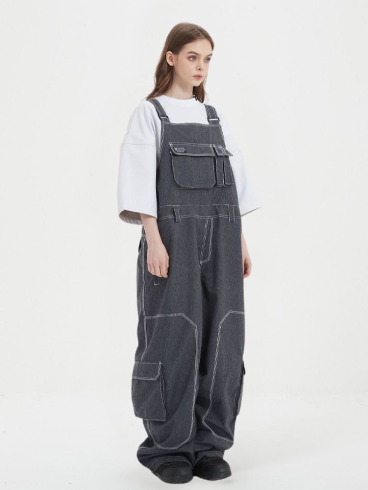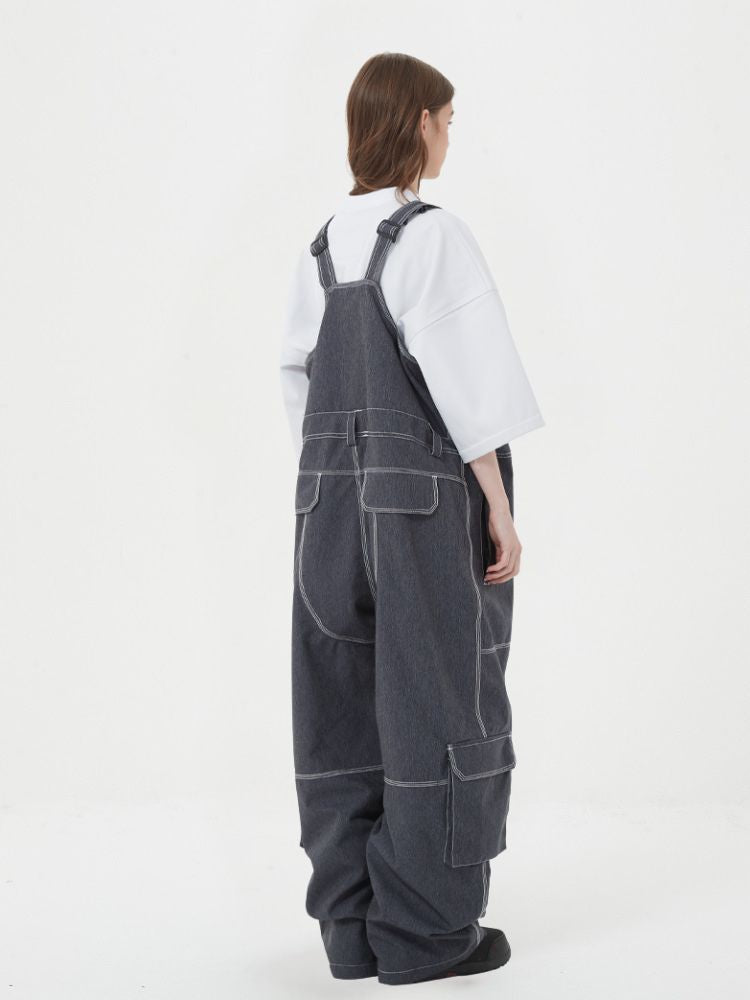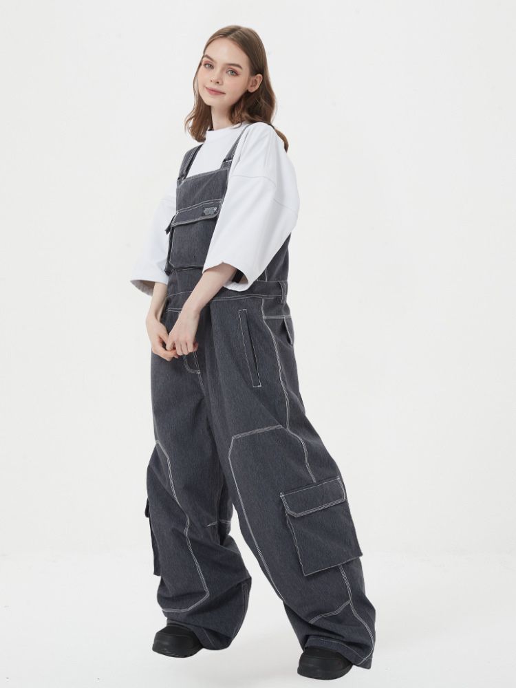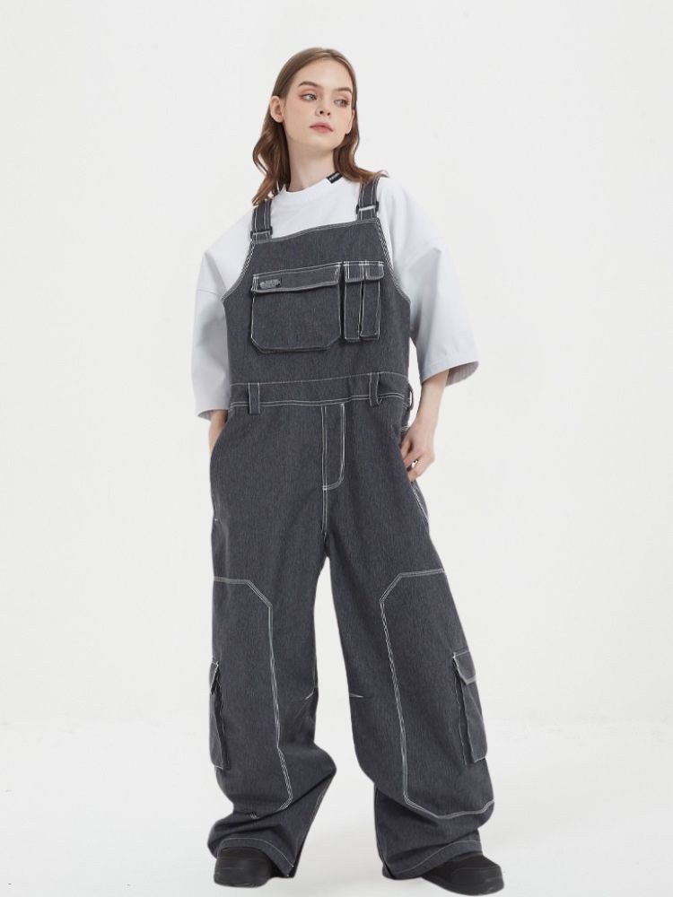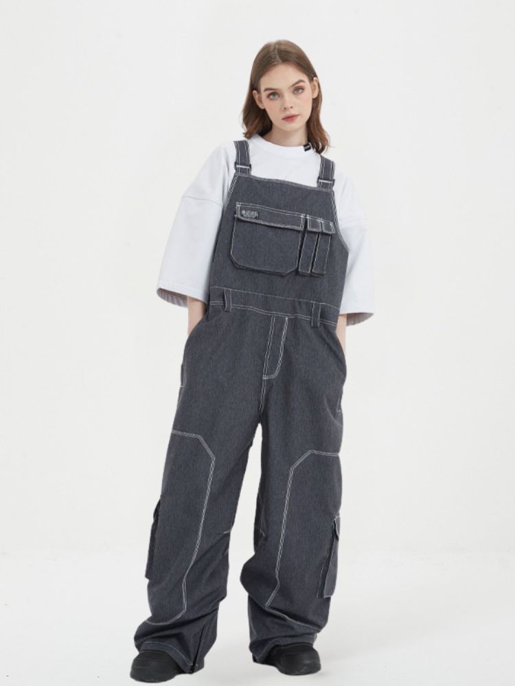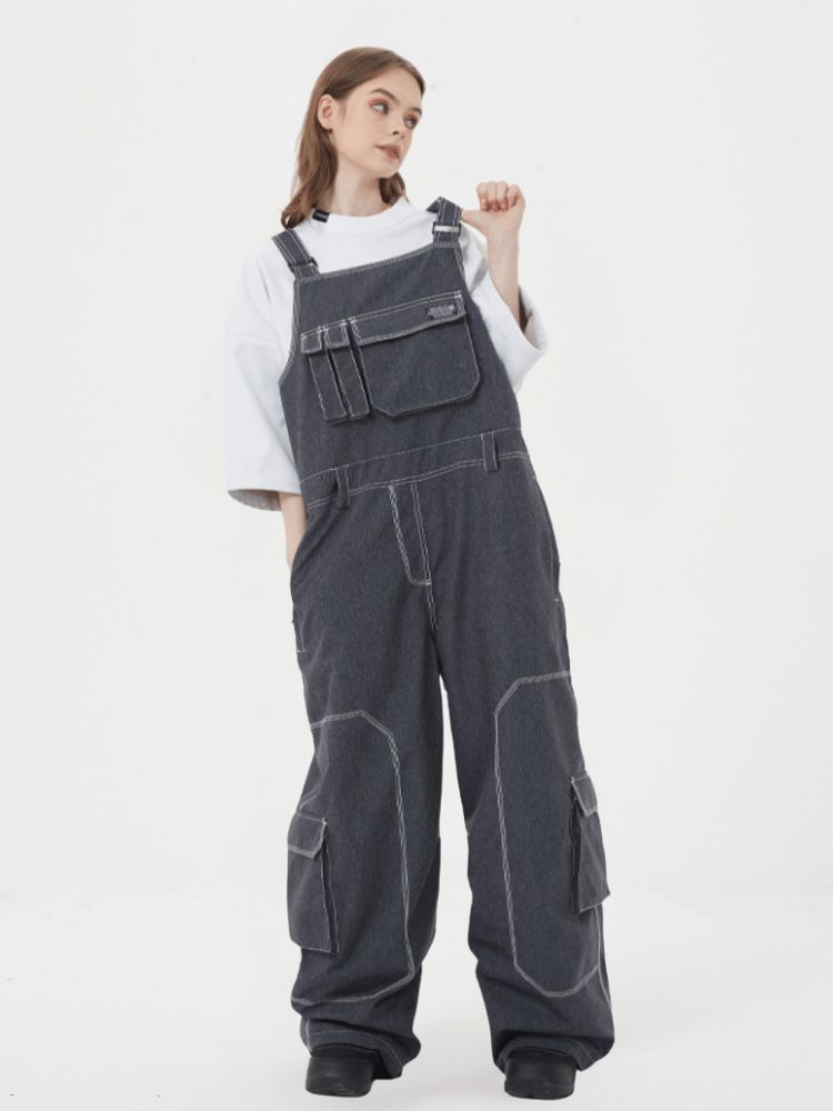 XwXwSeui Men Women Cowboy Loose Demin Snow Bibs