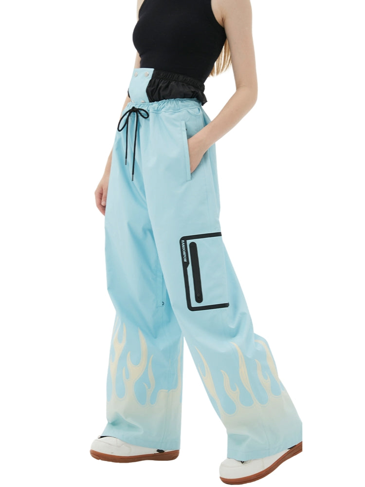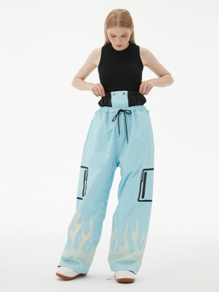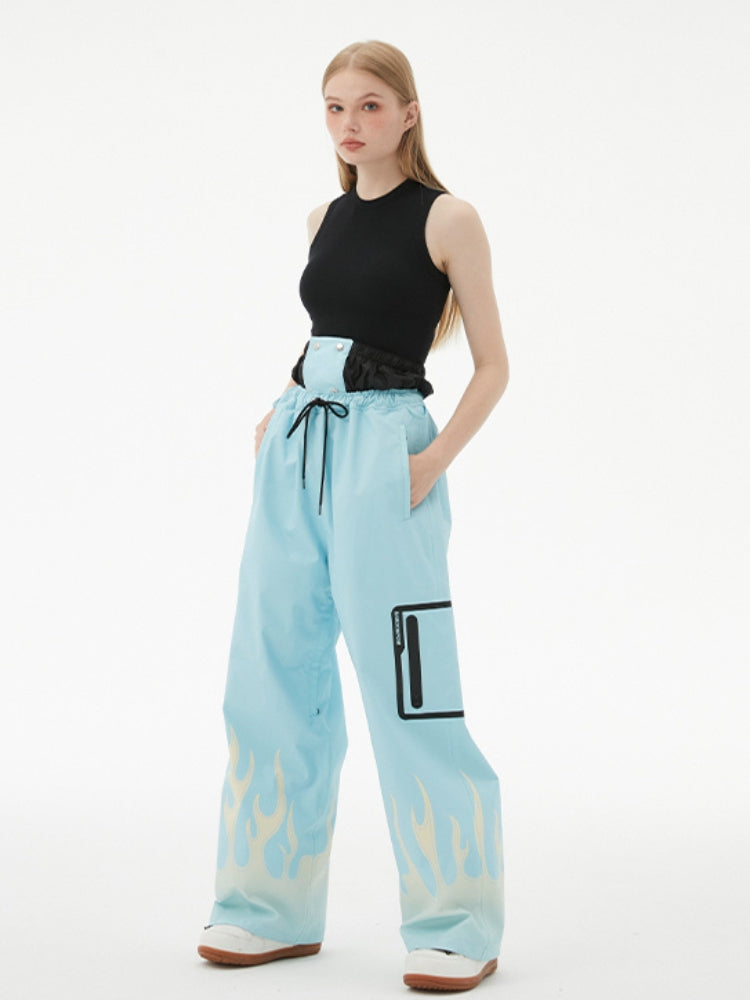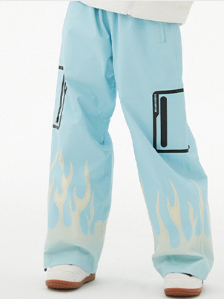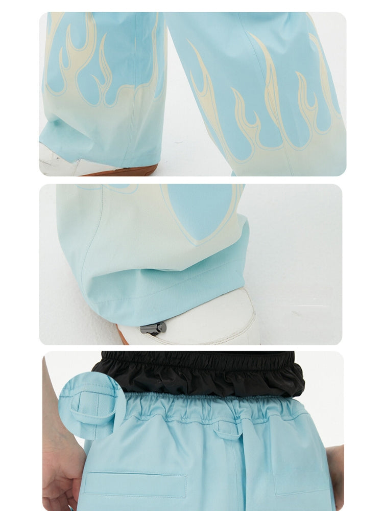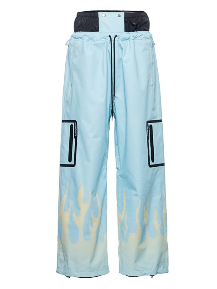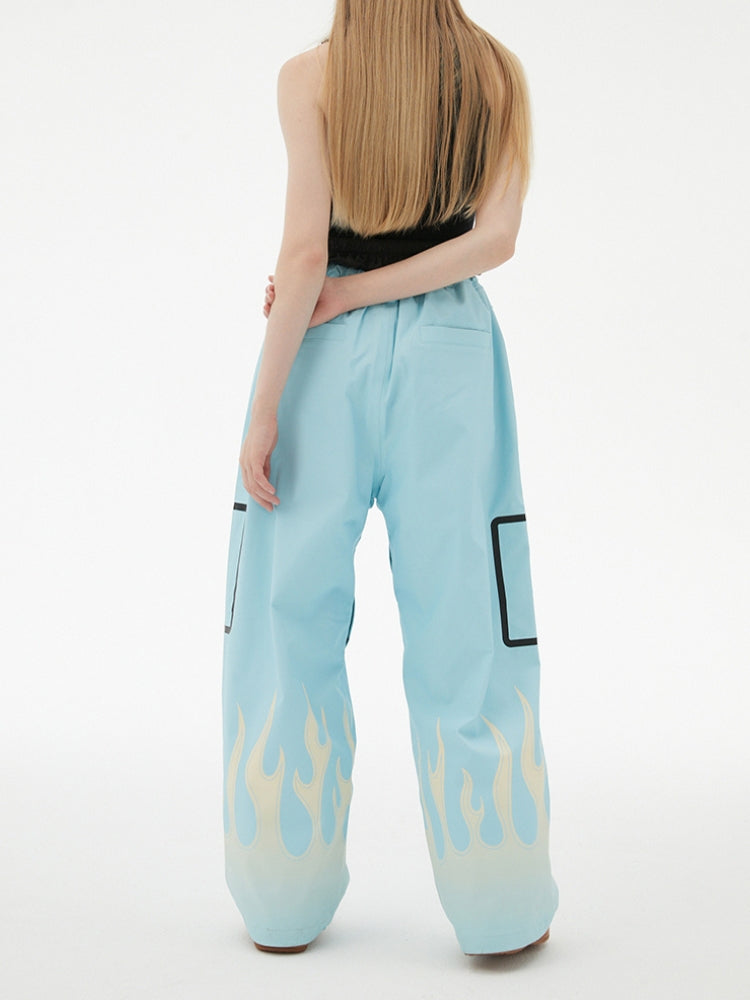 XwXwSeui Men Women Flame Print Flieece Ski Pants
