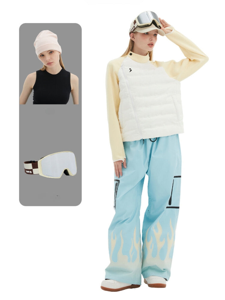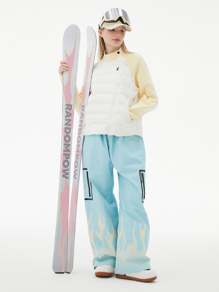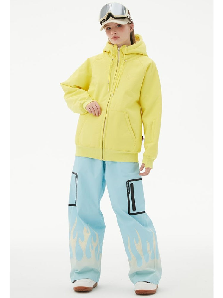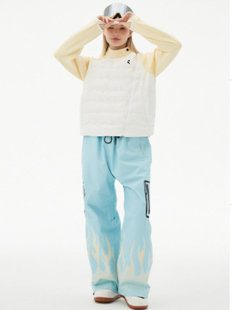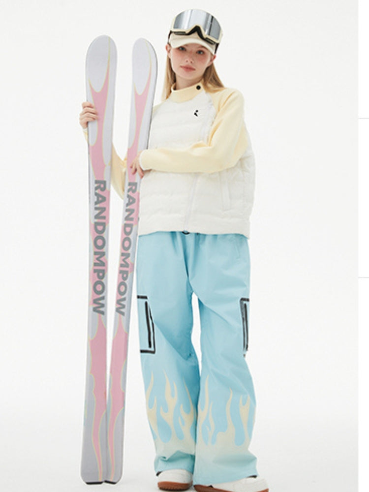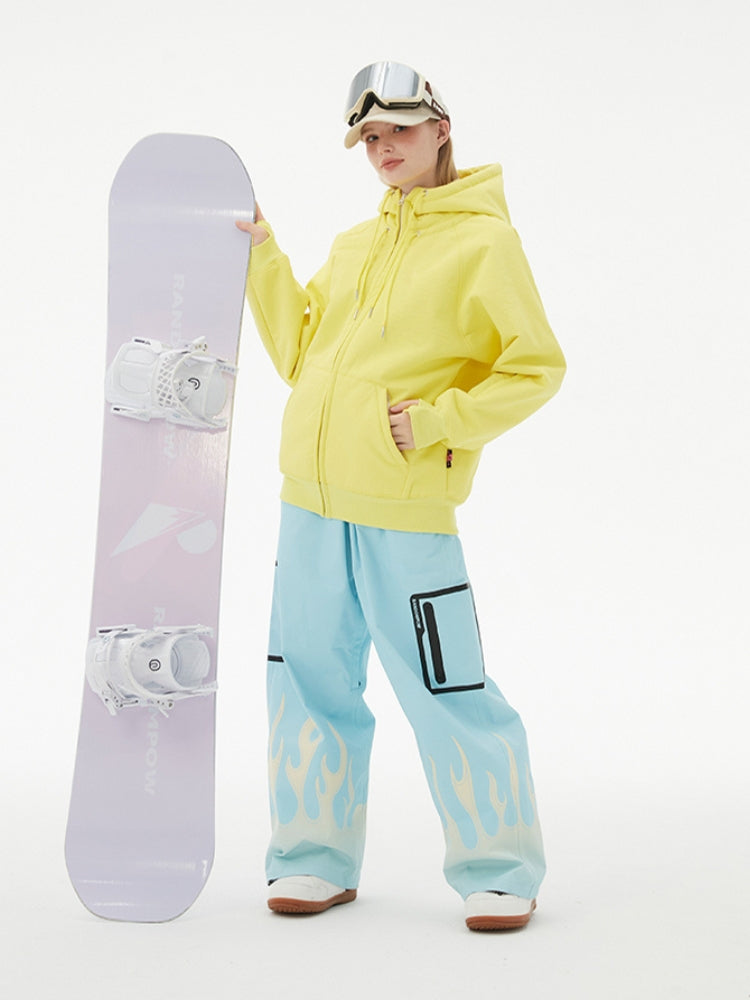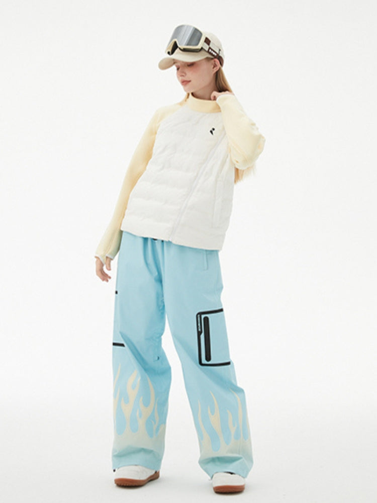 XwXwSeui Men Women Flame Print Flieece Ski Pants