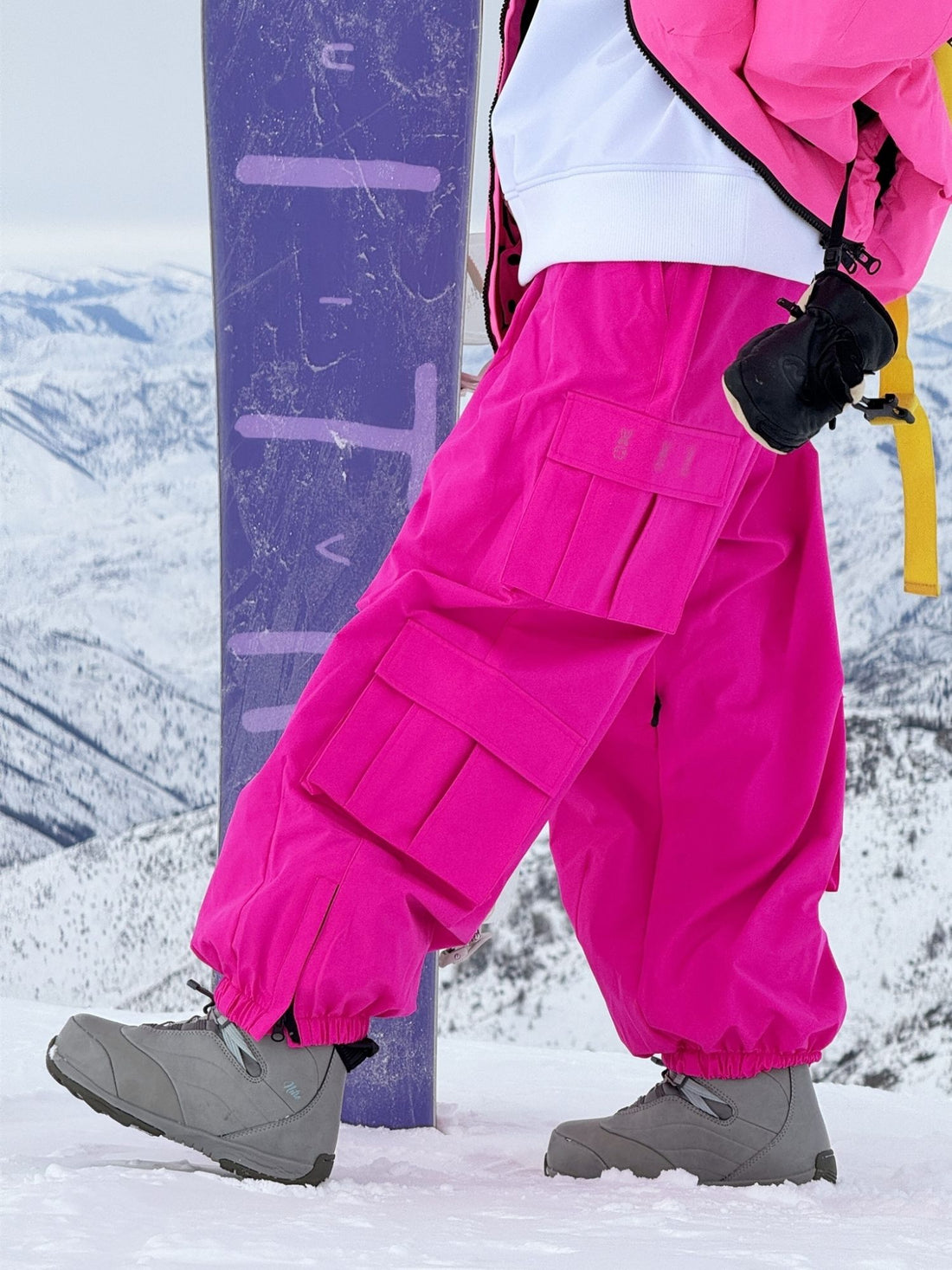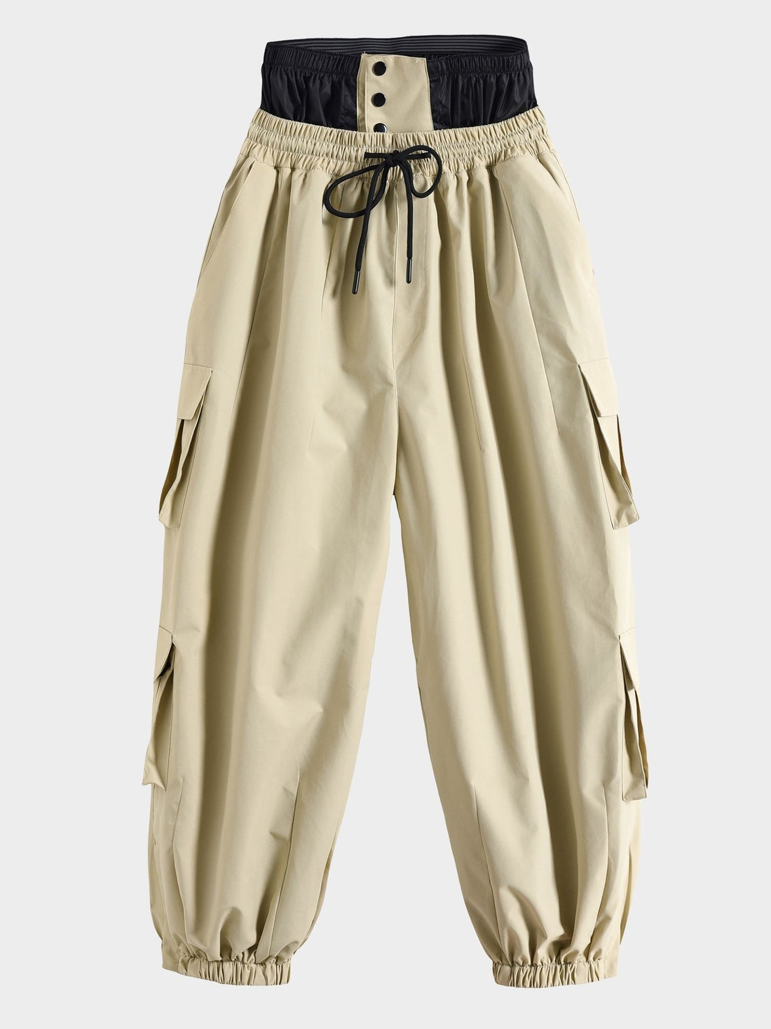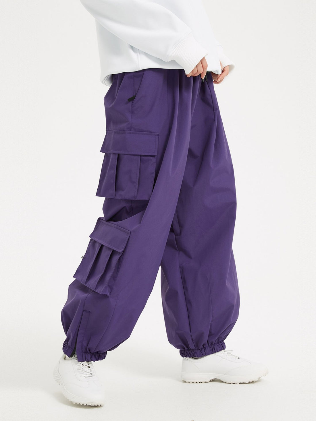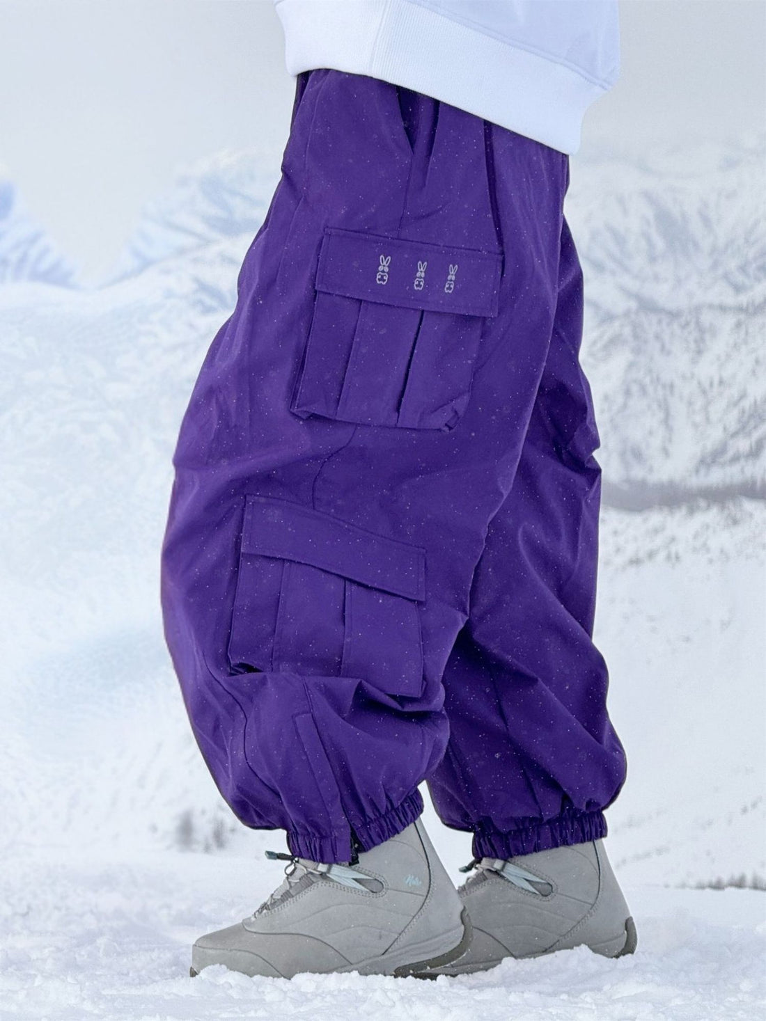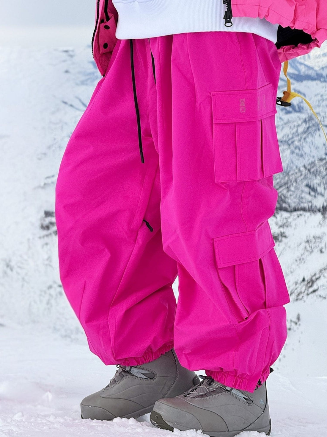 XwXwSeui Men Women Fleeced 3L Loose Waterproof Solid Fashion Snowboard Trousers