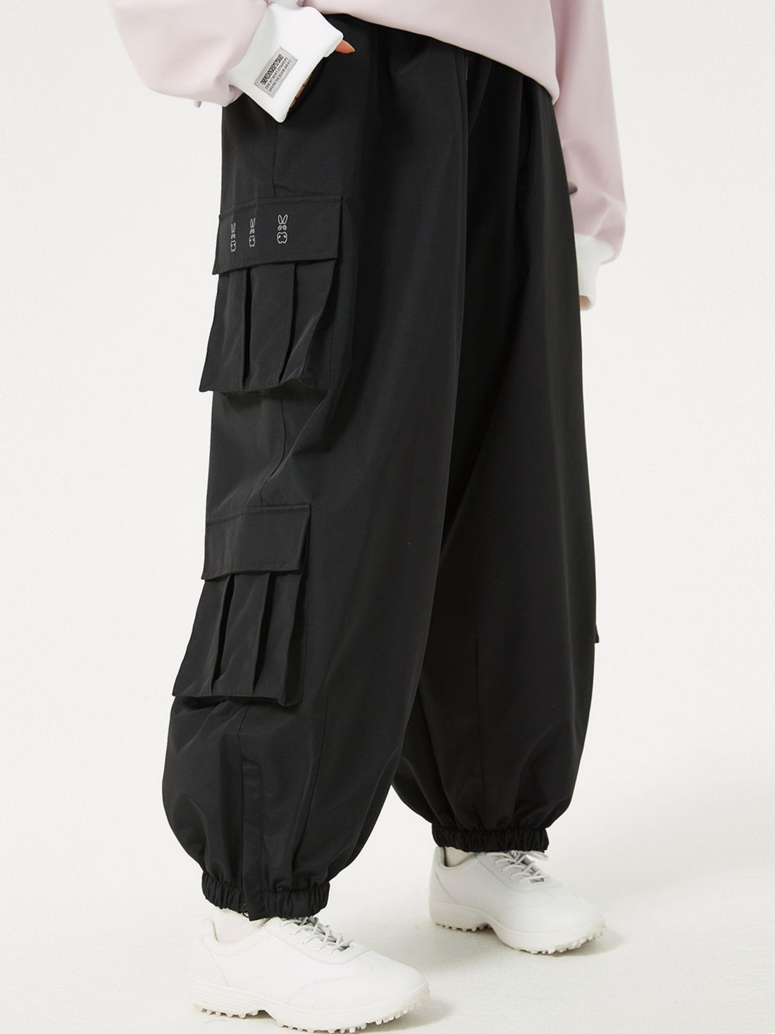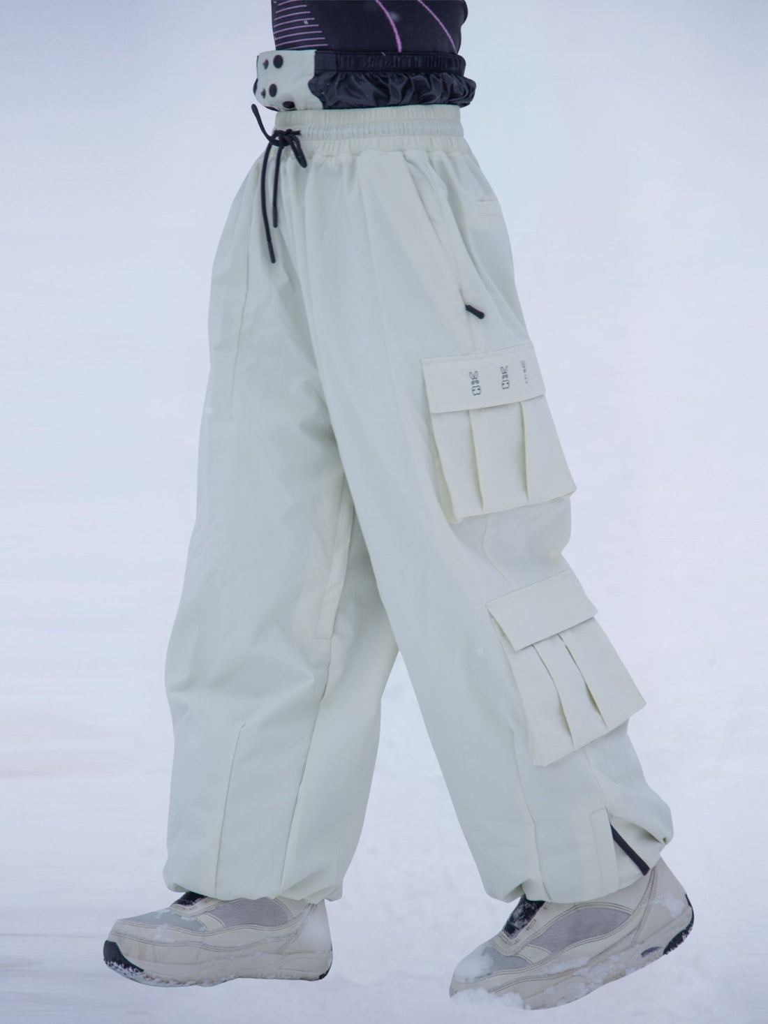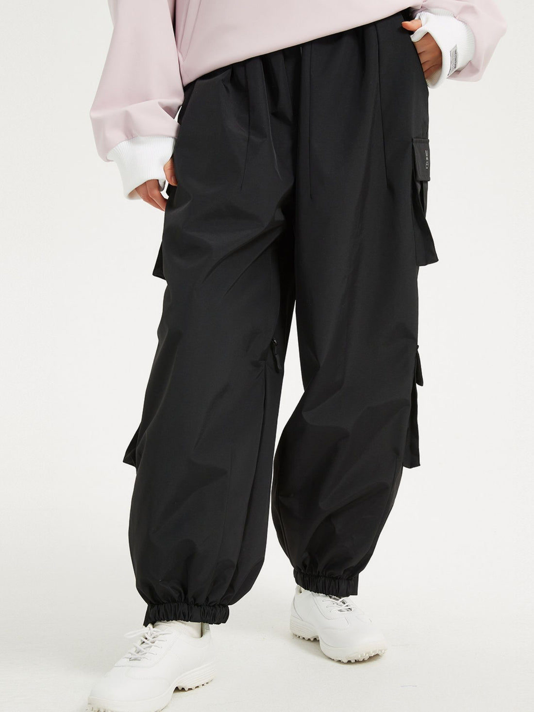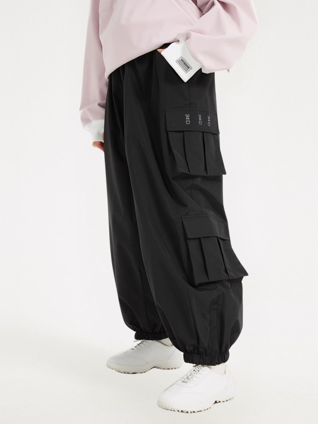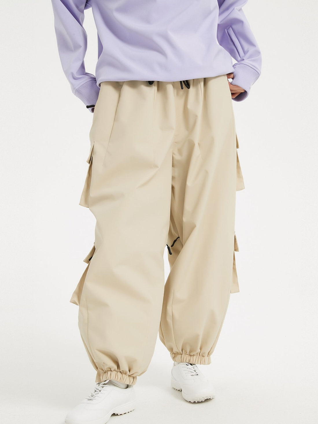 XwXwSeui Men Women Fleeced 3L Loose Waterproof Solid Fashion Snowboard Trousers