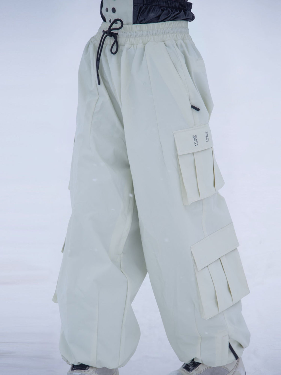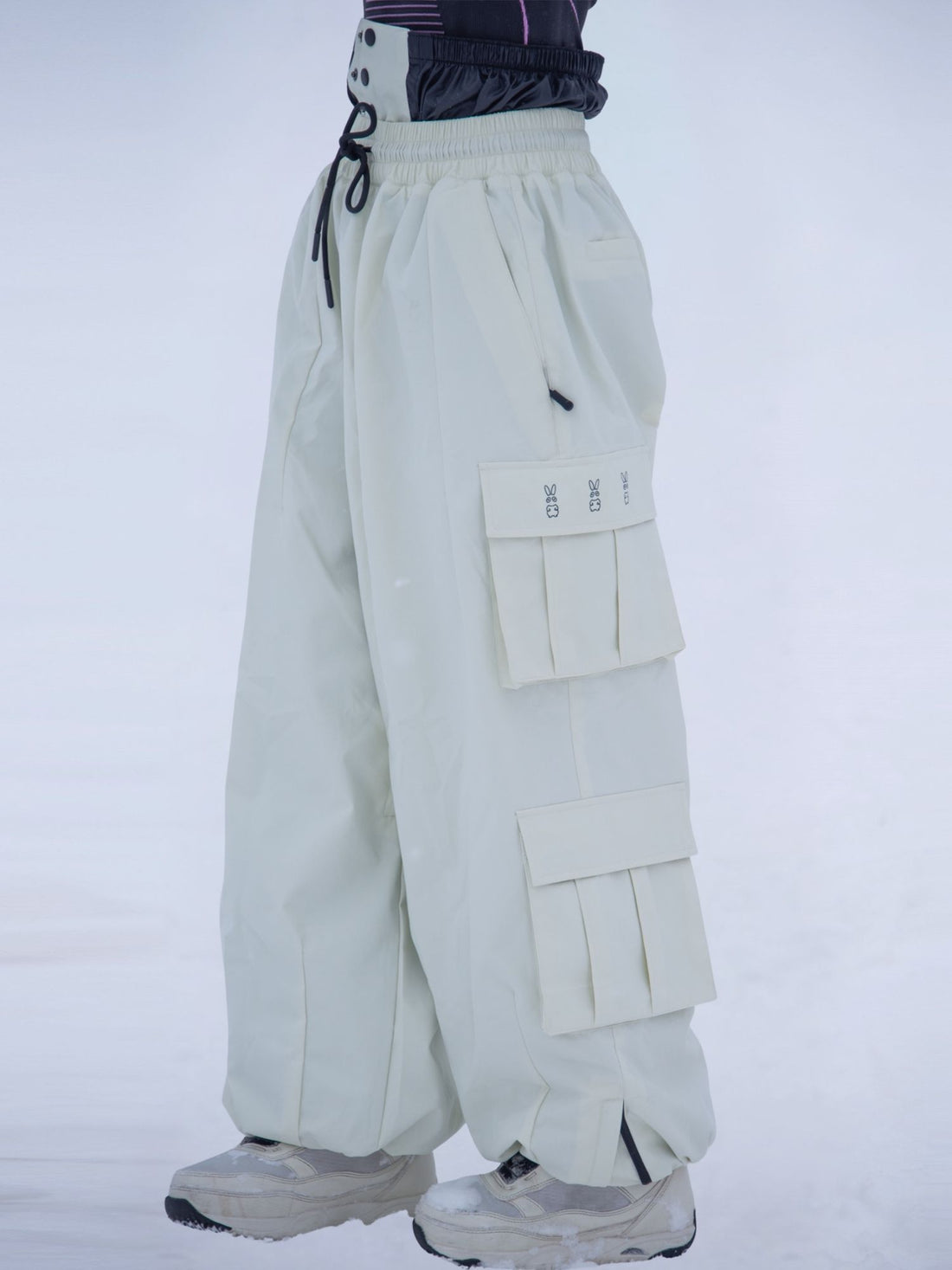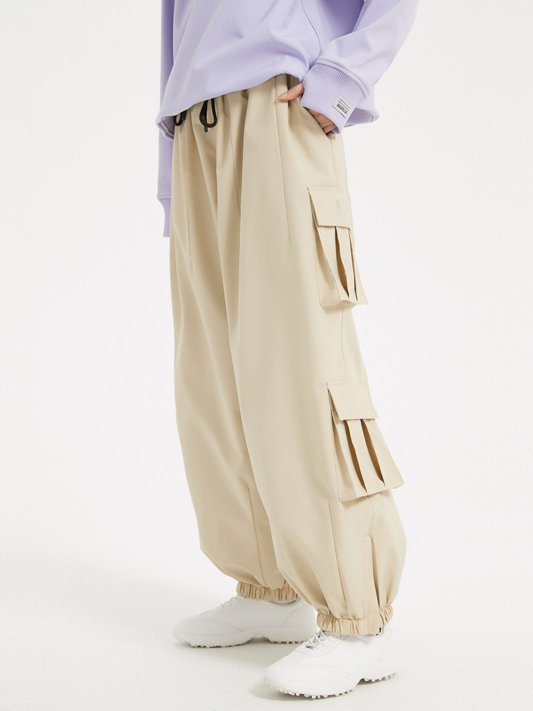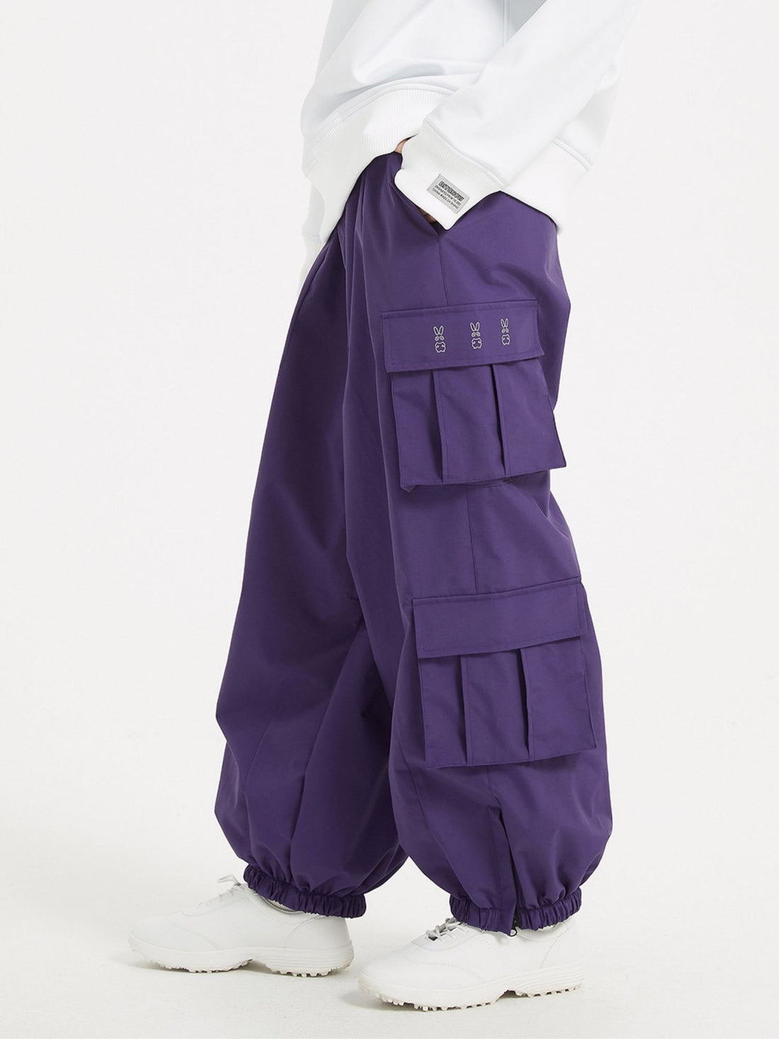 XwXwSeui Men Women Fleeced 3L Loose Waterproof Solid Fashion Snowboard Trousers