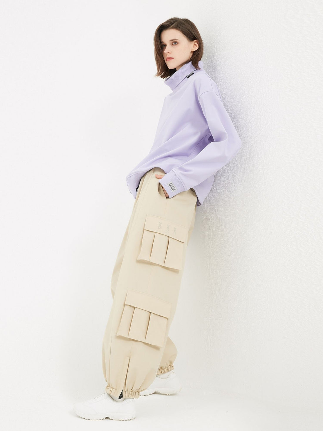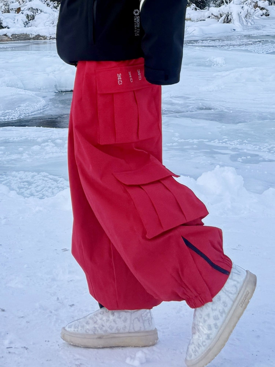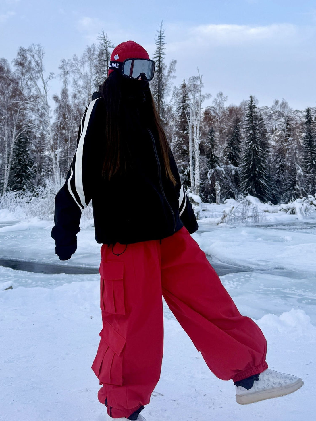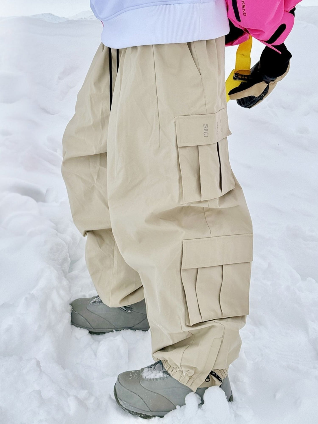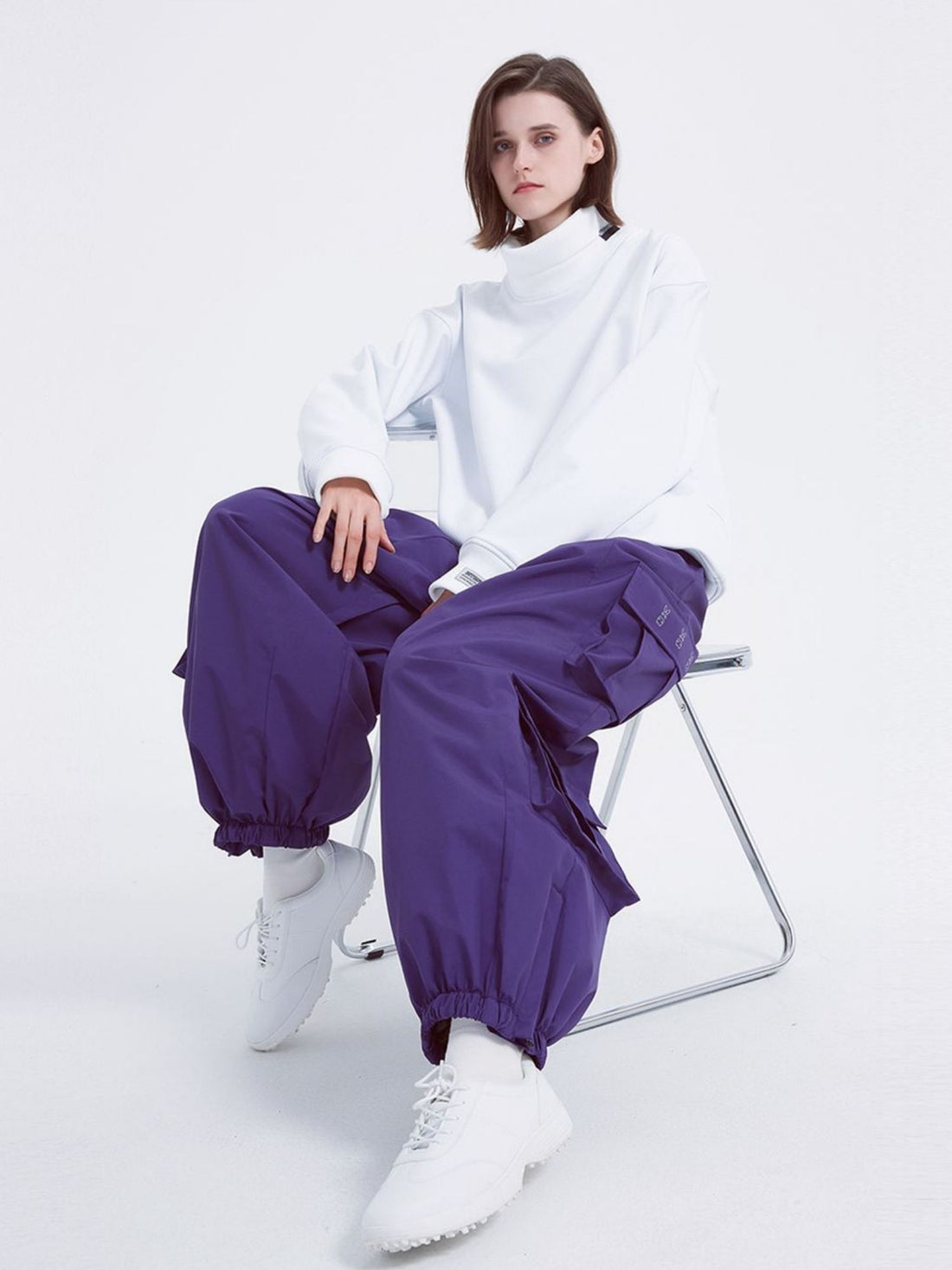 XwXwSeui Men Women Fleeced 3L Loose Waterproof Solid Fashion Snowboard Trousers
