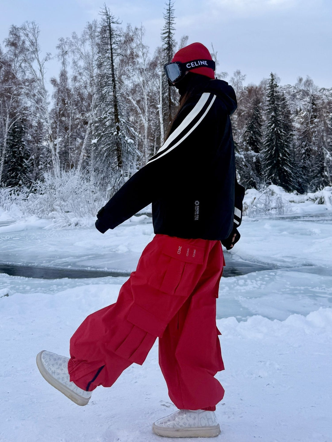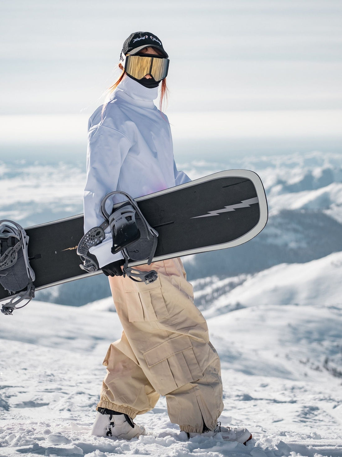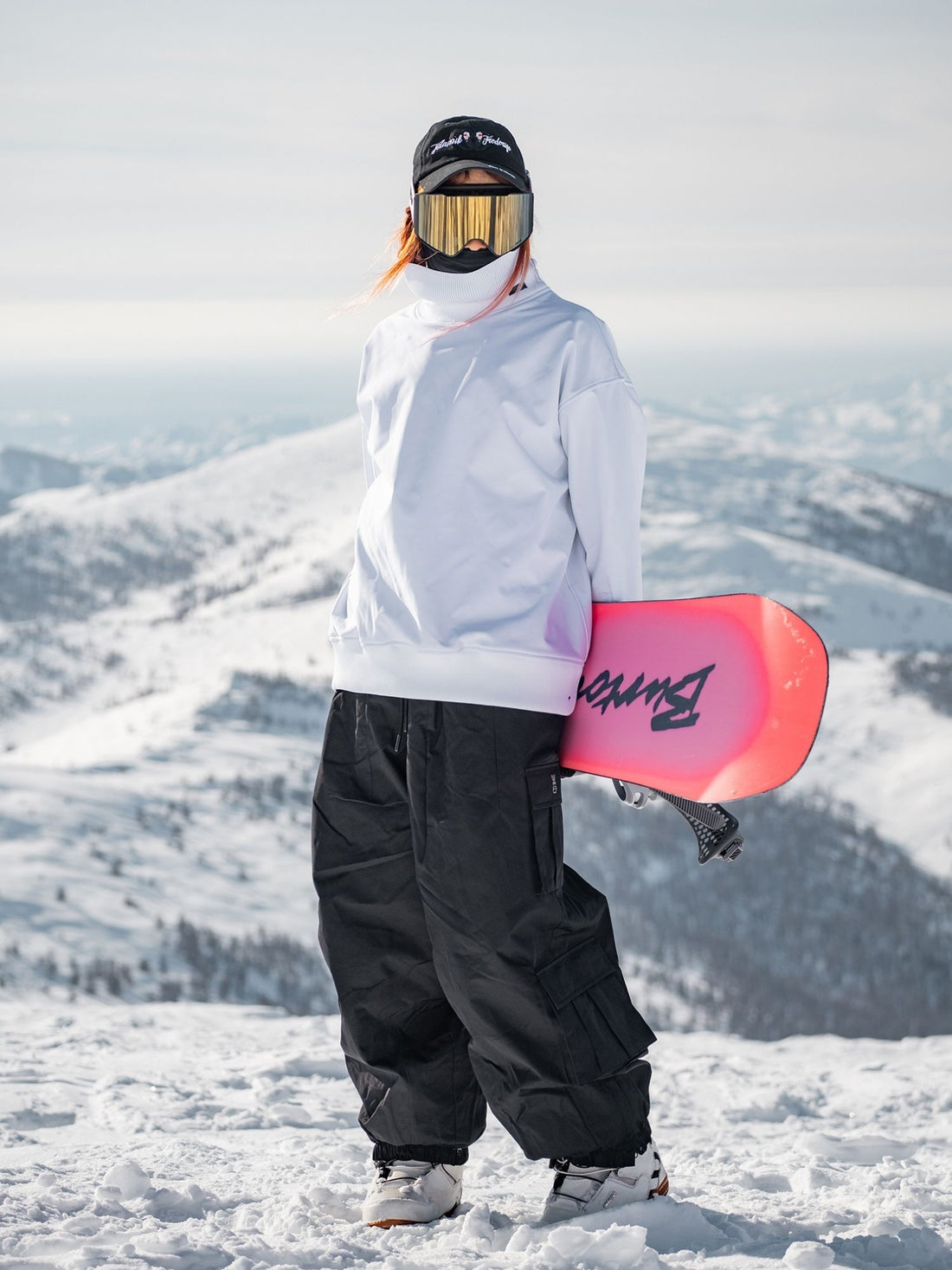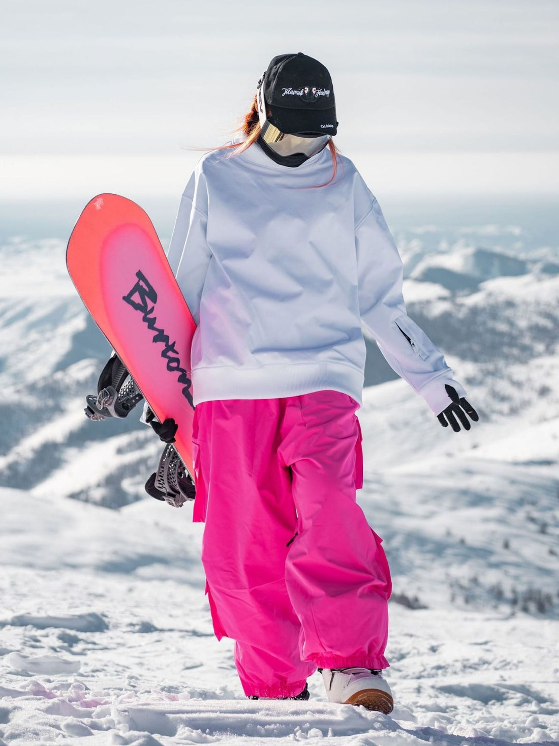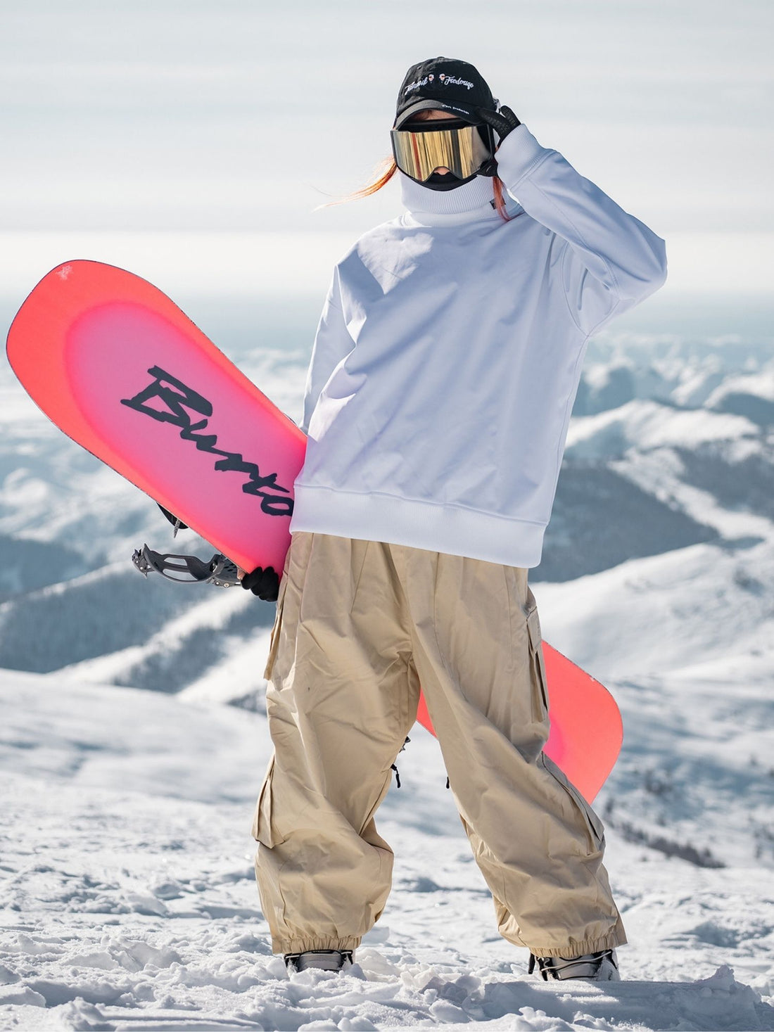 XwXwSeui Men Women Fleeced 3L Loose Waterproof Solid Fashion Snowboard Trousers