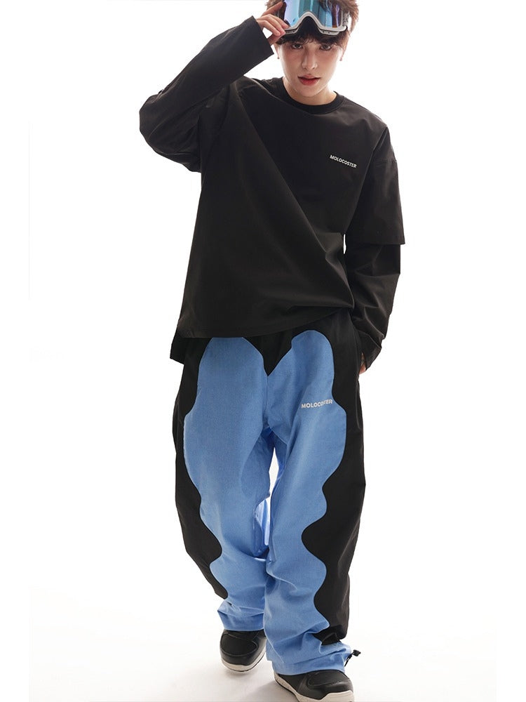 XwXwSeui Men Women Jeans Colorblock Baggy Ski Pants