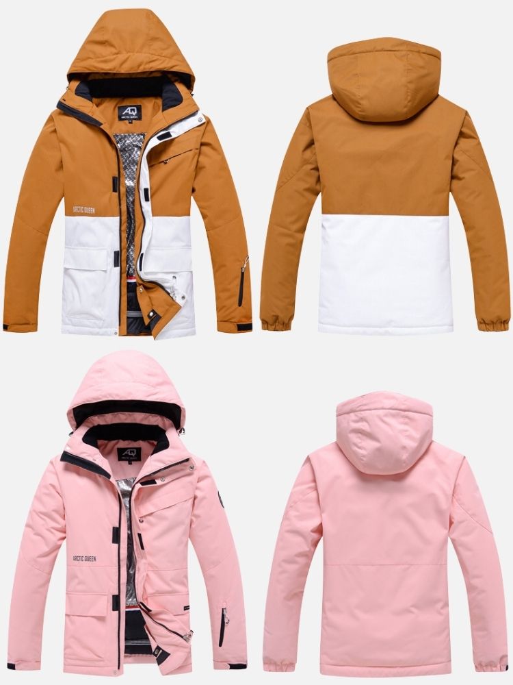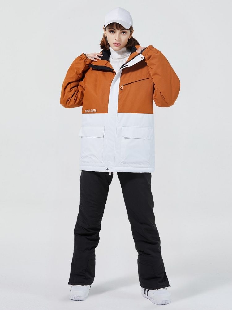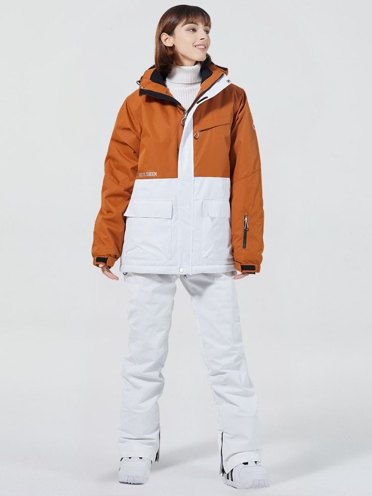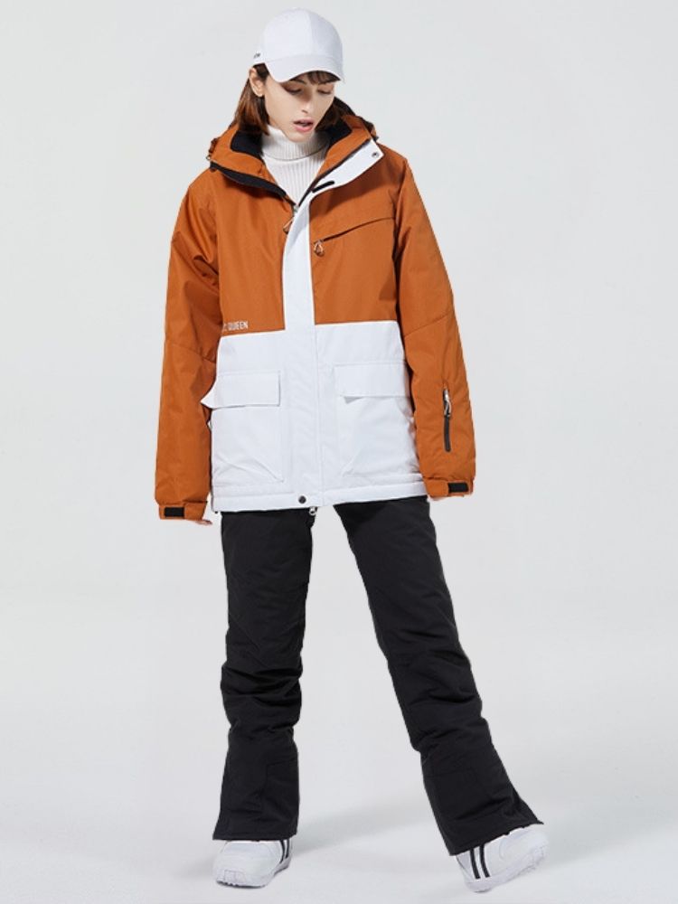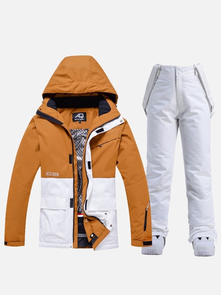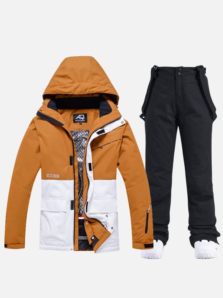 XwXwSeui Men Women Hooded Insulated Snow Suits-Brown Series