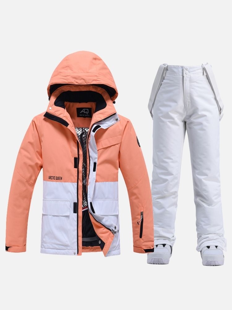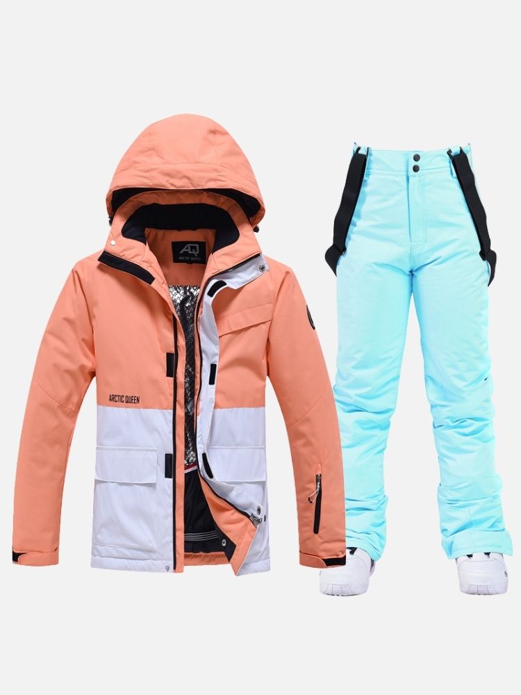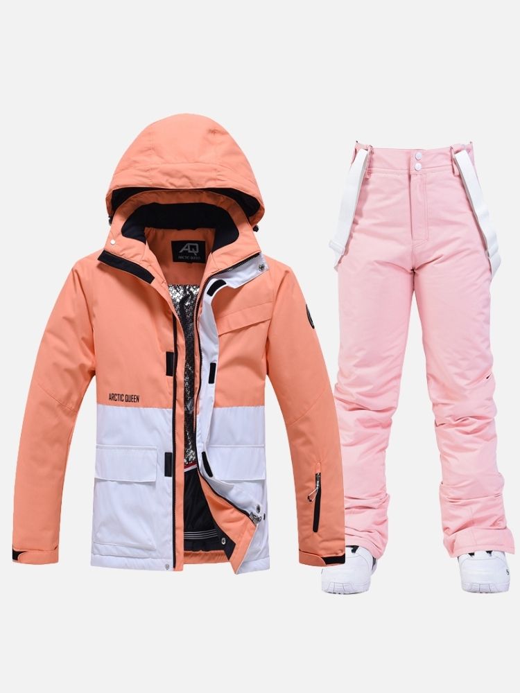 XwXwSeui Men Women Hooded Insulated Snow Suits-Orange Series