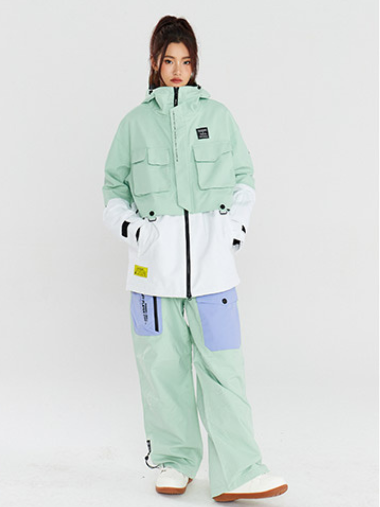 XwXwSeui Men Women Insulated Colorbloc Hood Snow Jacket