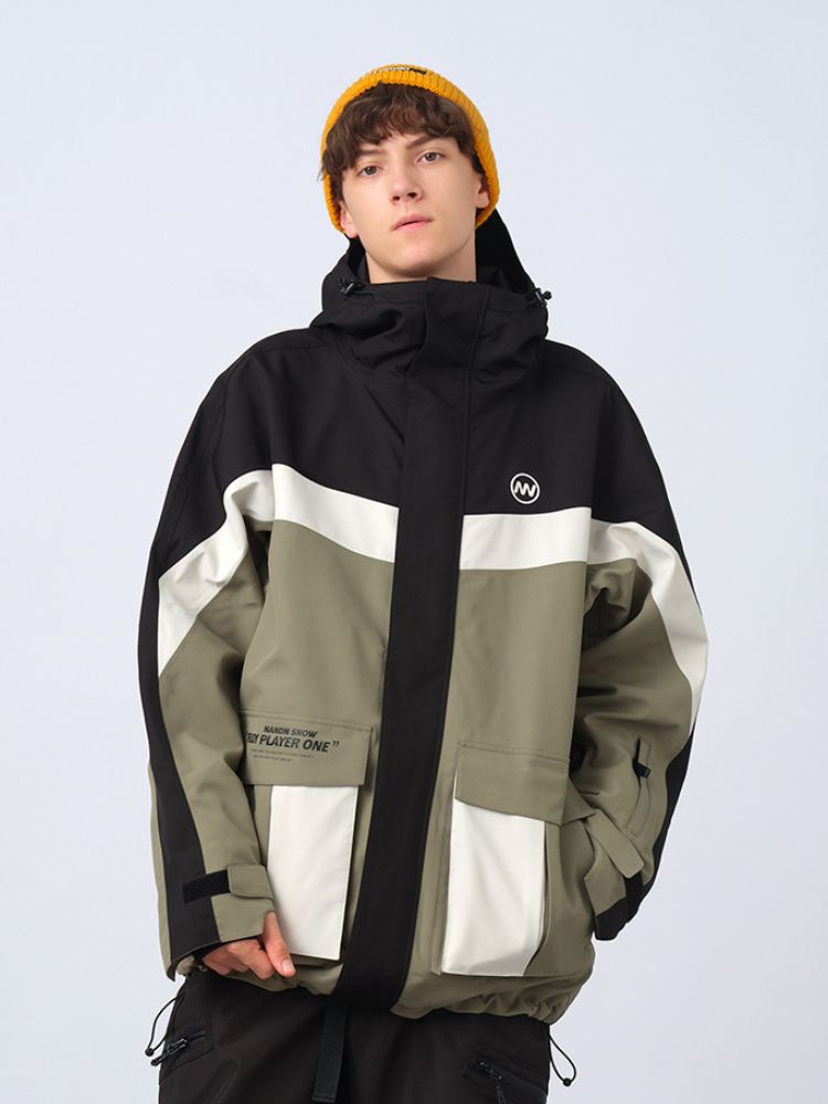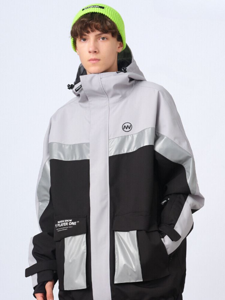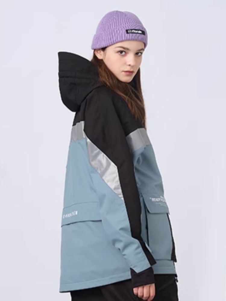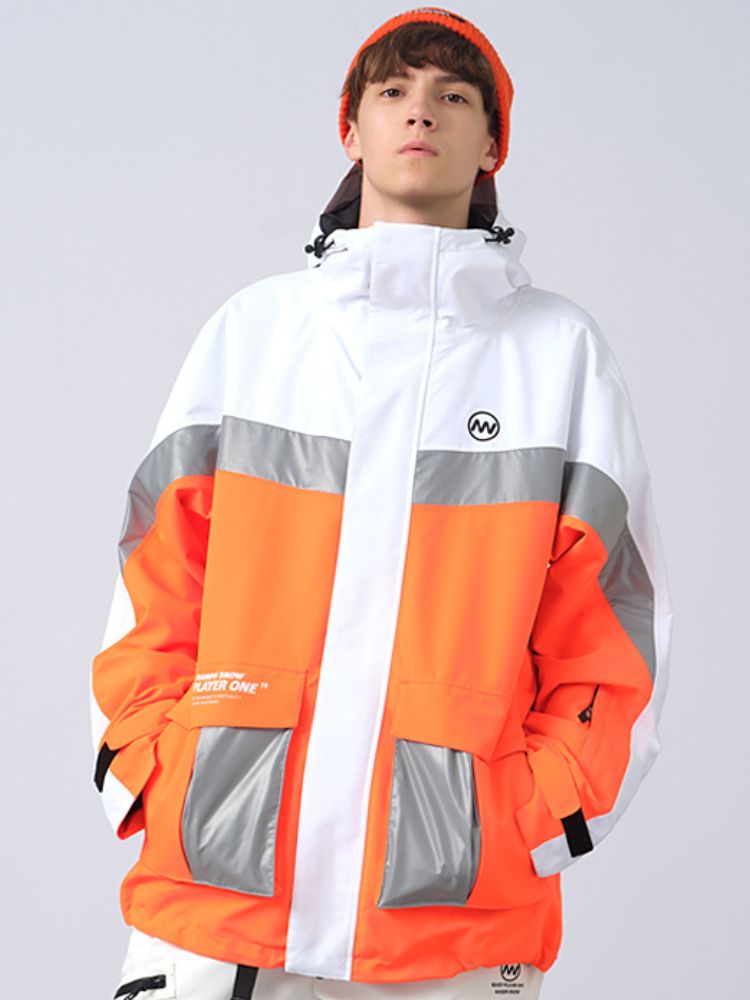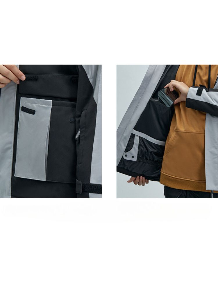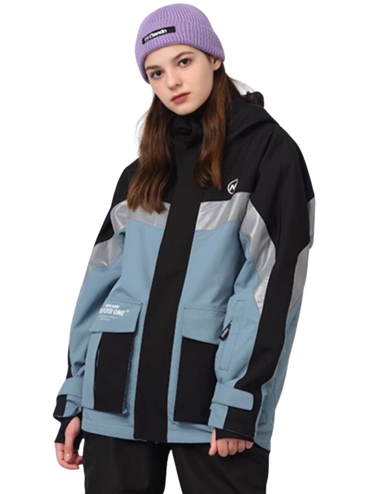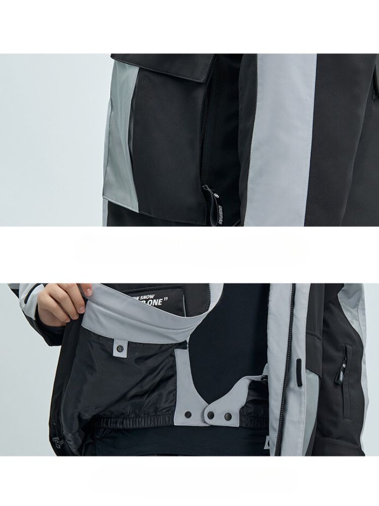 XwXwSeui Men Women Insulated Colorblock Hood Snow Jacket