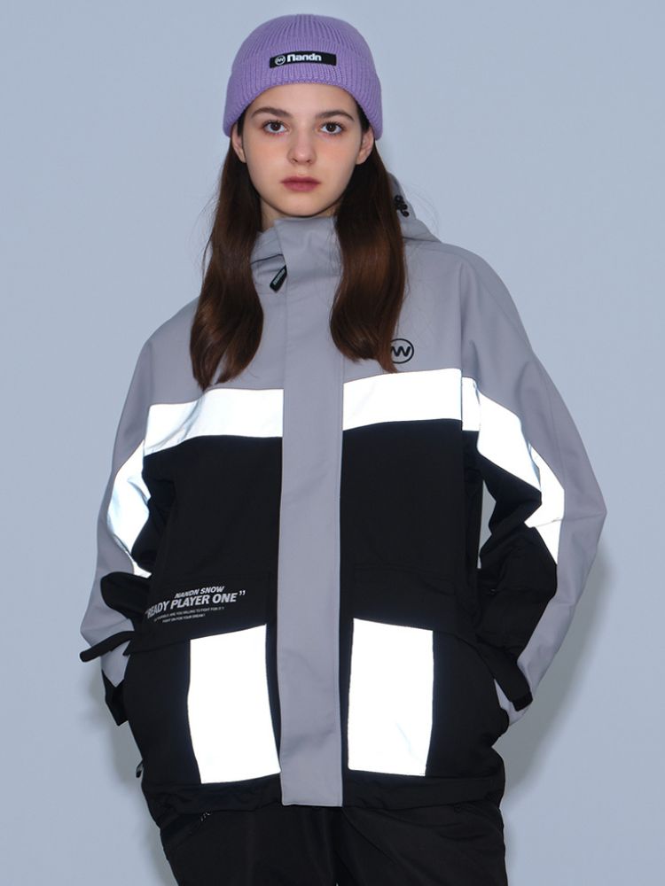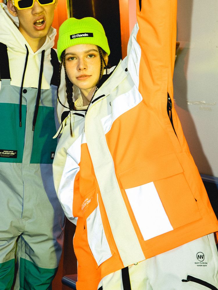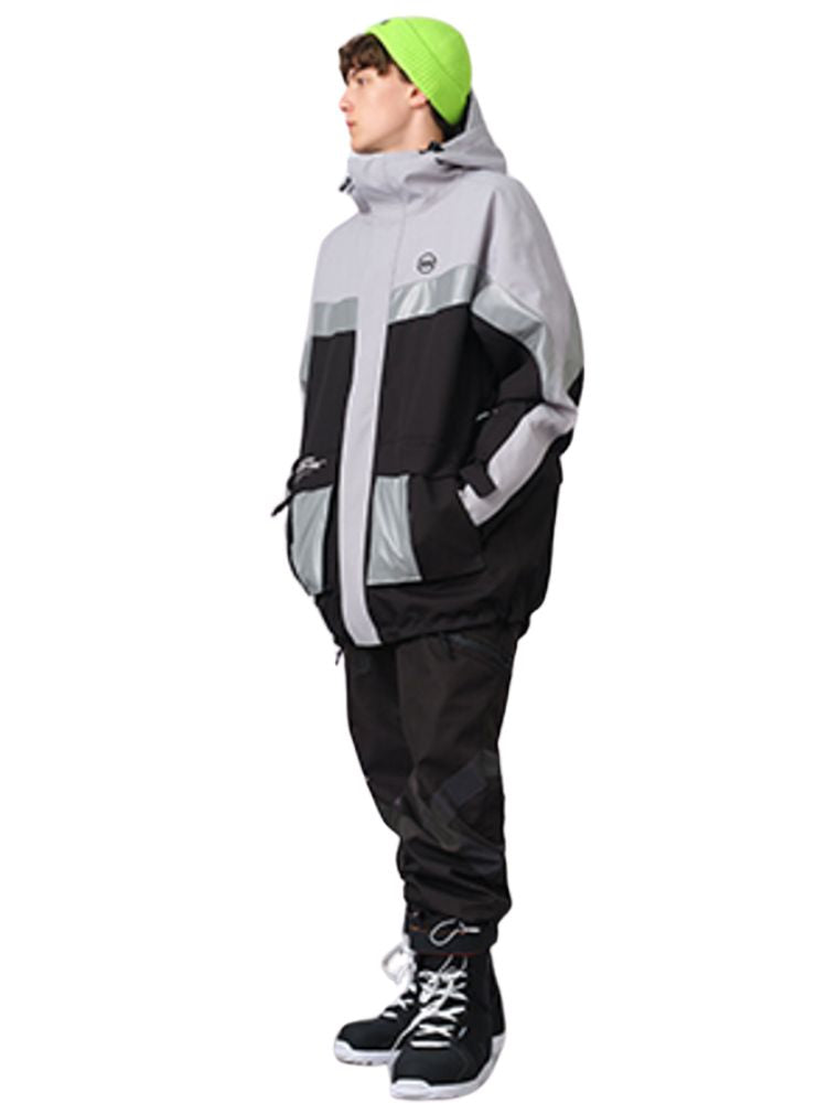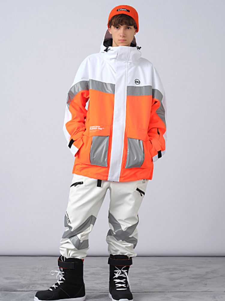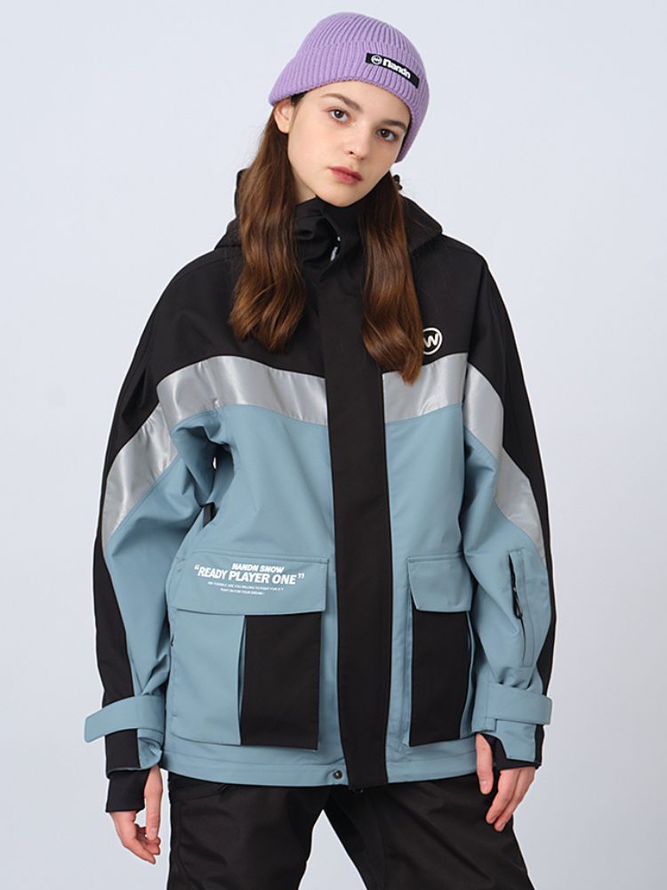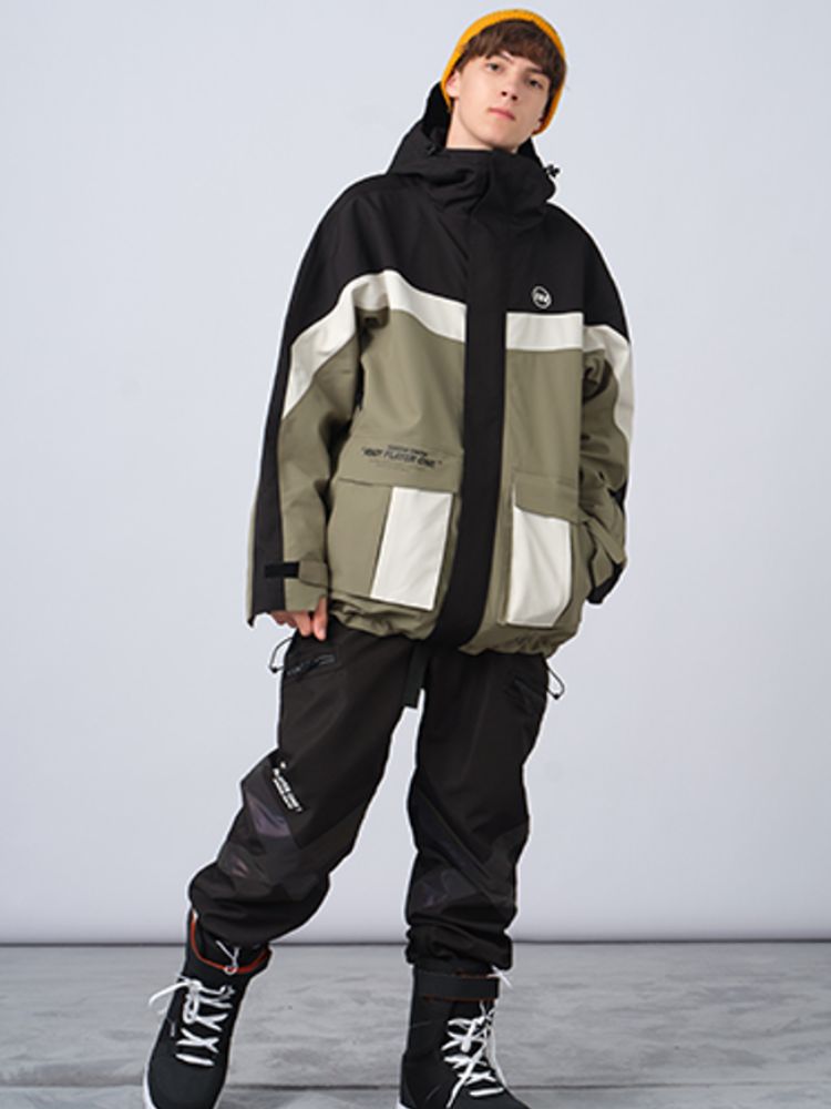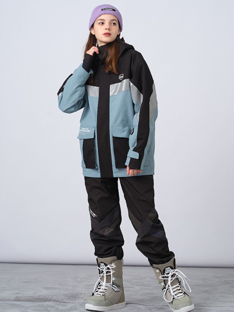 XwXwSeui Men Women Insulated Colorblock Hood Snow Jacket