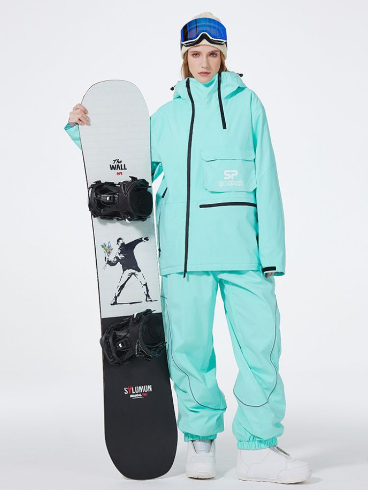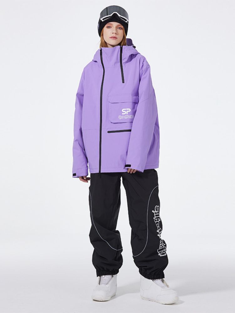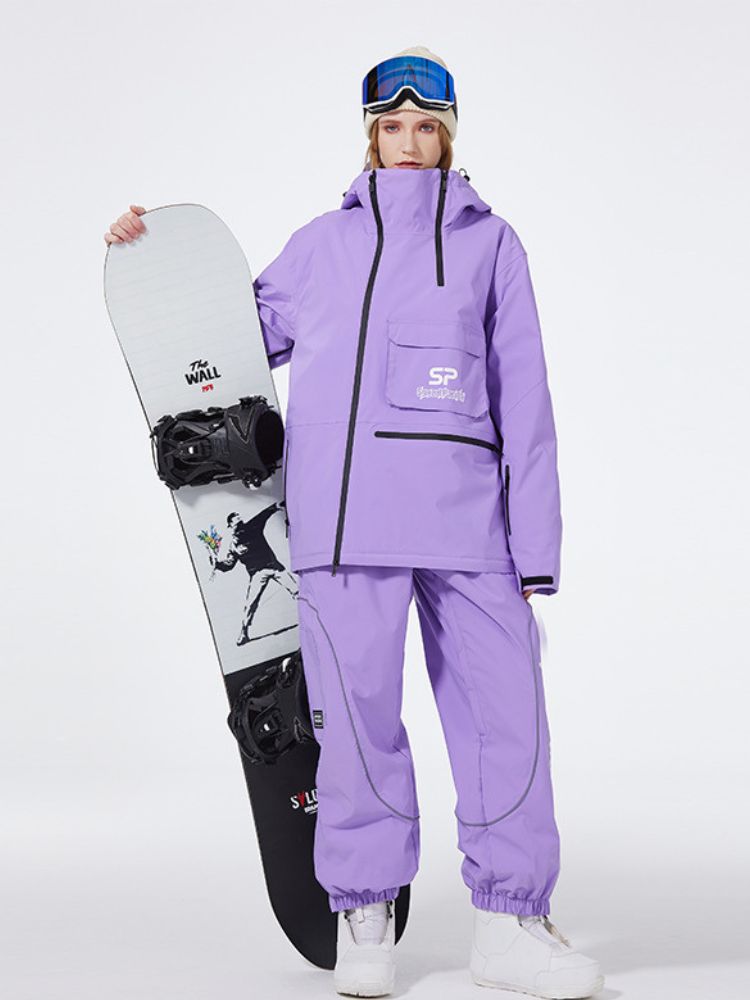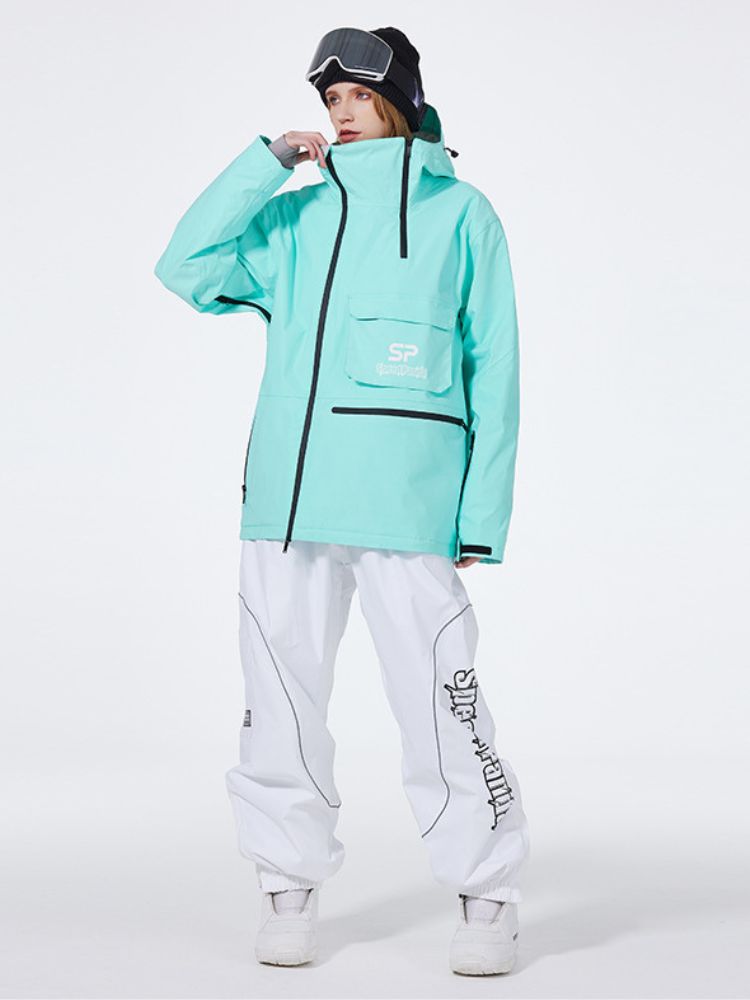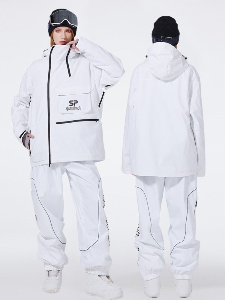 XwXwSeui Men Women Insulated Hooded Double Zipper Waterproof Chic Skiing Suits
