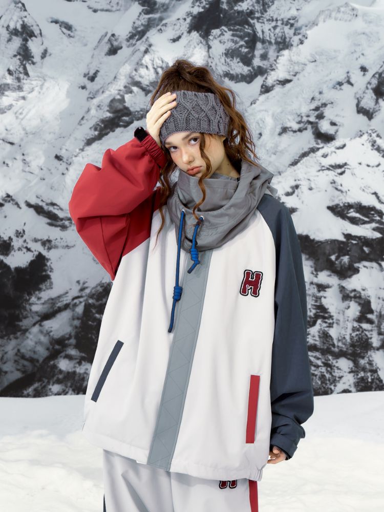 XwXwSeui Men Women Insulated Hooded Patchwork Waterproof Snowboarding Jackets