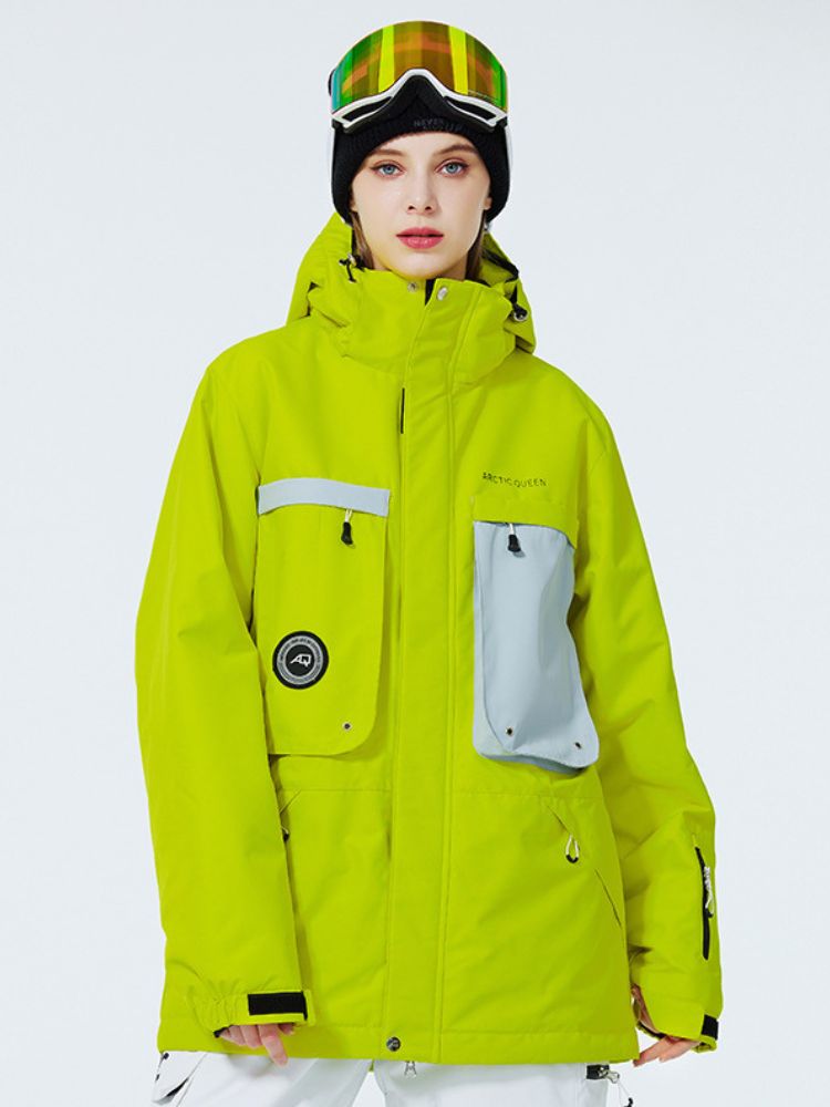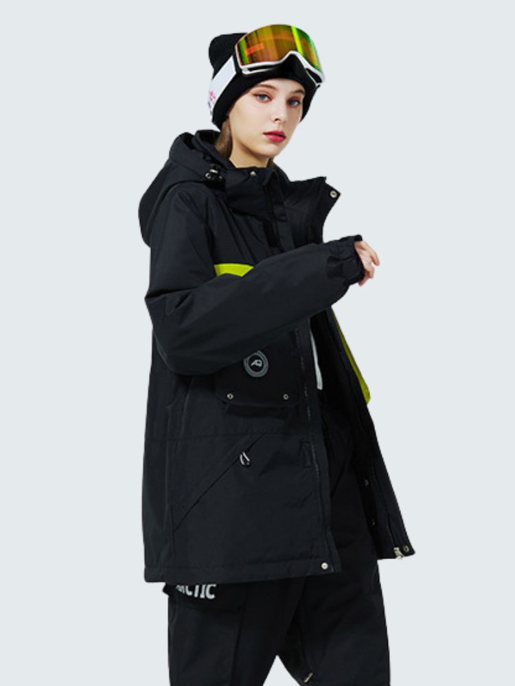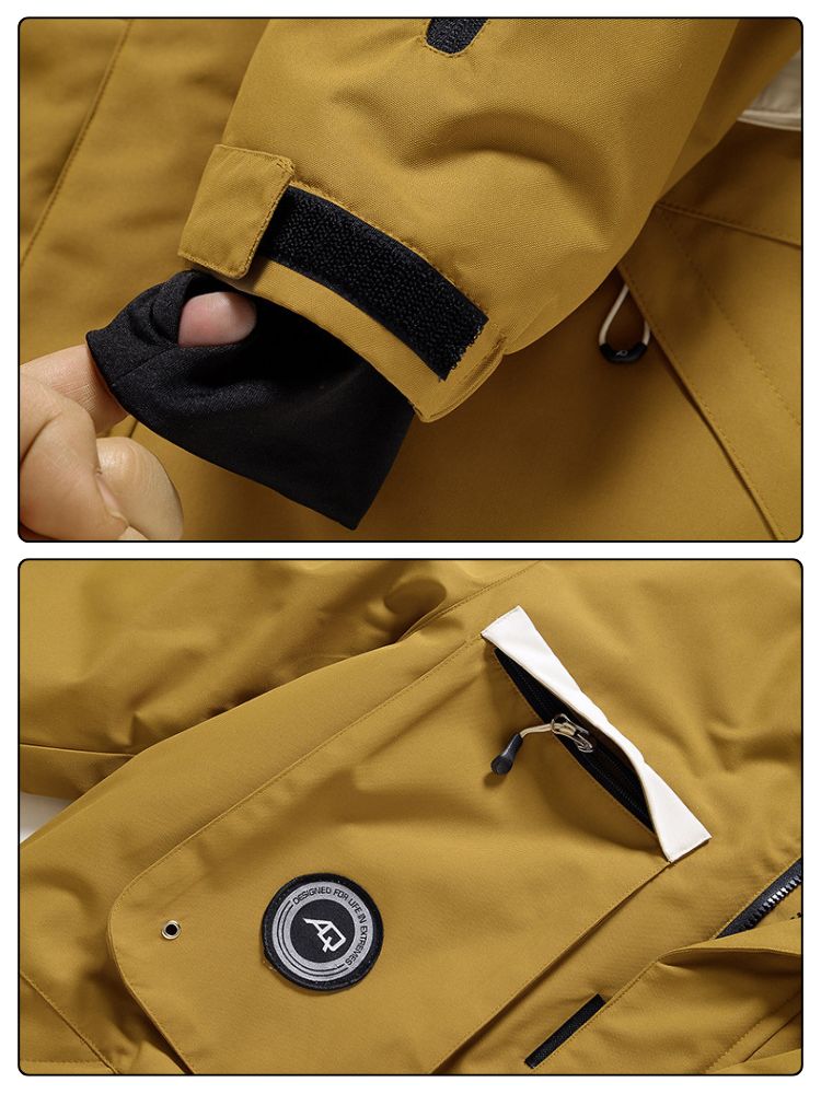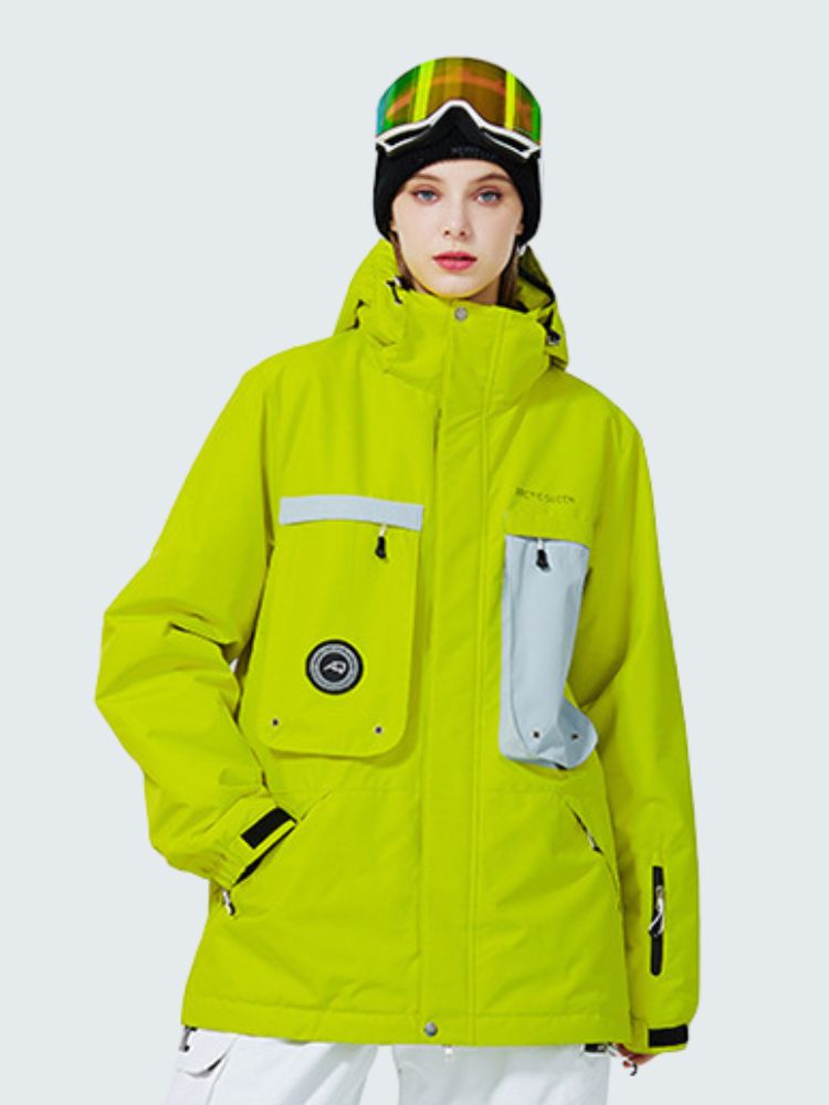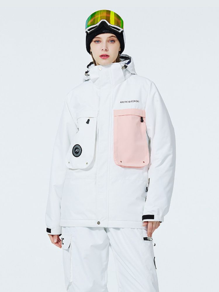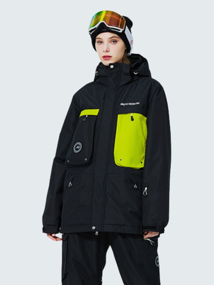- 2 Front Pockets, Sleeve Pockets, 2 Chest Pockets, Interior Mesh Goggle Pocket, Interior Zipper Pocket