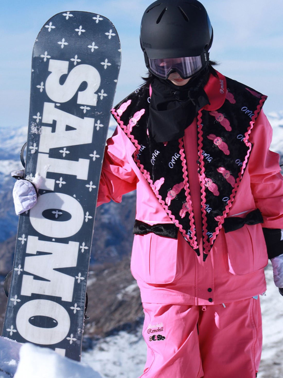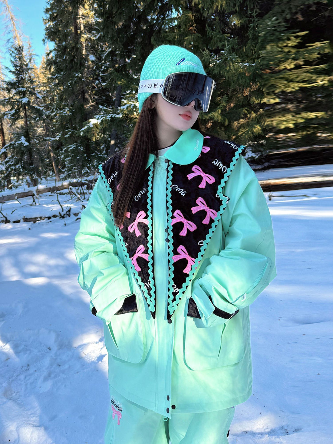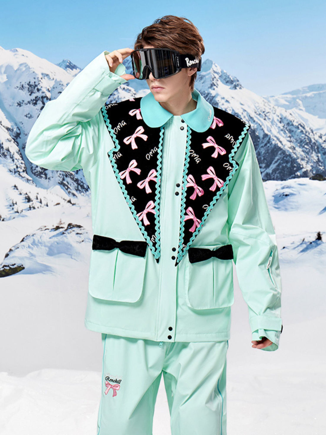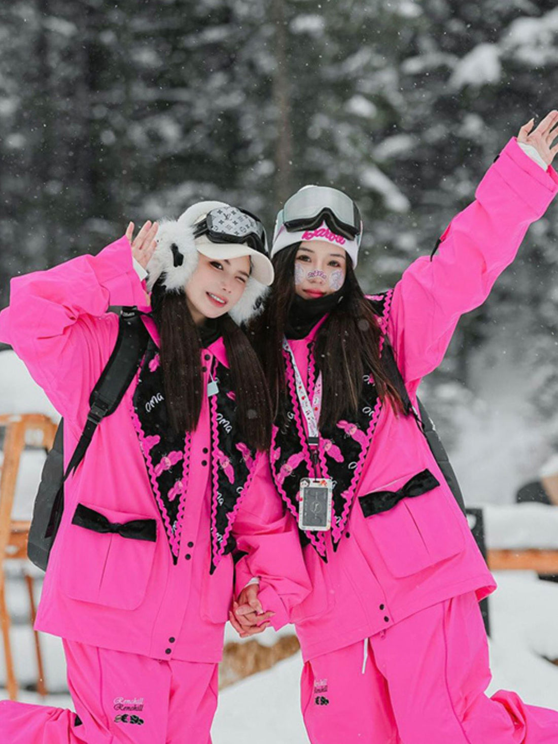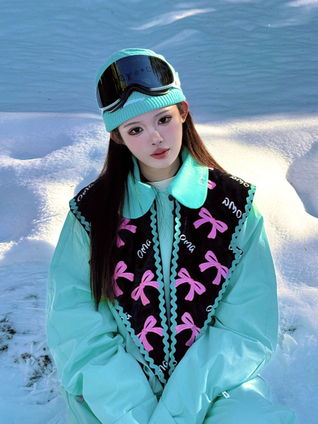 XwXwSeui Men Women Insulated Loose Embroidered Waterproof Bow Snowboarding Jackets