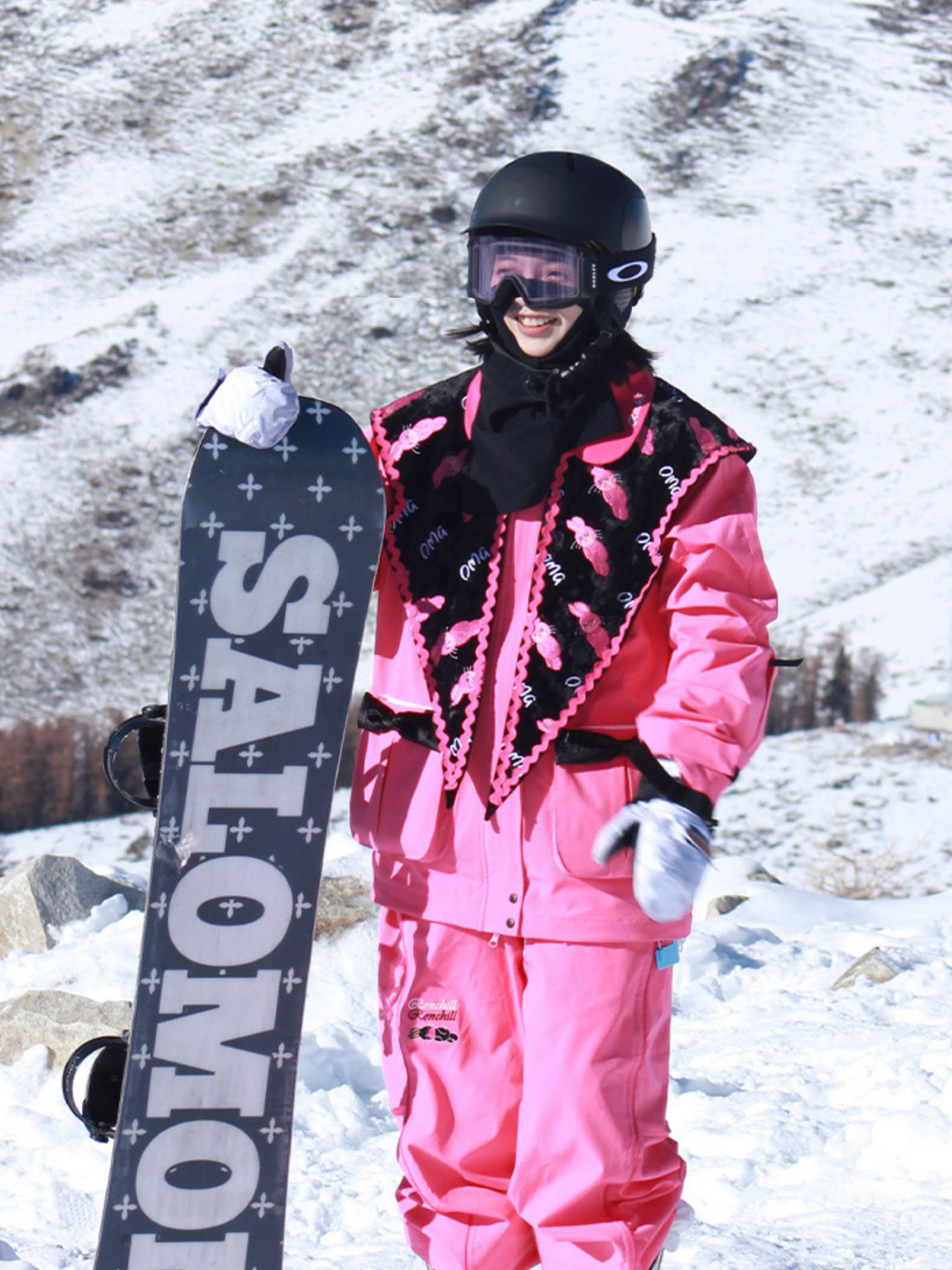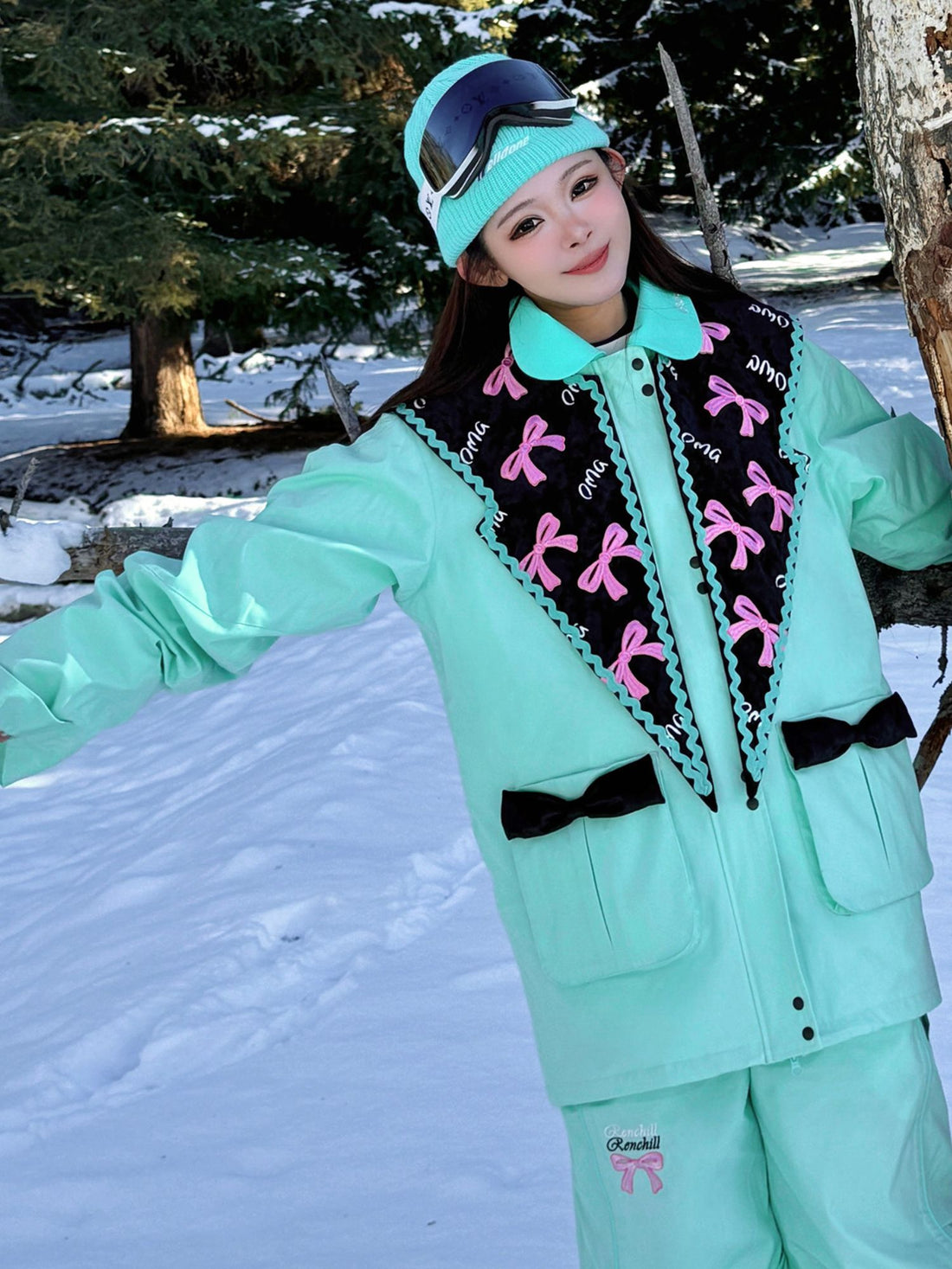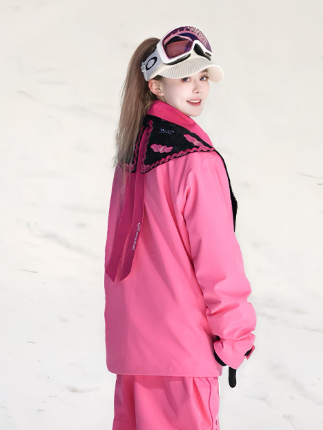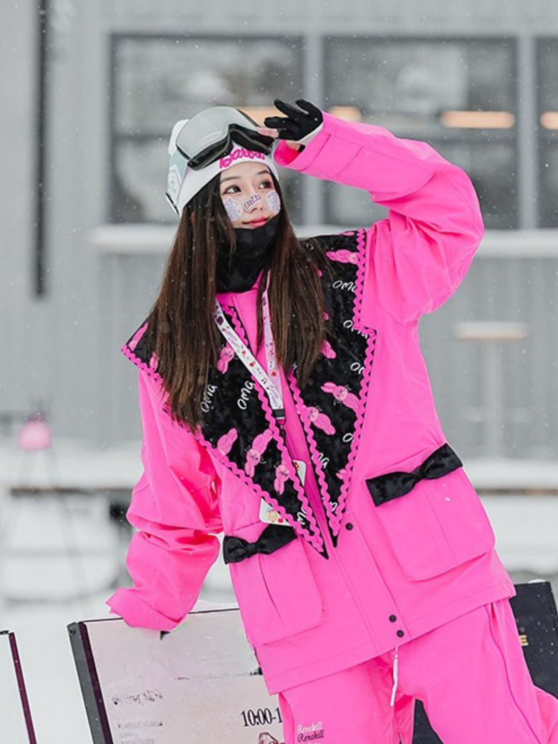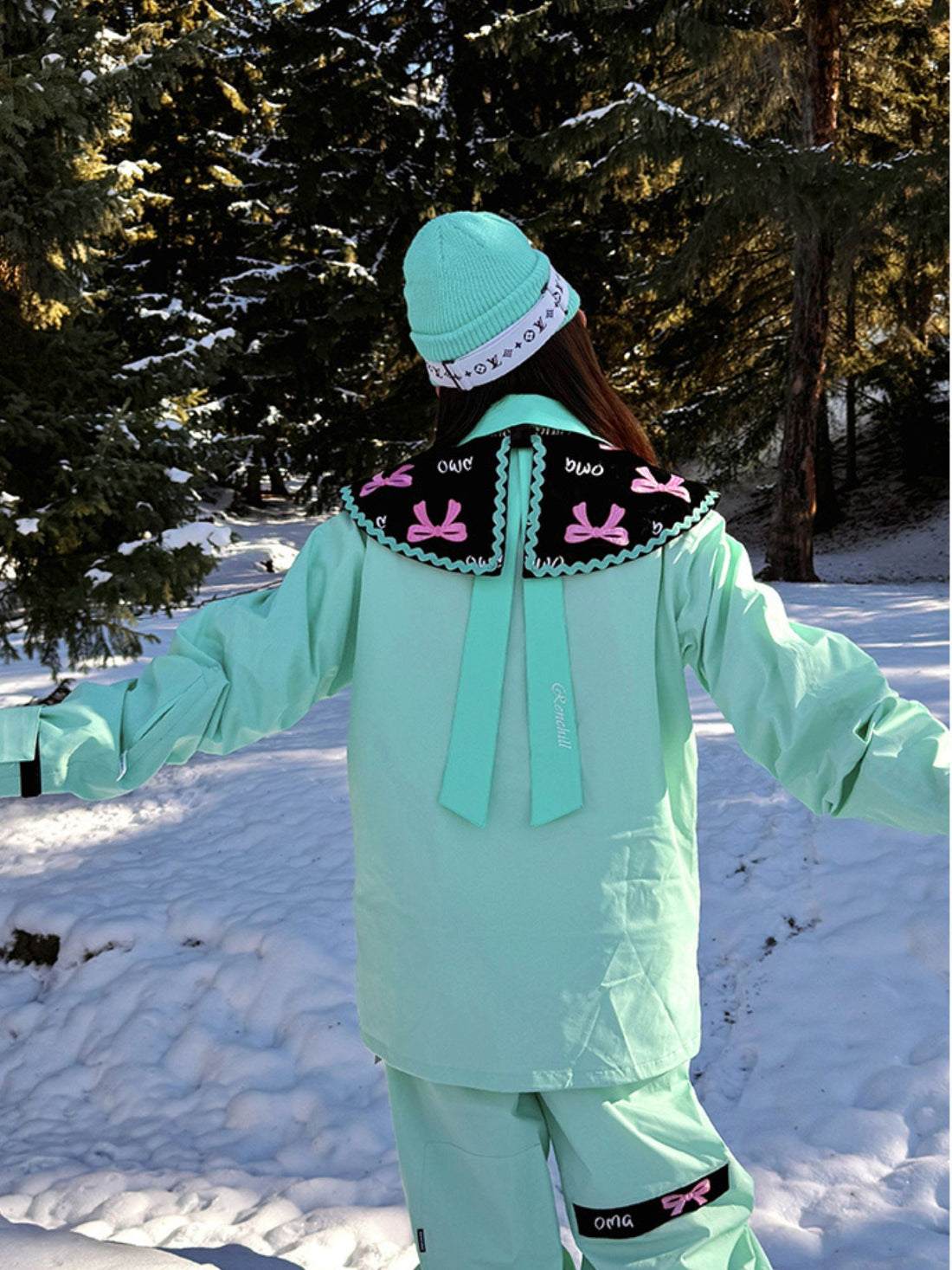 XwXwSeui Men Women Insulated Loose Embroidered Waterproof Bow Snowboarding Jackets