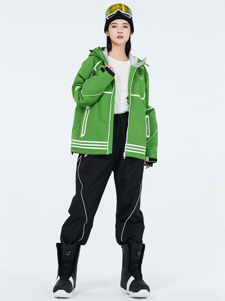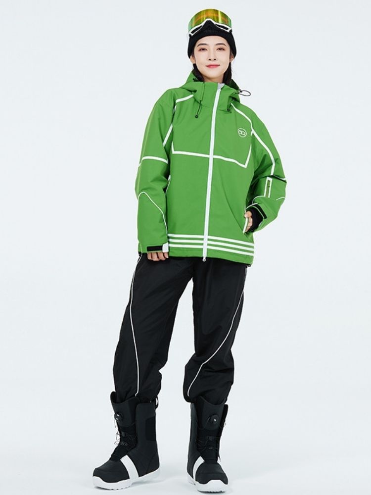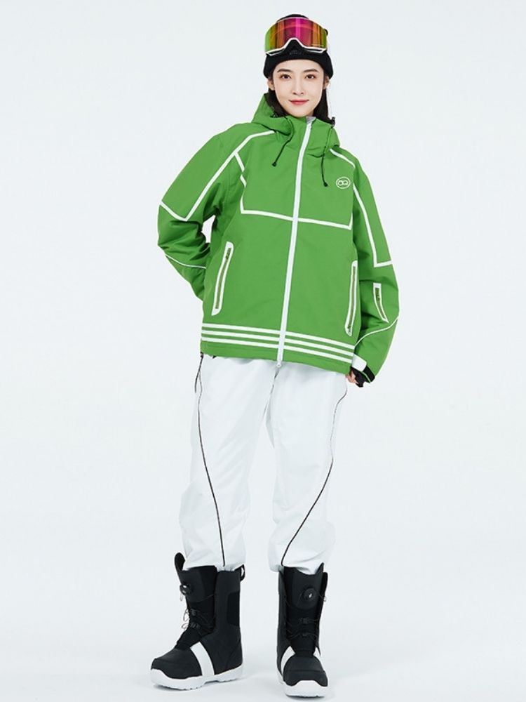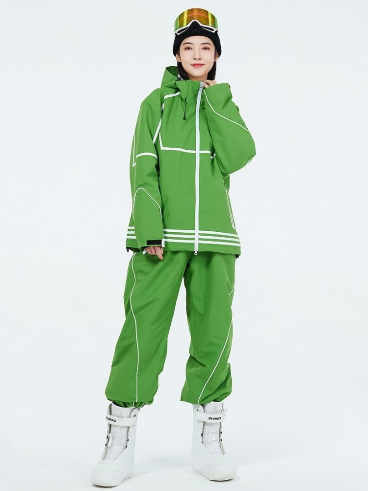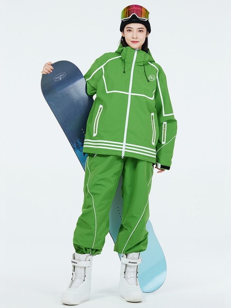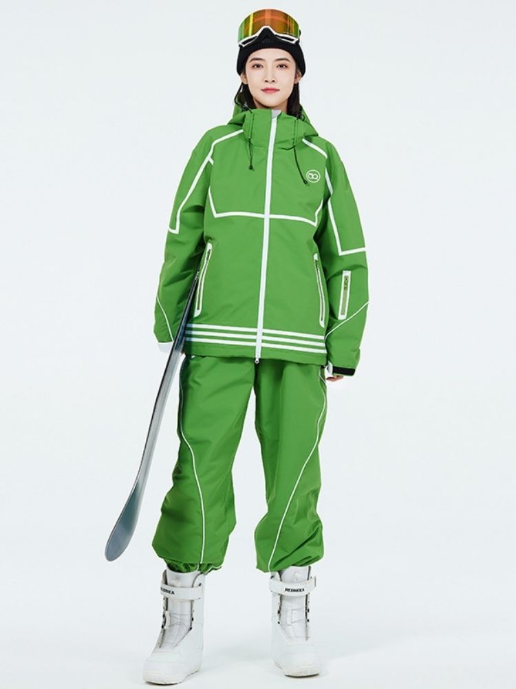 XwXwSeui Men Women Lines Outdoor Snow Suits-Green Series