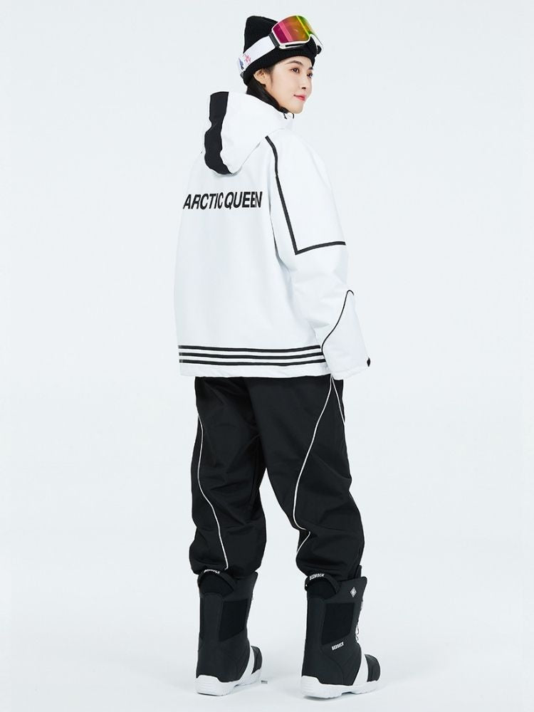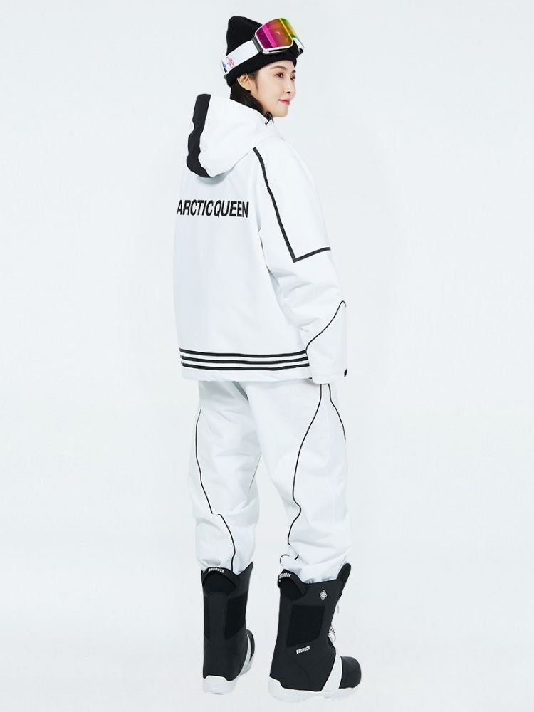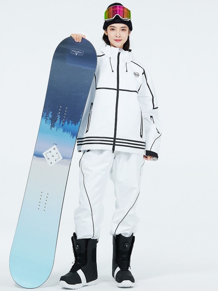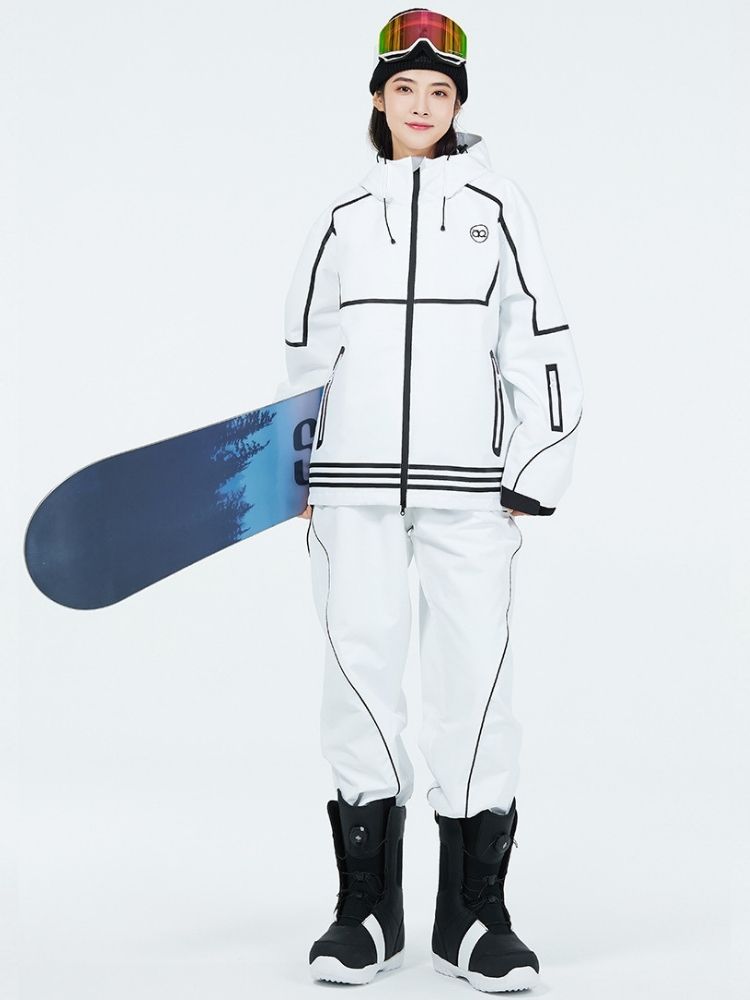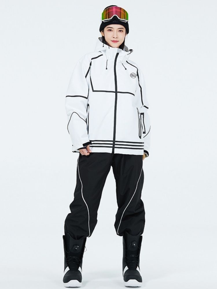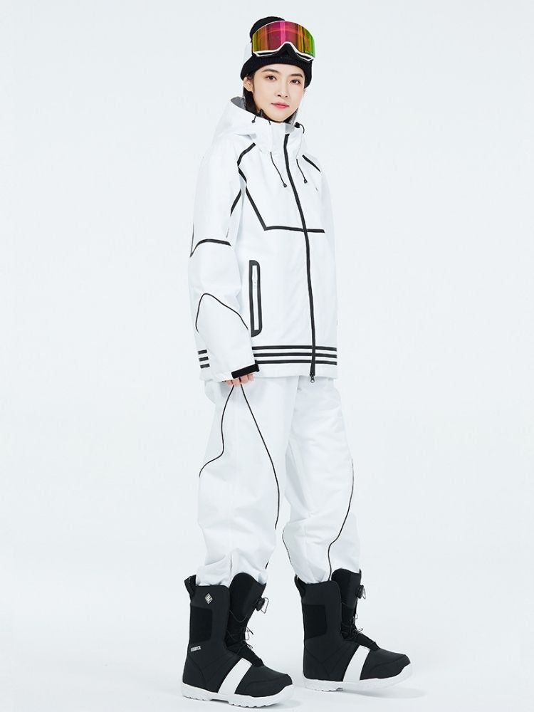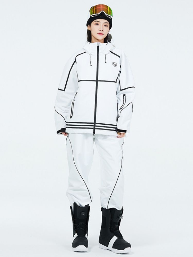 XwXwSeui Men Women Lines Outdoor Snow Suits-White Series